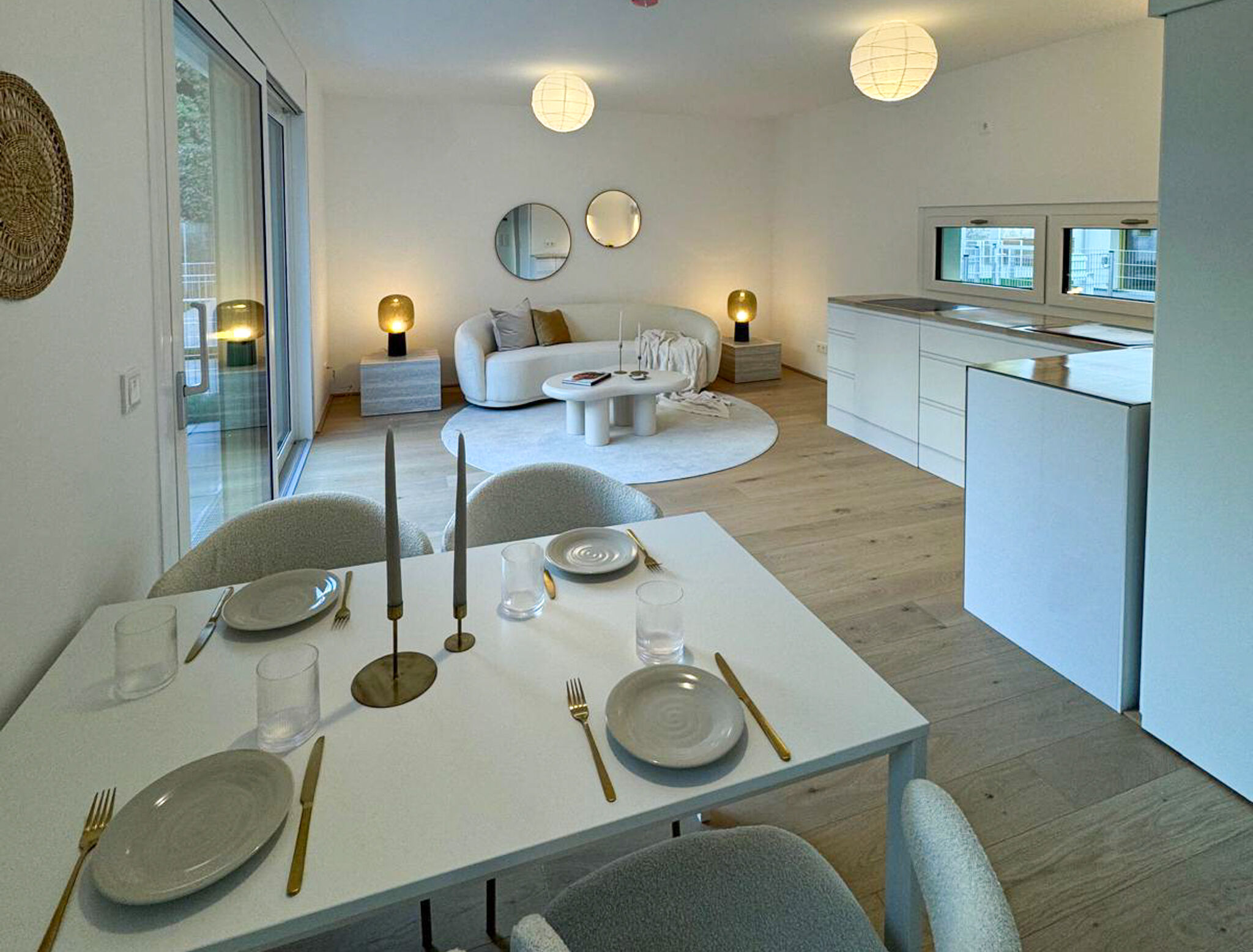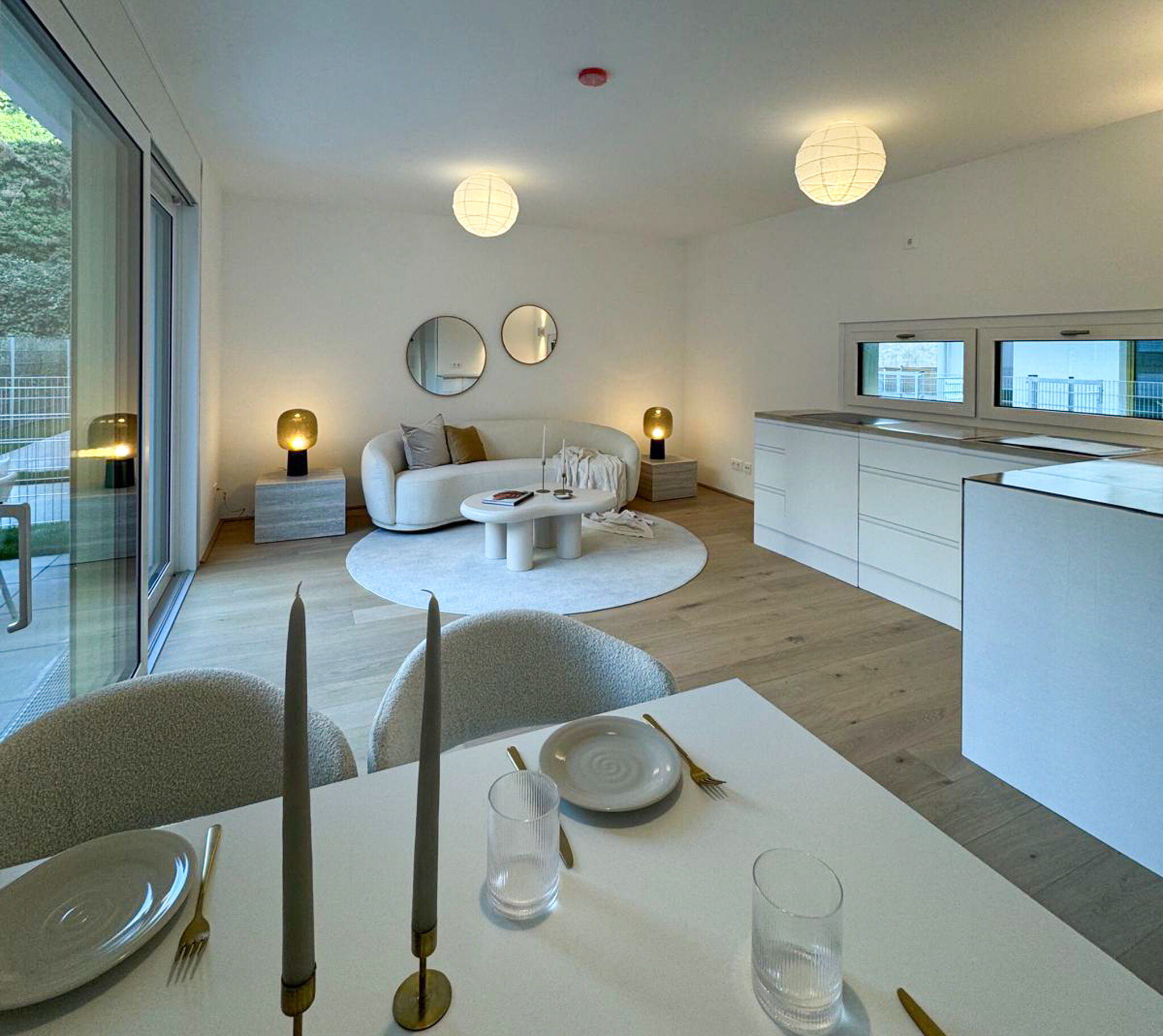 Ihrem Wohlbefinden und Komfort wird in Ihrem neuen Zuhause oberste Priorität eingeräumt. Große Fensterfronten lassen das Licht in die Wohnräume
