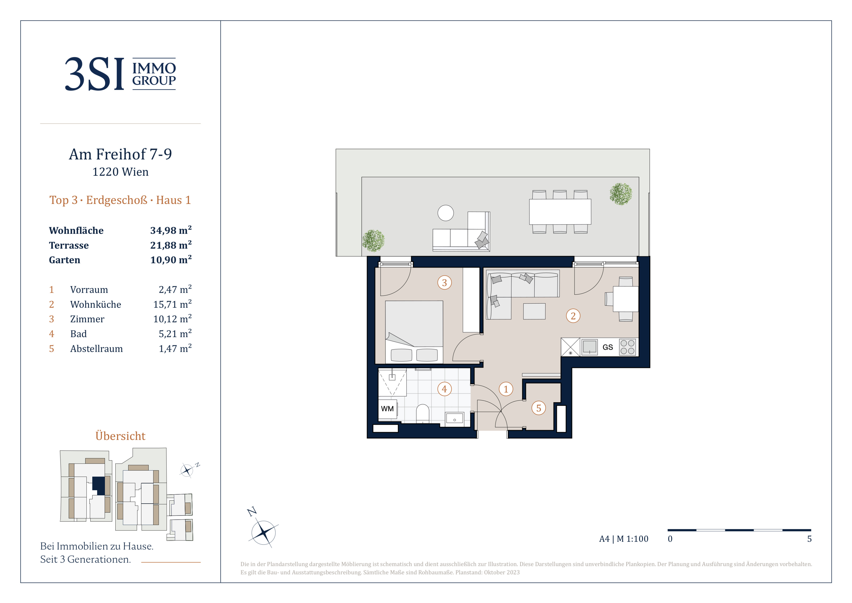 Provisionshinweis: Der guten Ordnung halber halten wir fest, dass bei einem erfolgreichen Geschäftsabschluss eine Provisionszahlung an die 3SI Makler GmbH in der zuvor ausgewiesenen Höhe zu entrichten ist. Die Höhe der Provision entspricht den Bestimmungen der geltenden Verordnung des Bundesministers für wirtschaftliche Angelegenheiten über Standes- und Ausübungsregeln für Immobilienmakler. Diese Provisionspflicht besteht auch dann, wenn Sie die Ihnen überlassenen Informationen an Dritte weitergeben. Letztlich weisen wir darauf hin, dass wir als Doppelmakler tätig sind und ein familiäres/wirtschaftliches Naheverhältnis zwischen der 3SI Makler GmbH und der Verkäuferin besteht.