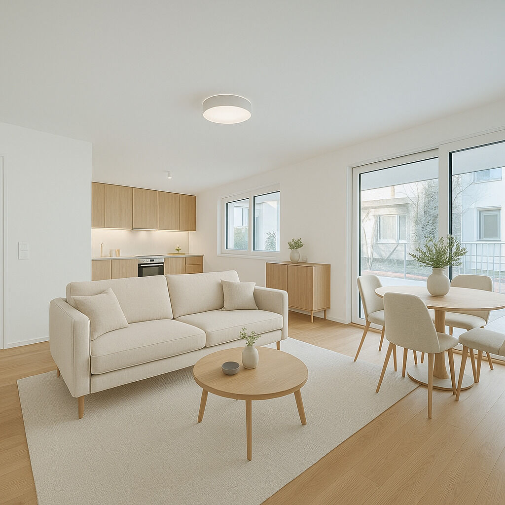 Ihrem Wohlbefinden und Komfort wird in Ihrem neuen Zuhause oberste Priorität eingeräumt. Große Fensterfronten lassen das Licht in die Wohnräume