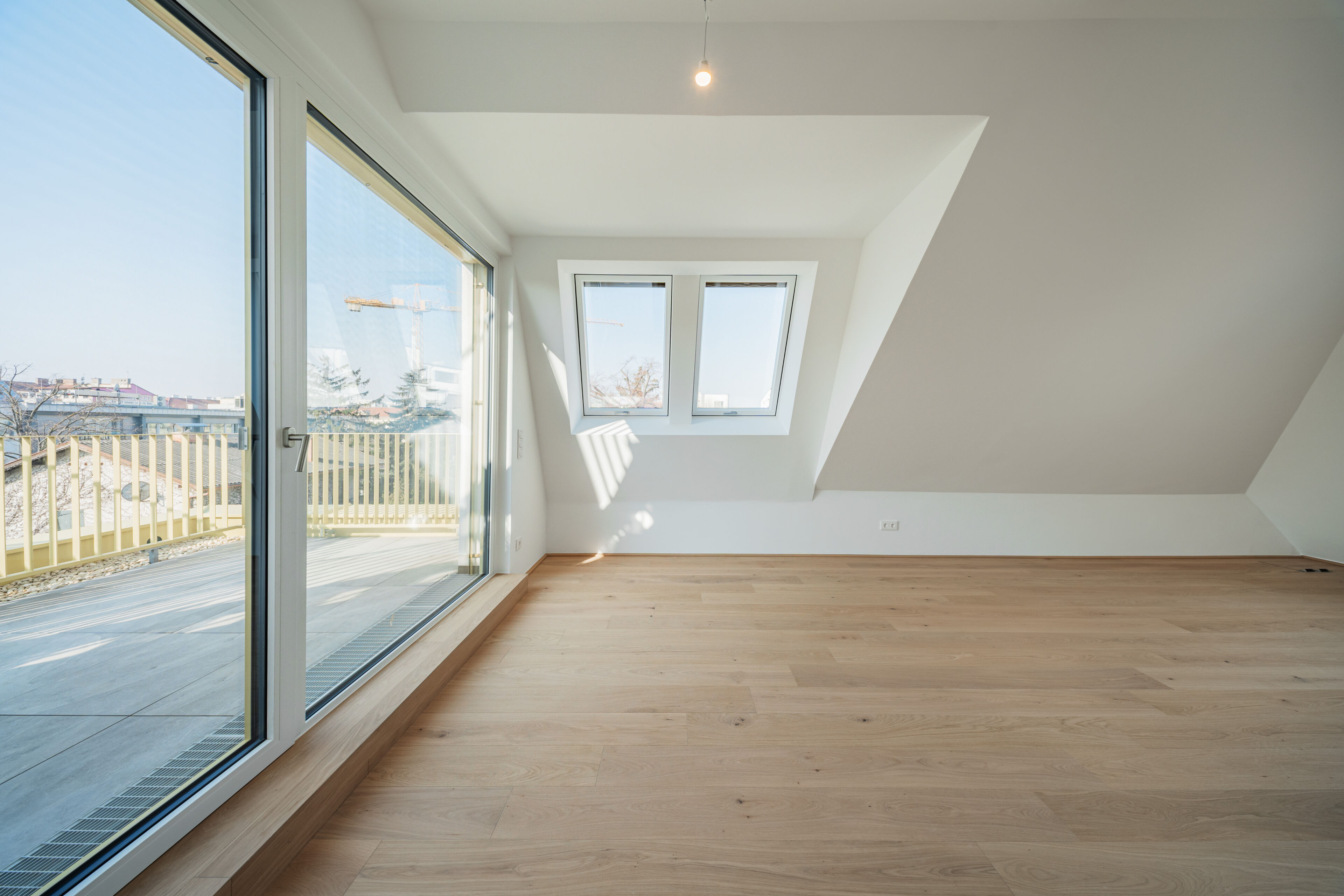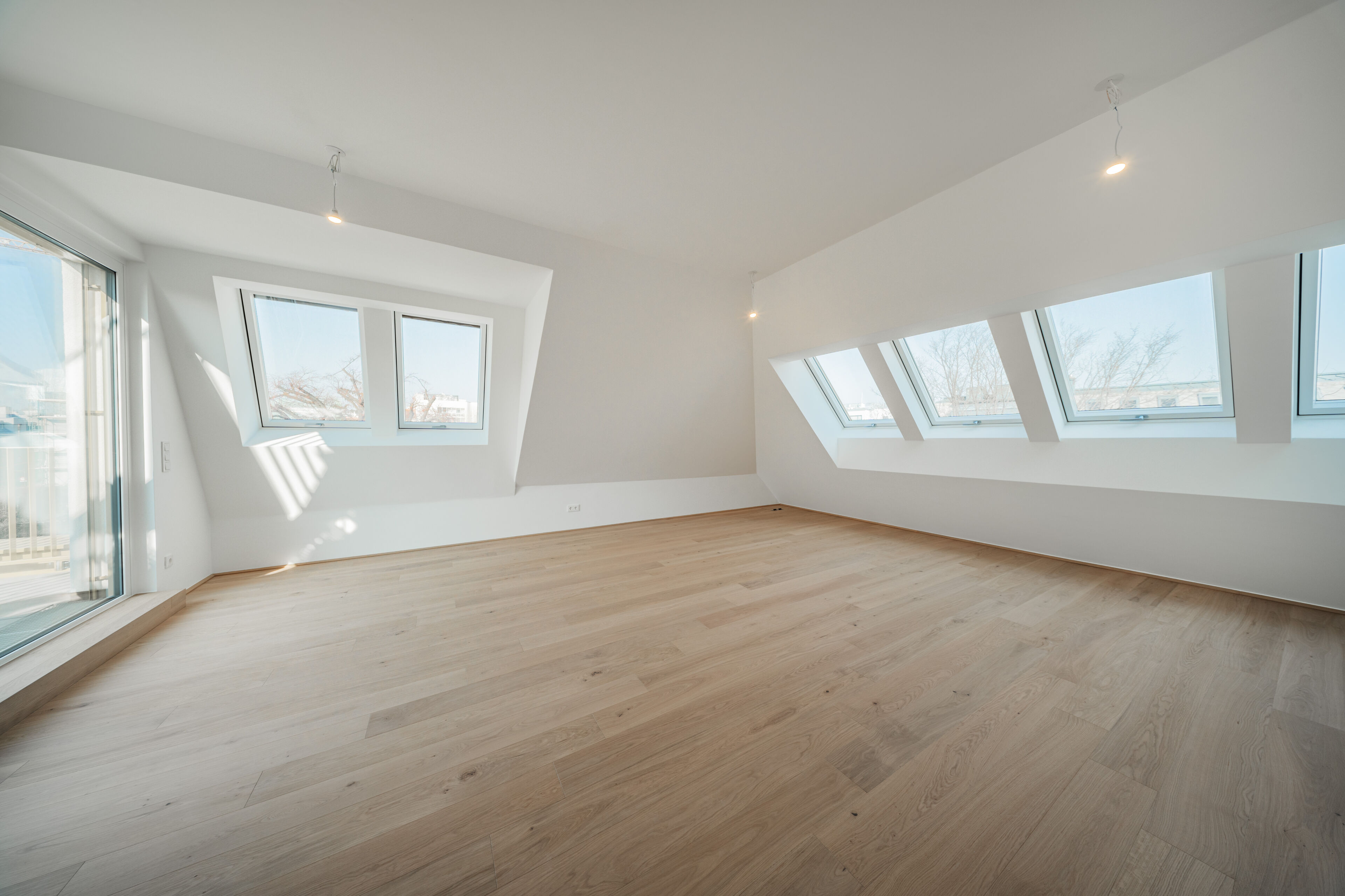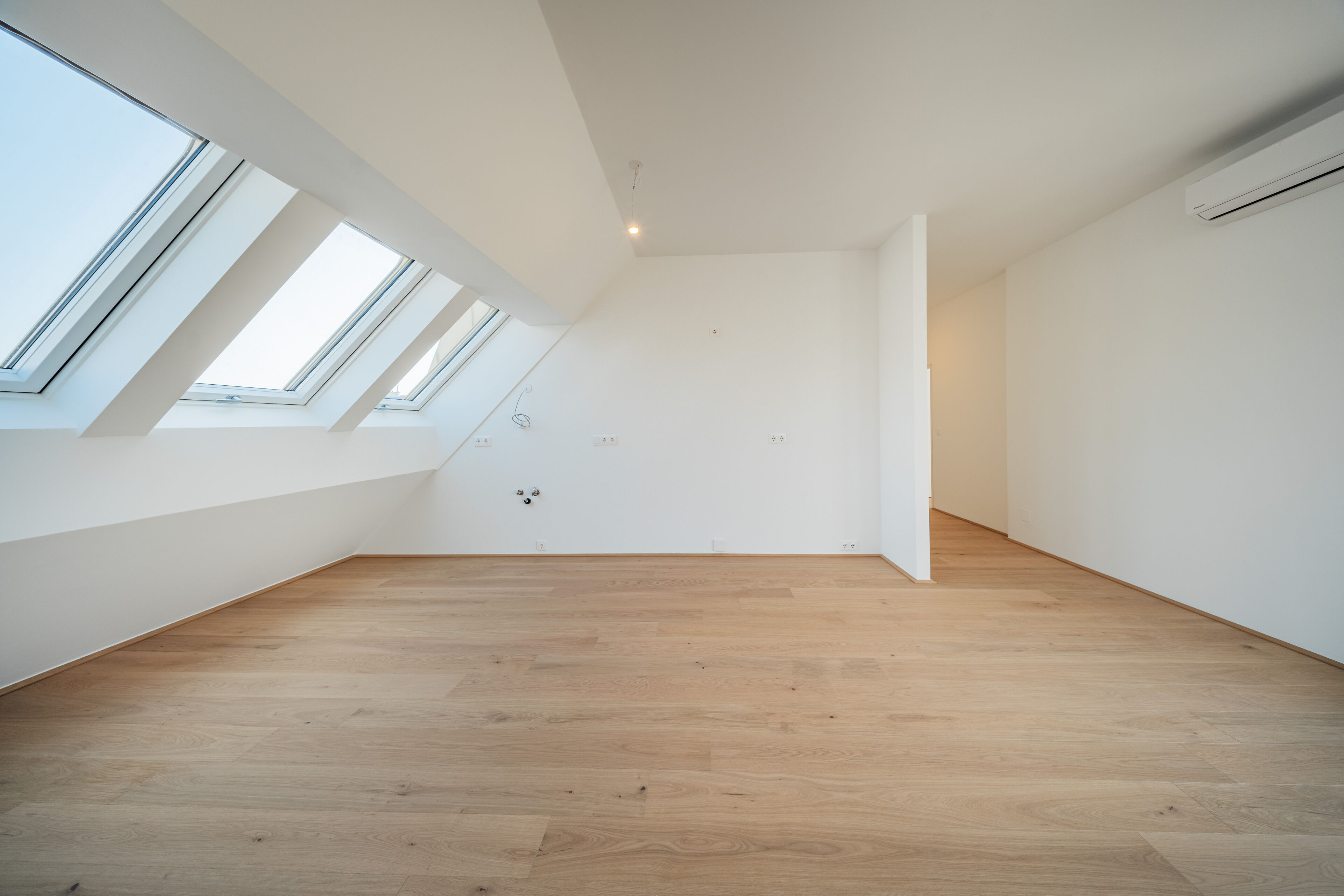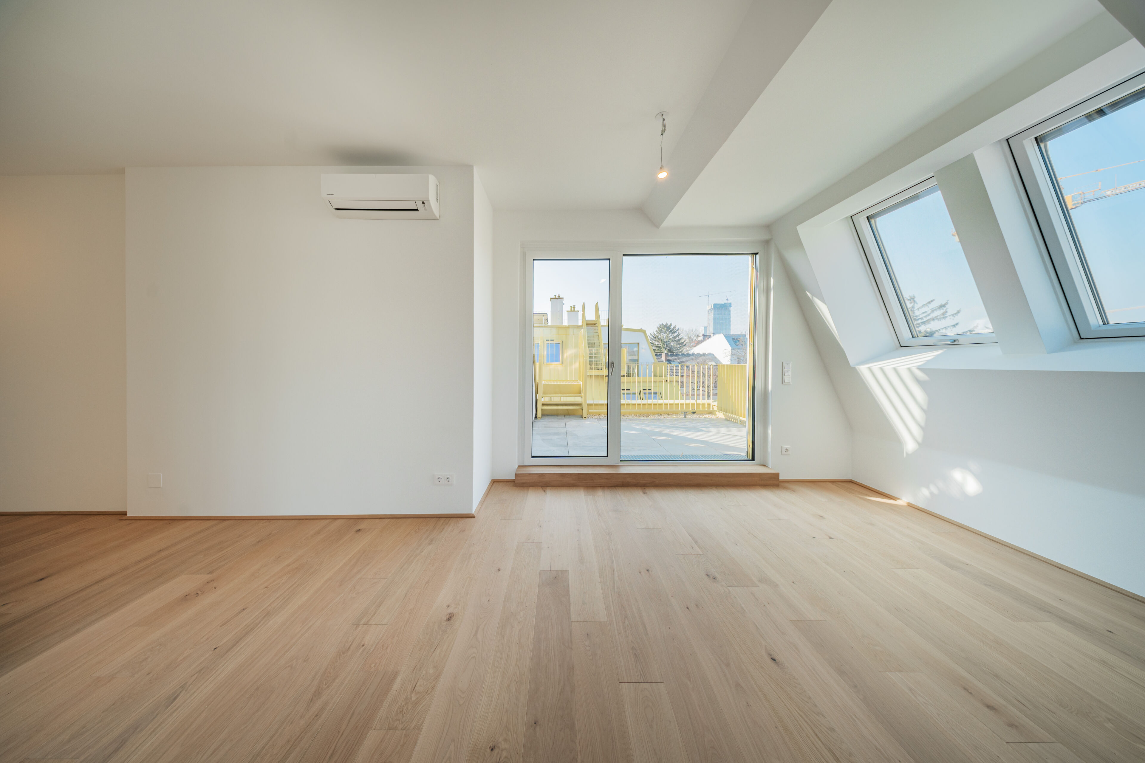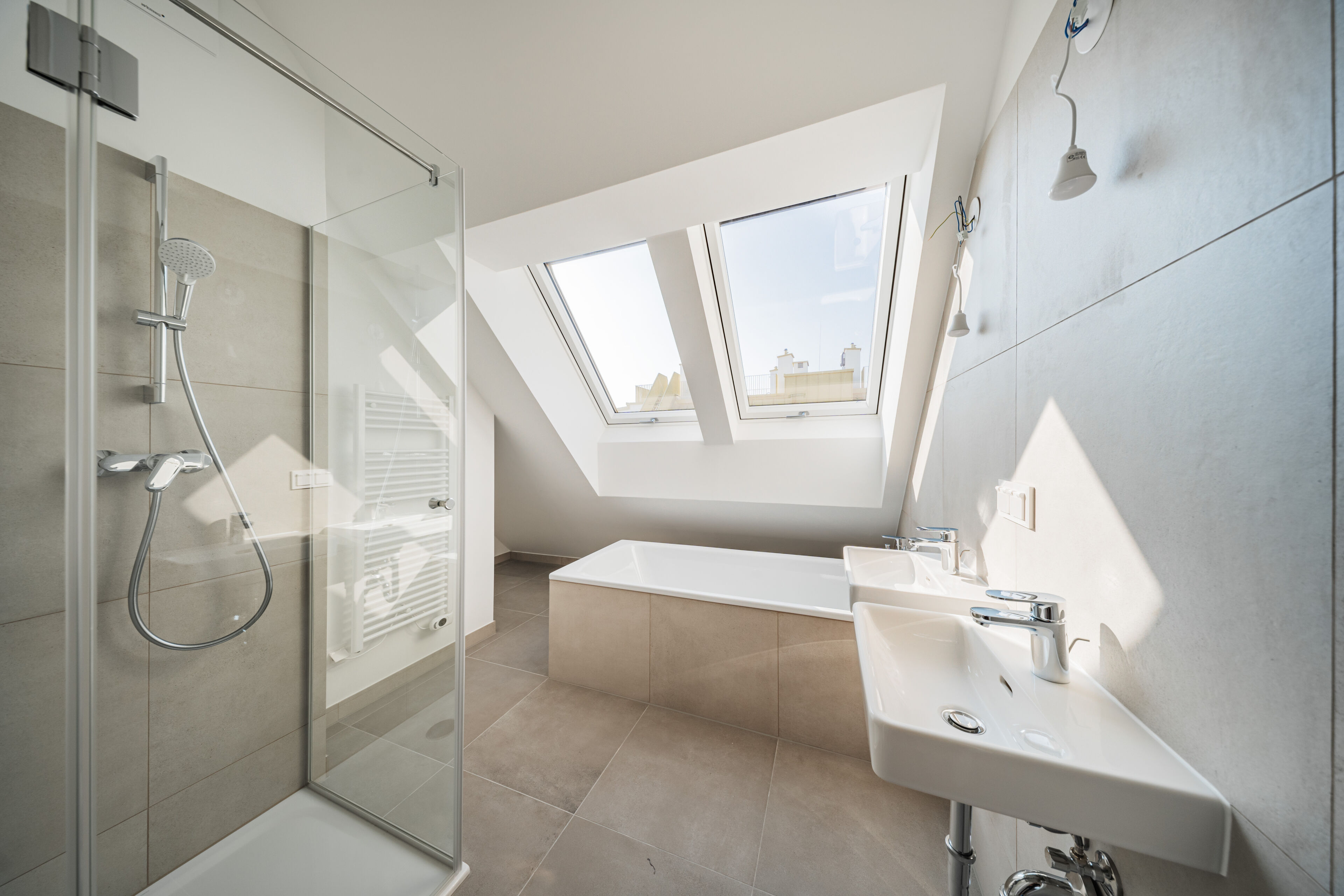 fluten, zugleich geben Ihnen steuerbare Raffstores und Rollläden die Flexibilität, die Lichtverhältnisse nach Belieben anzupassen. Dank der Fußbodenkühlung und -heizung haben Sie die Möglichkeit, die Temperatur in jedem Raum individuell zu regulieren. Für zusätzlichen Komfort sind die Dachgeschoßwohnungen mit Fan-Coils für die Raumklimatisierung ausgestattet. Die warmen Eichenparkettböden verleihen den Wohnräumen eine gemütliche Atmosphäre, während die hochwertigen Markensanitärprodukte und die exquisite Ausstattung der Badezimmer zu einem erhöhten Wohlbefinden beitragen. Erleben Sie mit „The Liberty“ die Freude des Wohnens auf einem neuen Level!