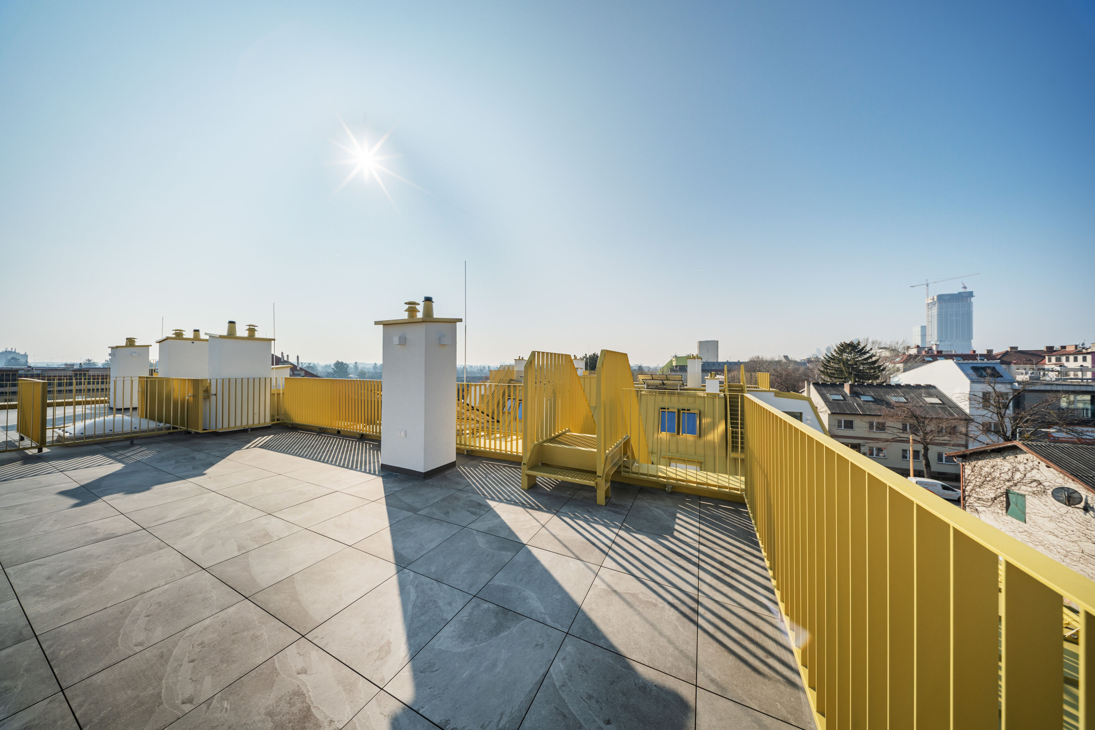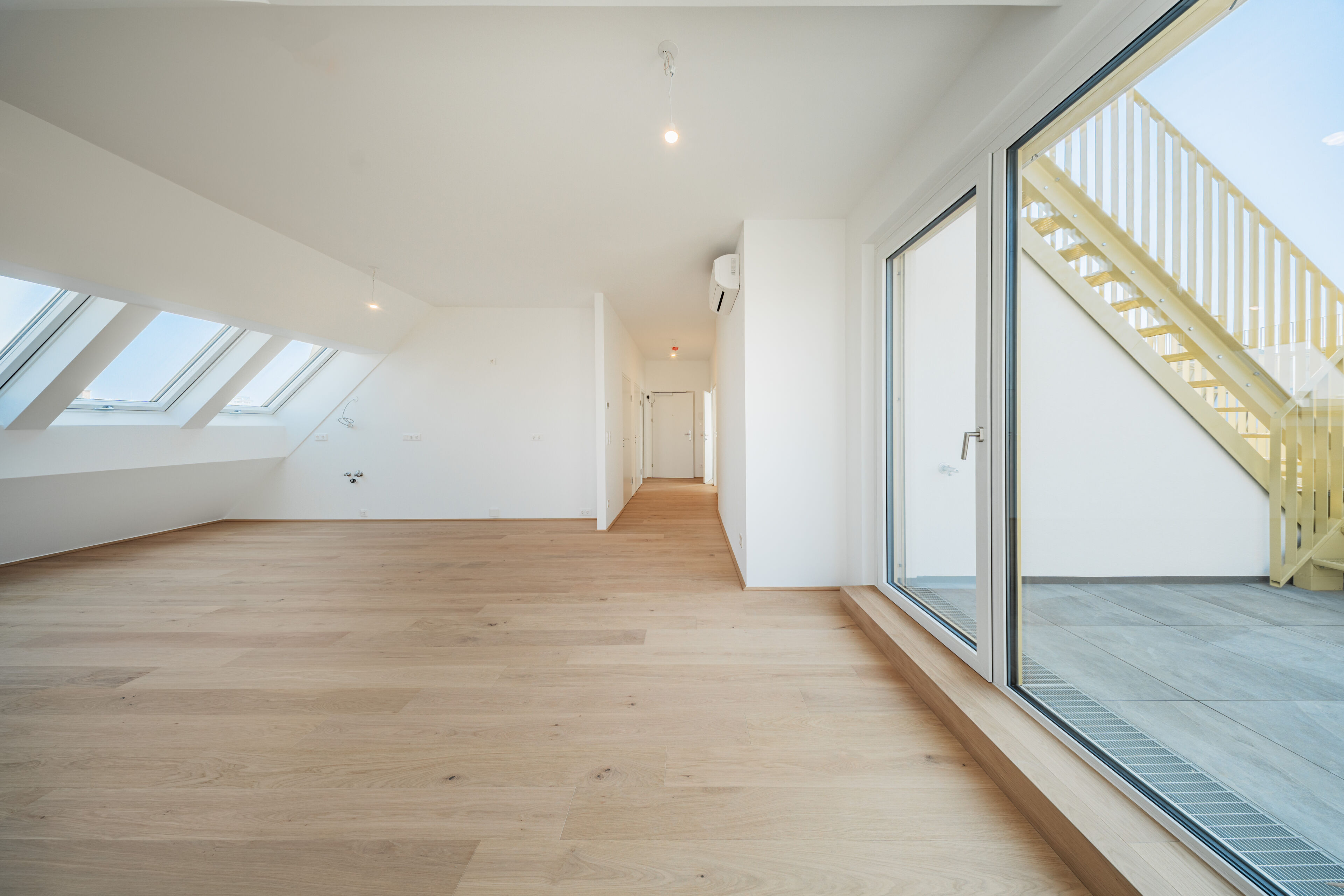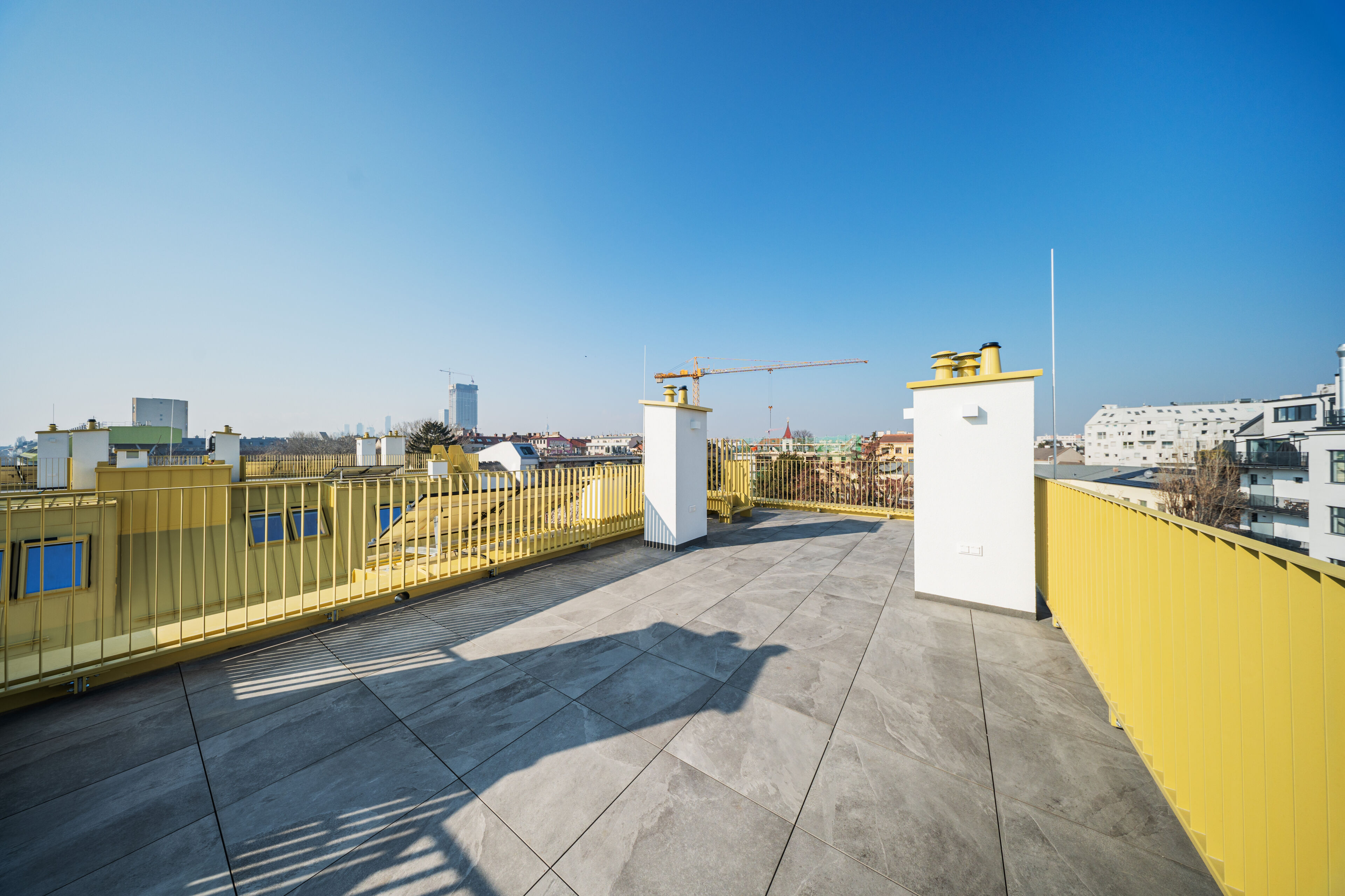 Dieses besondere 3-Zimmer Penthouse bietet nicht nur ausreichend Platz, sondern auch ein modernes Wohngefühl, das höchsten Komfort verspricht. Das Highlight dieser Wohnung ist zweifellos die sonnendurchflutete Wohnküche, die dank der großzügigen Fensterflächen einen wunderschönen Blick ins Grüne ermöglicht. Hier können Sie den Tag entspannt beginnen und die Abende bei einem gemütlichen Essen ausklingen lassen. Die angrenzende Terrasse verbindet nahtlos den Innen- und Außenbereich und lädt zum Entspannen und Sonnenbaden ein. Doch damit nicht genug - über die Terrasse erreichen Sie die darüberliegende Dachterrasse, die Ihnen einen fantastischen Panoramablick bietet. Die beiden Schlafzimmer sind optimal ausgerichtet - eines nach Norden und das andere nach Süden, um Ihnen ein angenehmes Schlafklima zu bieten. Die moderne Ausstattung der Wohnung umfasst zudem eine Fußbodenheizung als auch eine Klimaanlage. Willkommen in Ihrem neuen Zuhause, wo Luxus und Komfort Hand in Hand gehen und Ihnen ein traumhaftes Wohnambiente bieten.