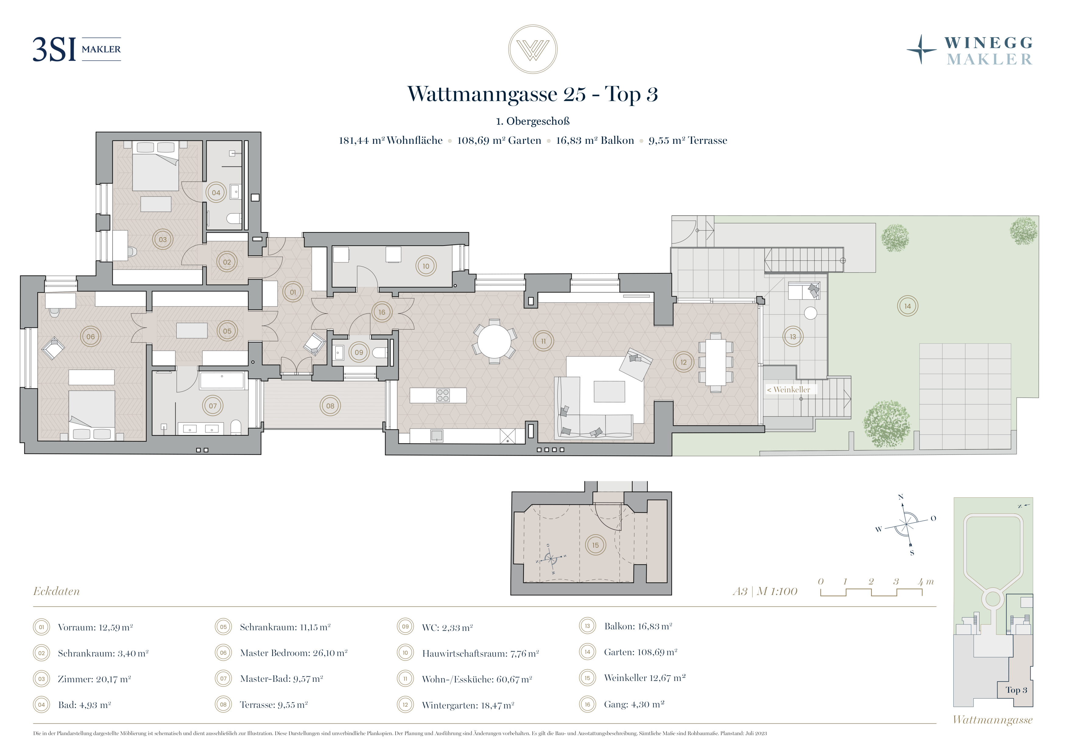 Provisionshinweis: Der guten Ordnung halber halten wir fest, dass bei einem erfolgreichen Geschäftsabschluss eine Provisionszahlung an die 3SI Makler GmbH in der zuvor ausgewiesenen Höhe zu entrichten ist. Die Höhe der Provision entspricht den Bestimmungen der geltenden Verordnung des Bundesministers für wirtschaftliche Angelegenheiten über Standes- und Ausübungsregeln für Immobilienmakler. Diese Provisionspflicht besteht auch dann, wenn Sie die Ihnen überlassenen Informationen an Dritte weitergeben. Letztlich weisen wir darauf hin, dass wir als Doppelmakler tätig sind und ein familiäres/wirtschaftliches Naheverhältnis zwischen der 3SI Makler GmbH und der Verkäuferin besteht.