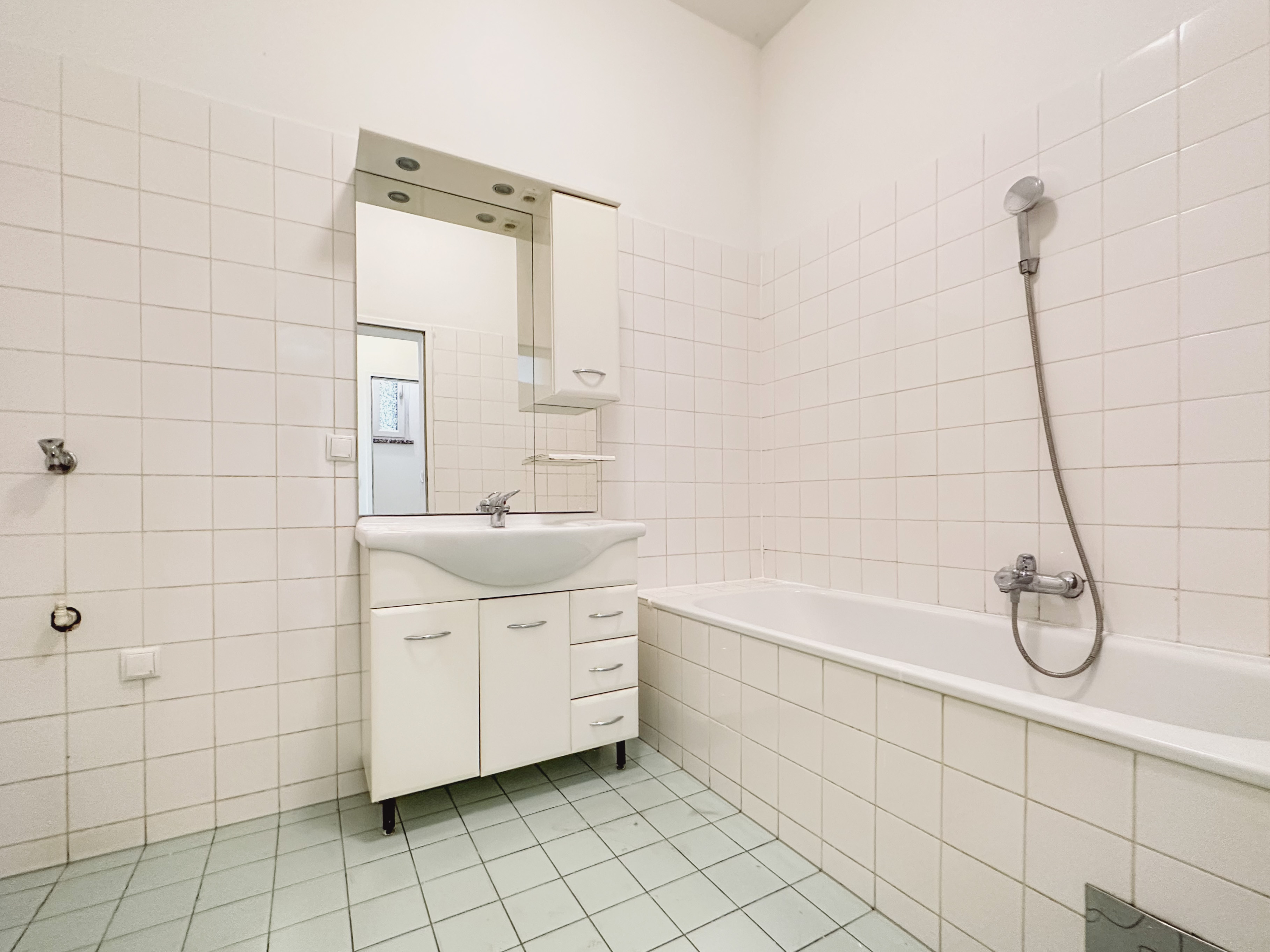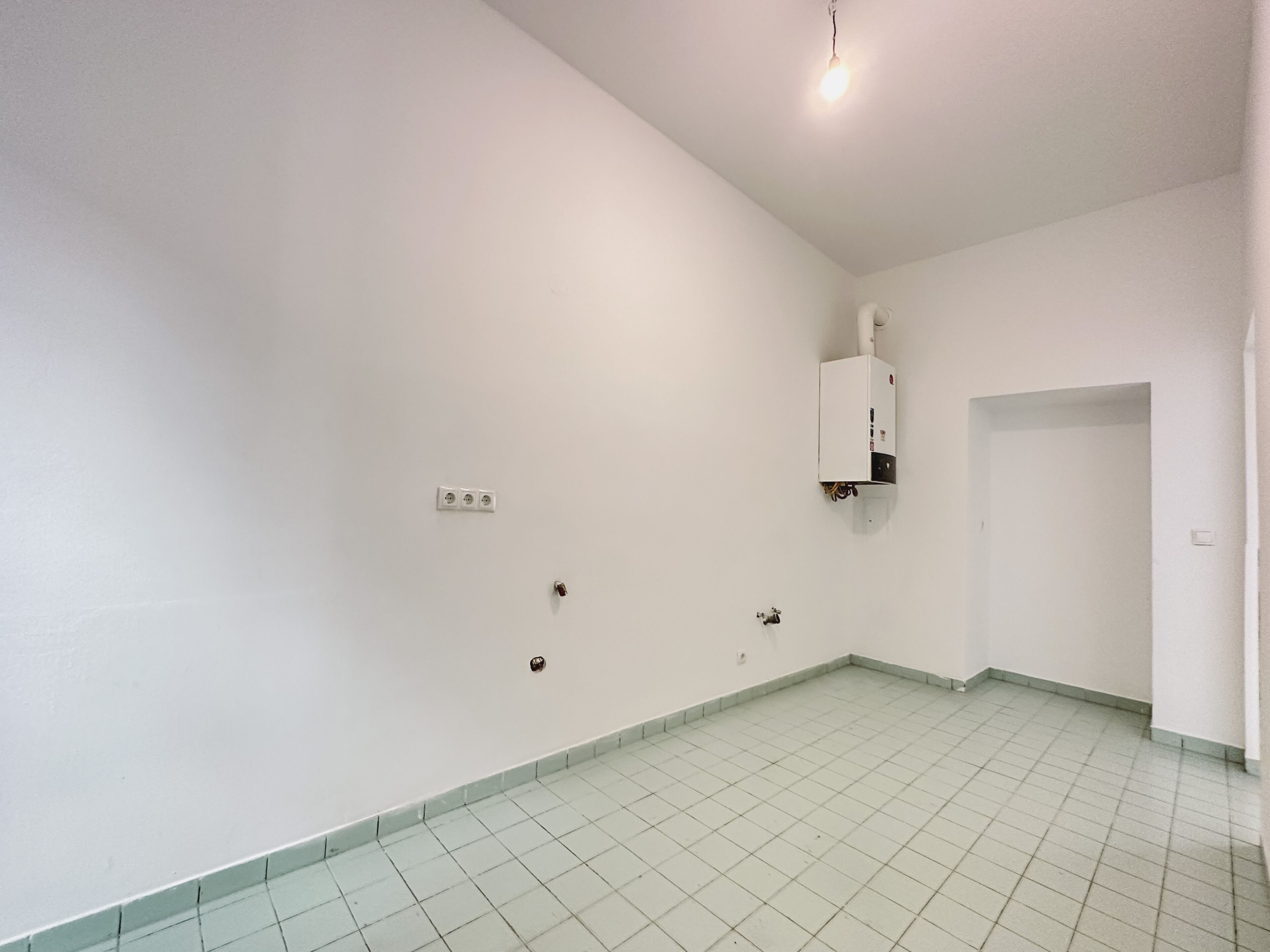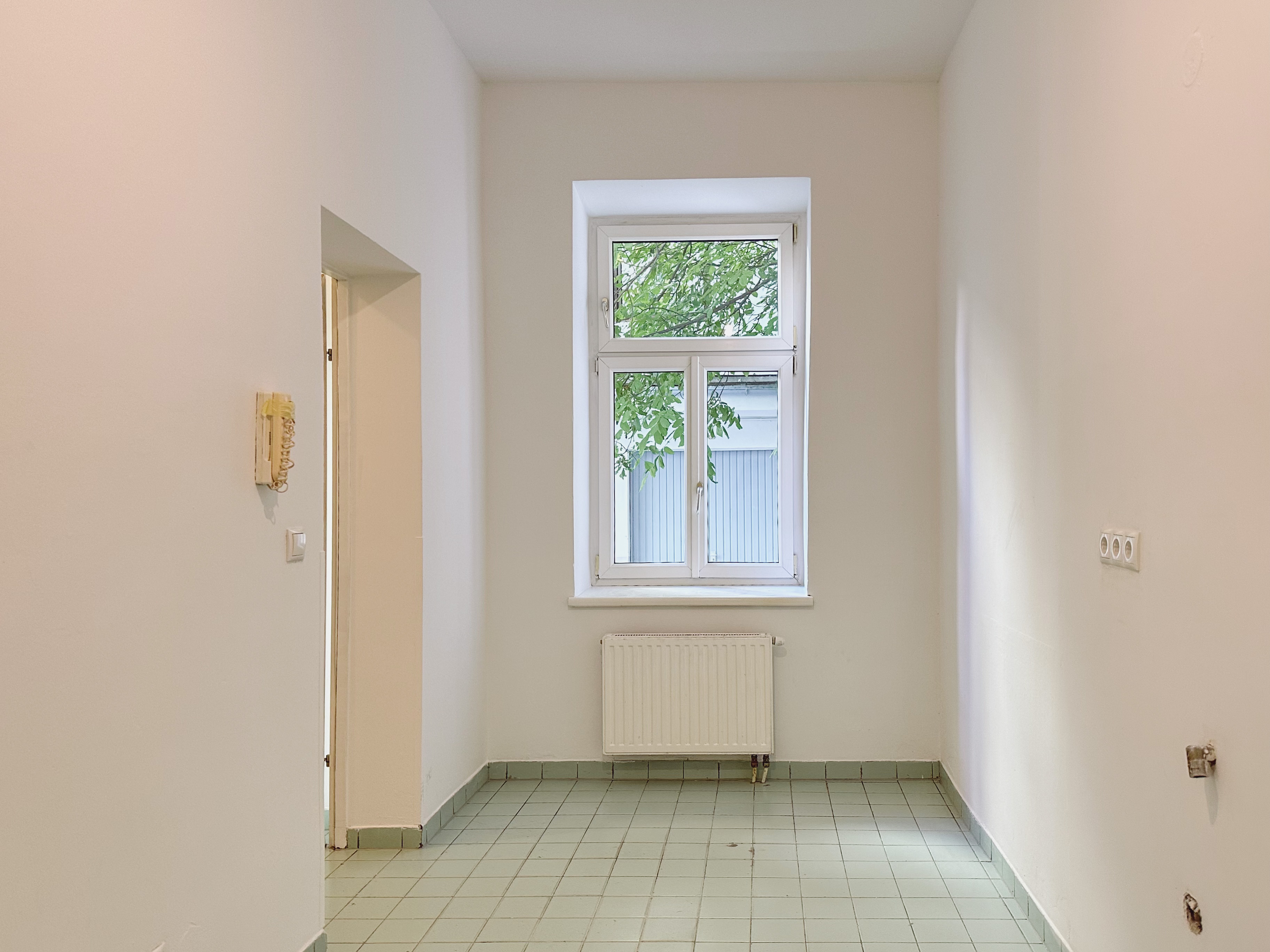 Vom Vorraum der Wohnung aus, gelangt man in das Badezimmer mit Wanne, das separate WC, sowie in den ruhigen Innenhof gelegene Küche, welche Sie nach Ihren einen Wünschen gestalten können.