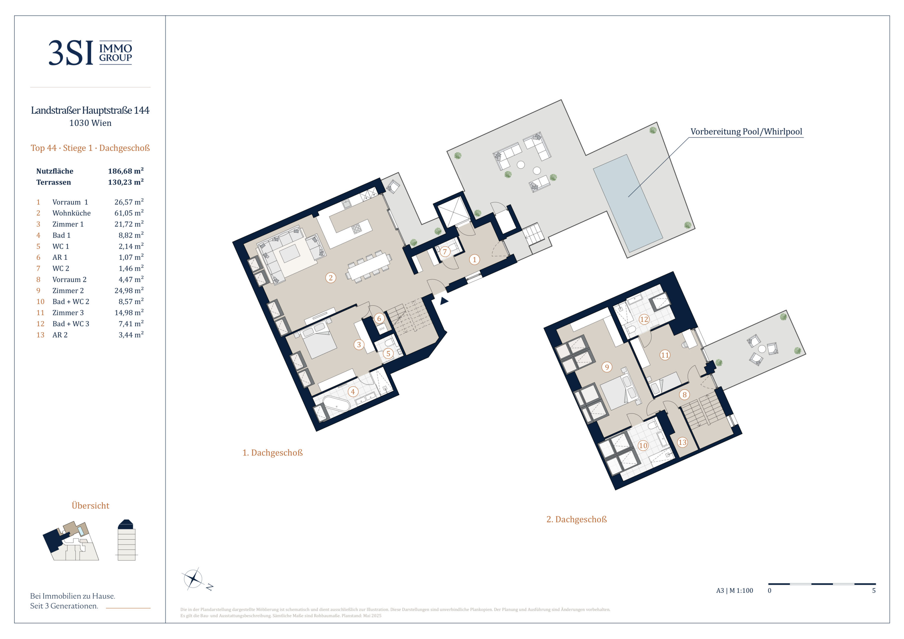 Provisionshinweis: Der guten Ordnung halber halten wir fest, dass bei einem erfolgreichen Geschäftsabschluss eine Provisionszahlung an die 3SI Makler GmbH in der zuvor ausgewiesenen Höhe zu entrichten ist. Die Höhe der Provision entspricht den Bestimmungen der geltenden Verordnung des Bundesministers für wirtschaftliche Angelegenheiten über Standes- und Ausübungsregeln für Immobilienmakler. Diese Provisionspflicht besteht auch dann, wenn Sie die Ihnen überlassenen Informationen an Dritte weitergeben. Letztlich weisen wir darauf hin, dass wir als Doppelmakler tätig sind und ein familiäres/wirtschaftliches Naheverhältnis zwischen der 3SI Makler GmbH und der Verkäuferin besteht.