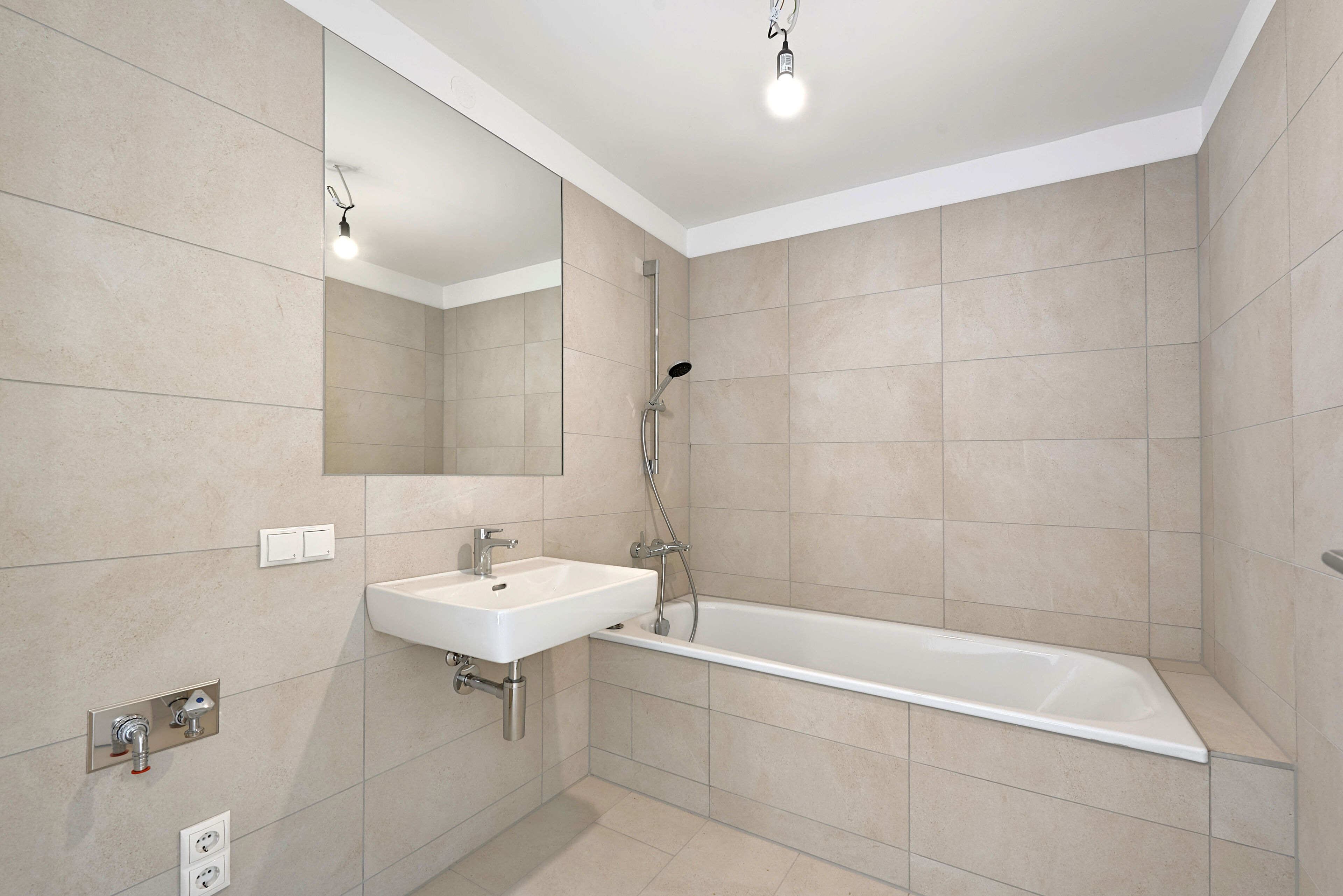 - Badezimmer (ca. 4 m²) mit Badewanne, Handwaschbecken und Waschmaschinenanschluss