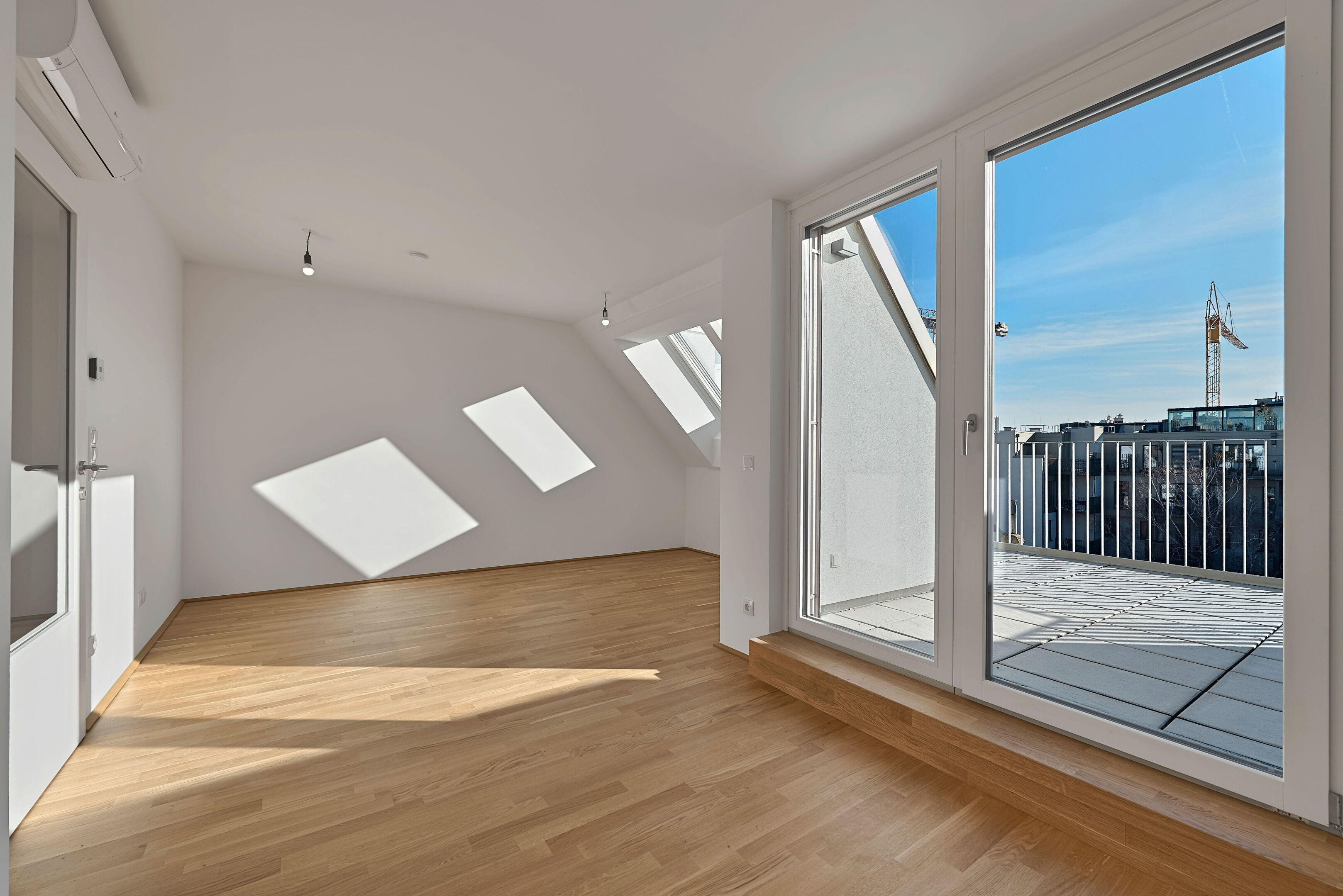 Fast alle Eigentumswohnungen verfügen über attraktive Freiflächen wie Balkone, Loggia, Terrassen oder Eigengärten. Über den Wohnungen im Erdgeschoss mit schönen Eigengärten entstehen auf 4 Obergeschoßen klug angelegte Wohneinheiten mit je 1 bis 4 Zimmern und Größen von ca. 35 bis 135 m². Die Wohnungen bieten entweder einen straßenseitigen- oder hofseitigen Blick und einen Freibereich in Form von Balkon, Loggia oder Terrasse. Den krönenden Abschluss bilden 2 attraktive Dachgeschossebenen, diese Wohnungen bieten Terrassen bzw. auch privaten Dachterrassen und einen schönen Ausblick.