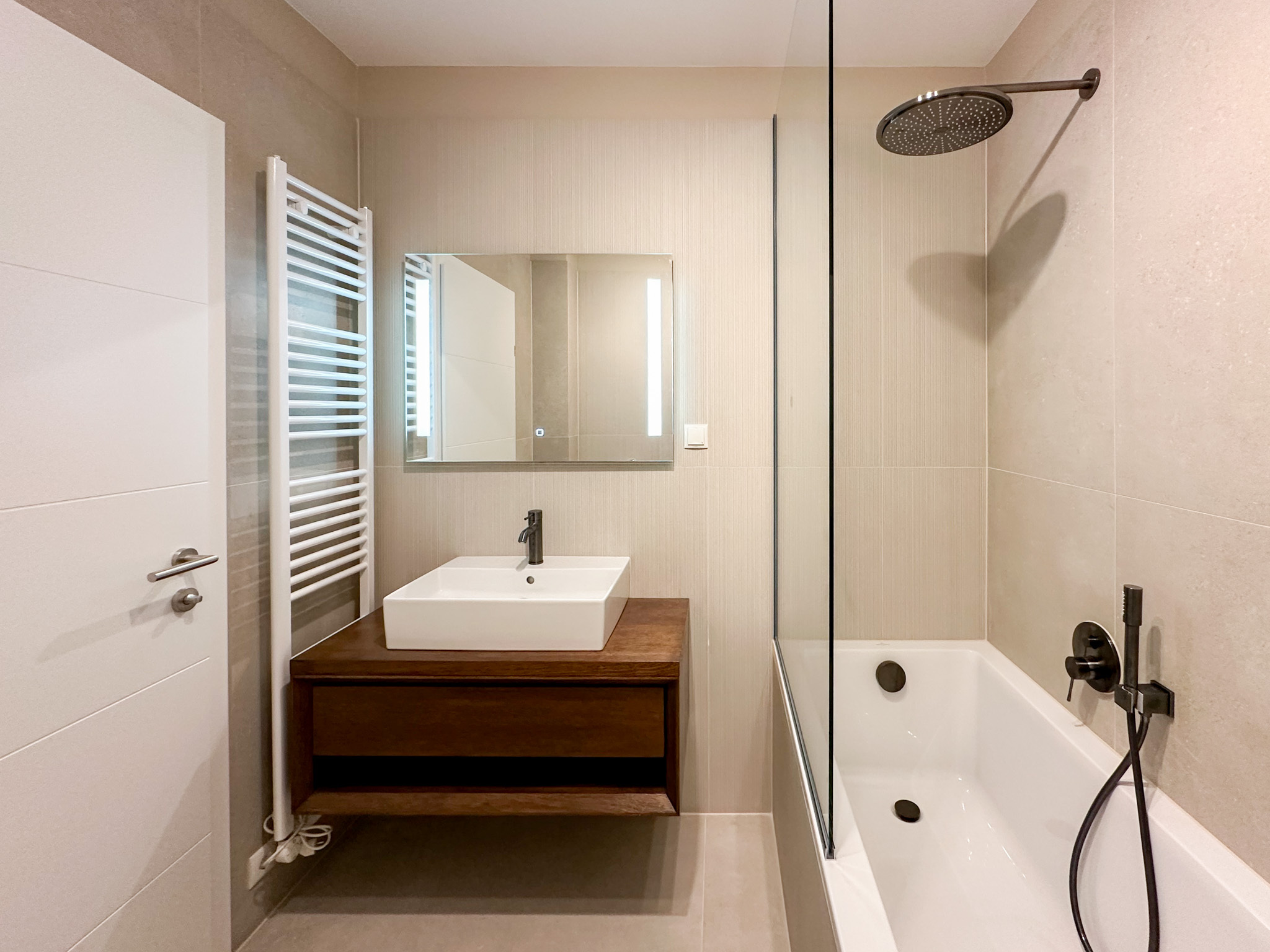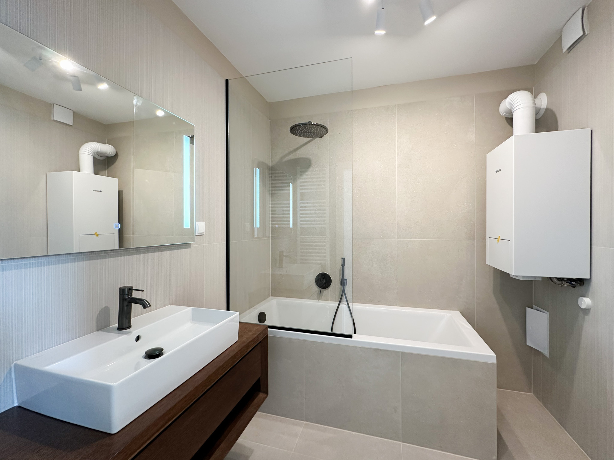 - Badezimmer mit Badewanne und Waschmaschinenanschluss