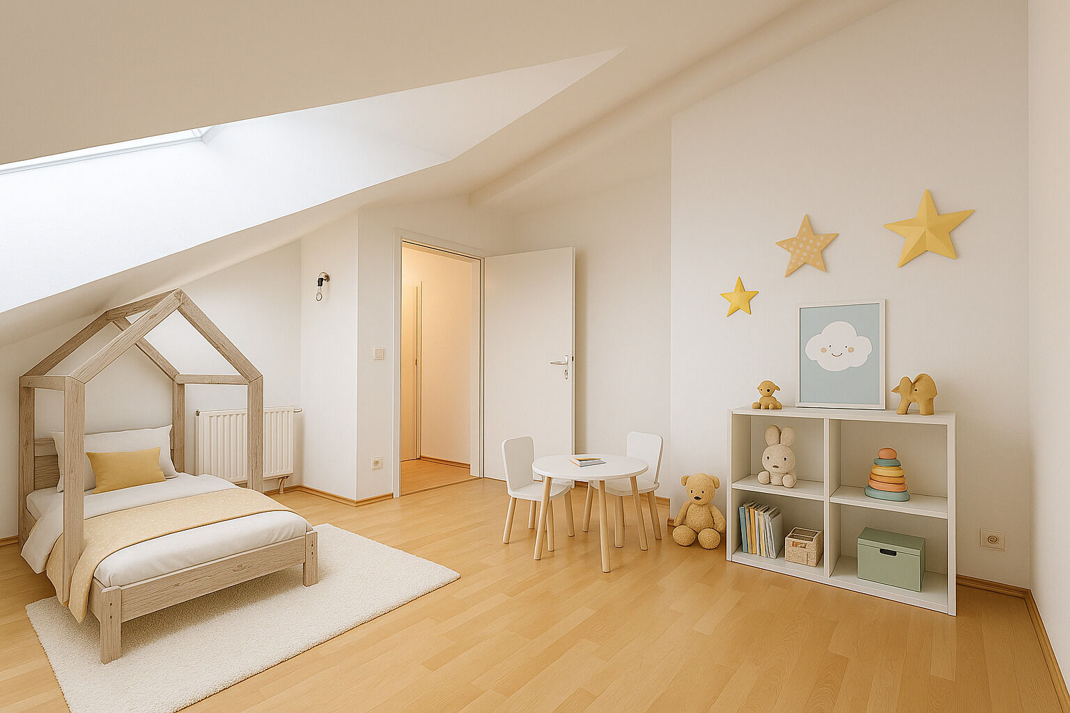 Diese charmante Dachgeschoss-Maisonette besticht durch ihre durchdachte Aufteilung und vielseitigen Gestaltungsmöglichkeiten. Der lichtdurchflutete Wohnraum mit großzügiger Fensterfront lädt zum Verweilen ein, während ein separates WC die Etage abrundet. Eine stilvolle Holztreppe führt in den privaten Bereich, wo die Galerie viele Nutzungsmöglichkeiten bietet. Das ruhige Schlafzimmer mit Innenhofblick sorgt für Erholung, und das Badezimmer mit Badewanne und Waschmaschinenanschluss ist ebenfalls hier. Die Dachterrasse, erreichbar vom Schlafzimmer und der Galerie, bietet einen idyllischen Blick in den Innenhof.