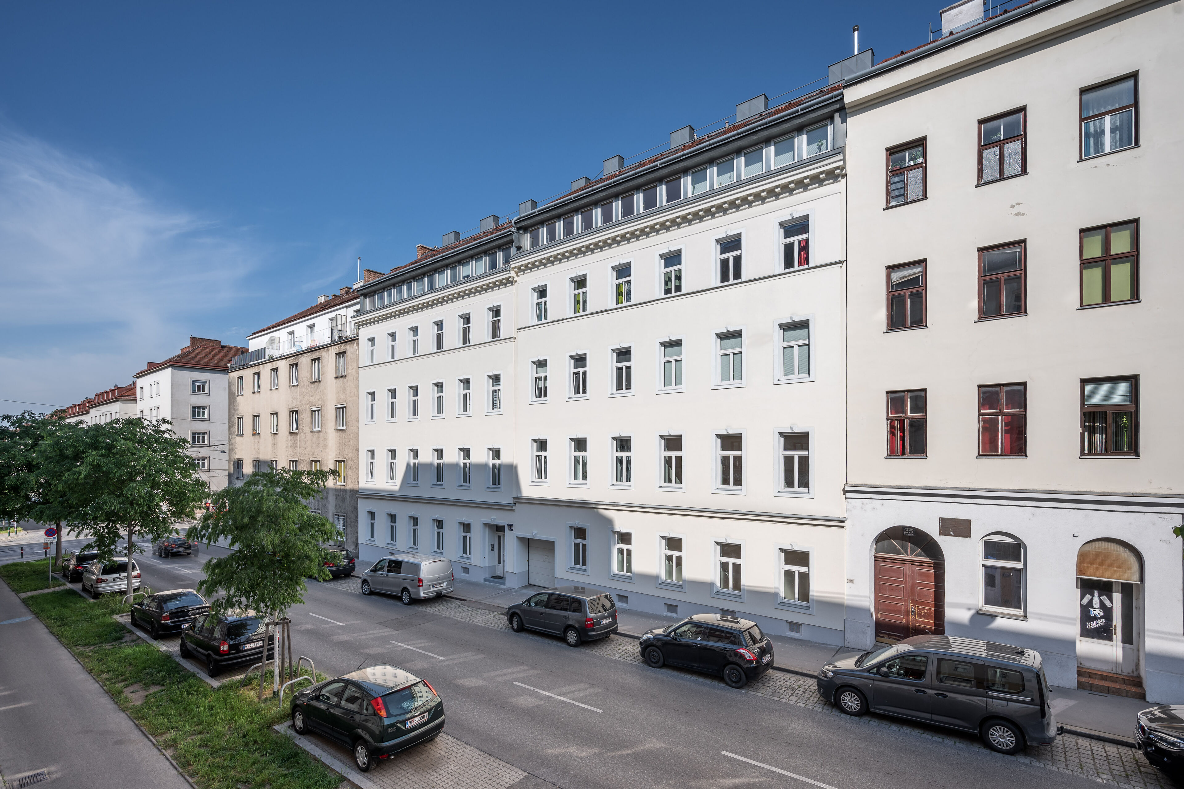 Die Liegenschaft beeindruckt mit einem prachtvollen Stiegenhaus und einer Zufahrtsmöglichkeit zum ruhigen Innenhof. Das charmante Zinshaus ist in zwei Stiegen unterteilt, die jeweils über einen geräumigen Personenlift verfügen.