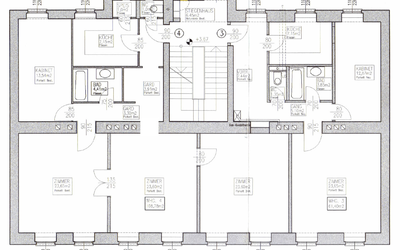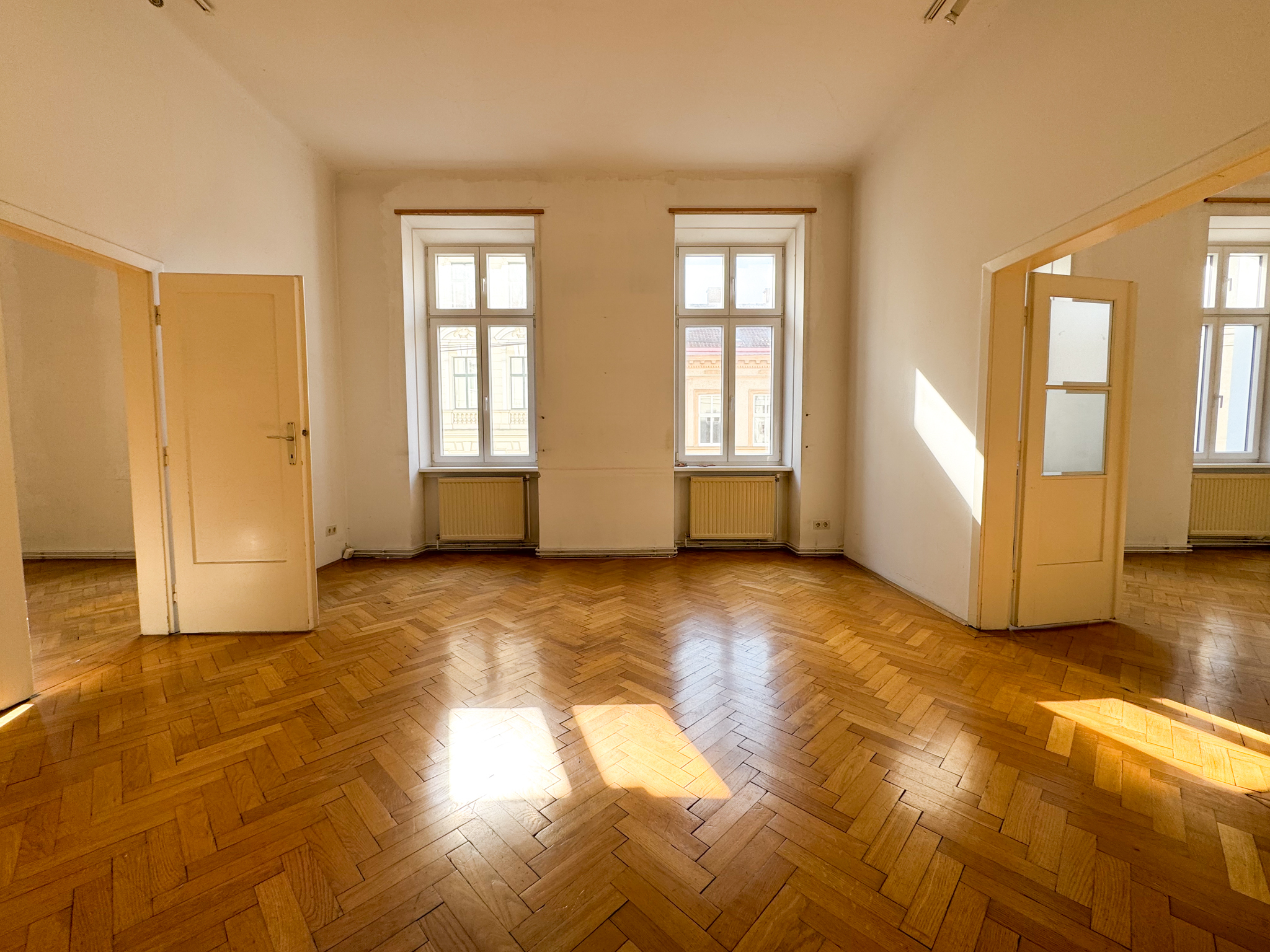 Diese unsanierten nebeneinander liegenden Wohnungen (Top3 61,40m³ + Top 4 108,78m²) bieten Ihnen die Möglichkeit die Wohnungen nach Ihren Wünschen und Vorstellungen zu kombinieren, sodass man eine Gesamtwohnfläche von ca. 170m² mit 5-6 Zimmern erhält.