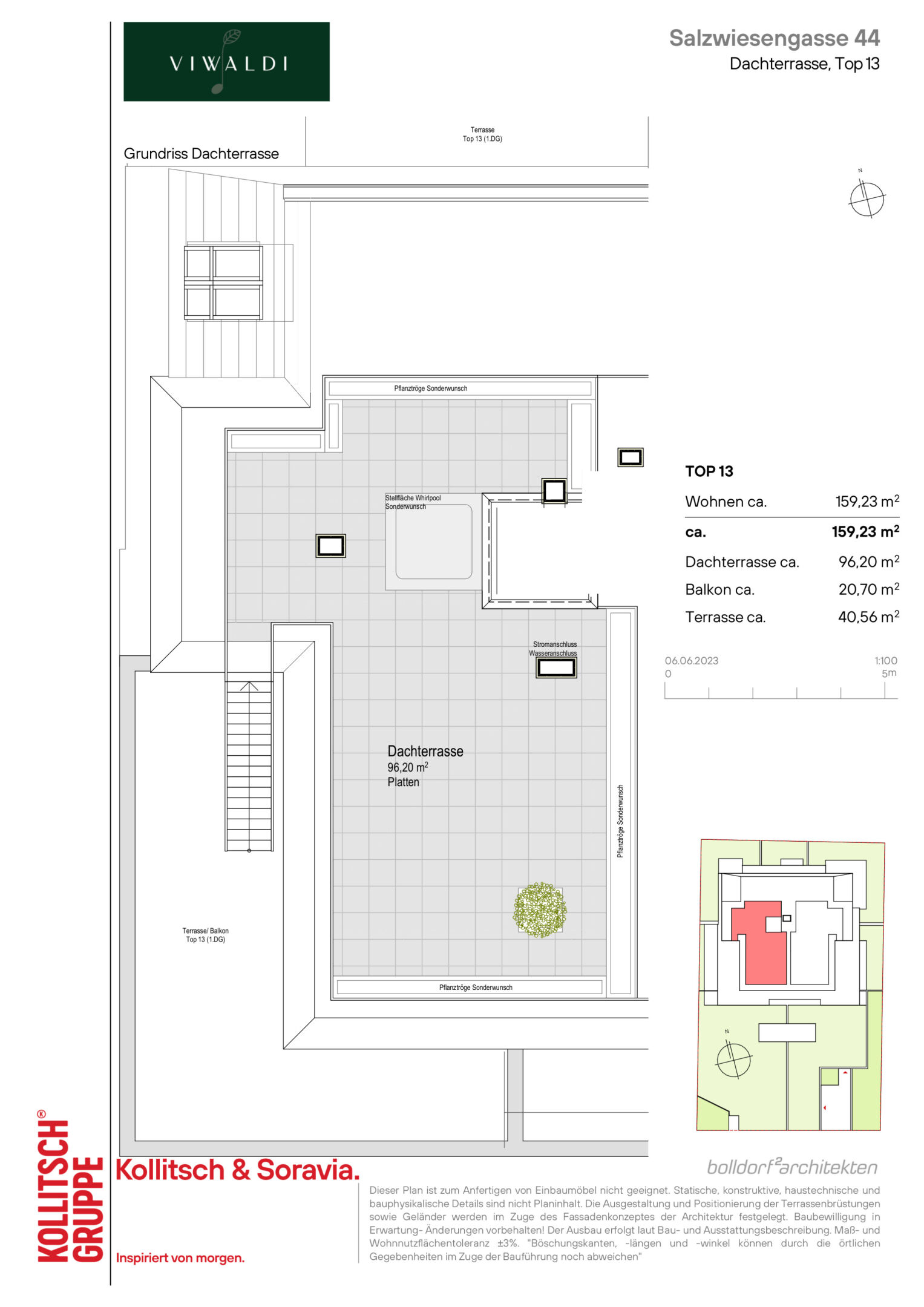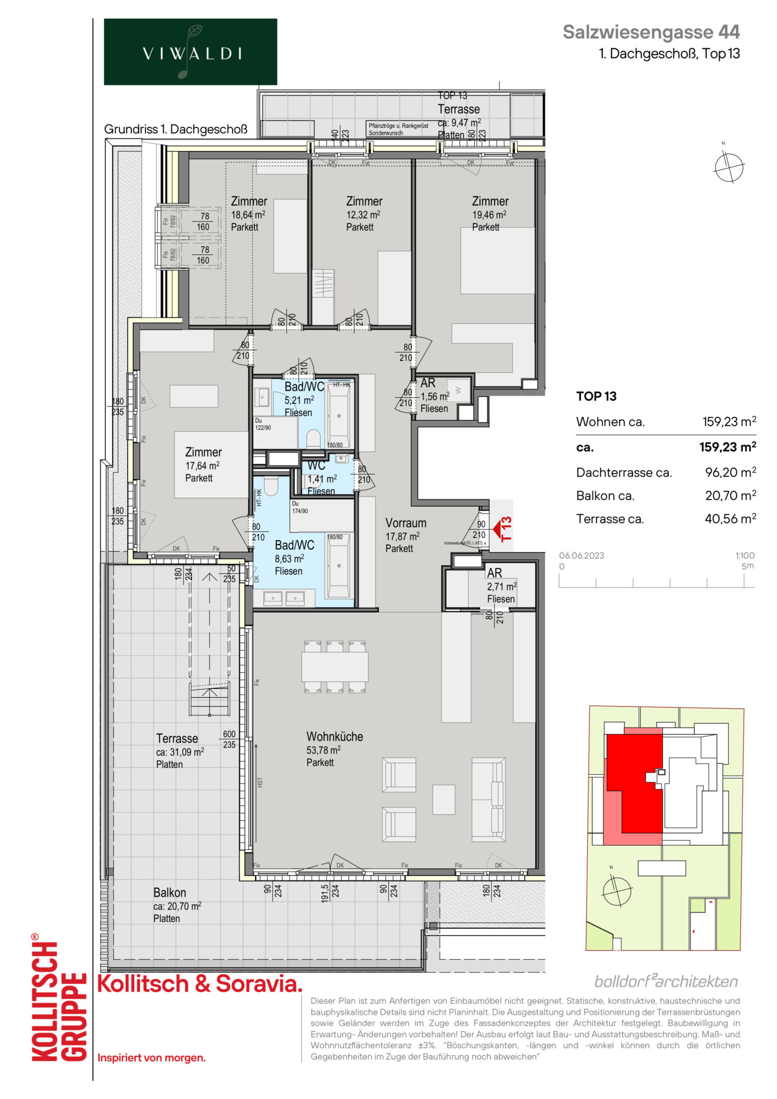 Diese moderne 5-Zimmer-Penthousewohnung verfügt über rund 159,3m² Wohnfläche zzgl. rund 136,76m² Terrassenflächen, sowie rund 20,70m² Balkonfläche . Sie besticht durch ihren durchdachten Grundriss und teilt sich wie folgt auf: