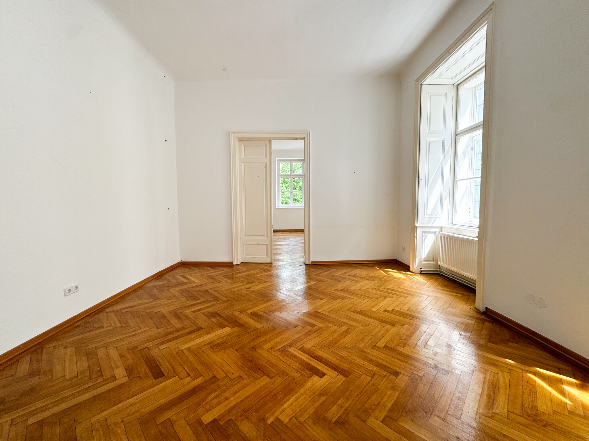 Die Wohnung kann auf Wunsch auch als komplett sanierte Erstbezugswohnung erworben werden. Der Kaufpreis für die sanierte Variante beträgt € 1.200.000.
