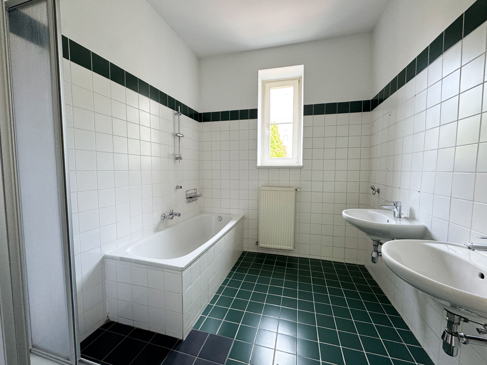 - Badezimmer mit Wanne und Dusche