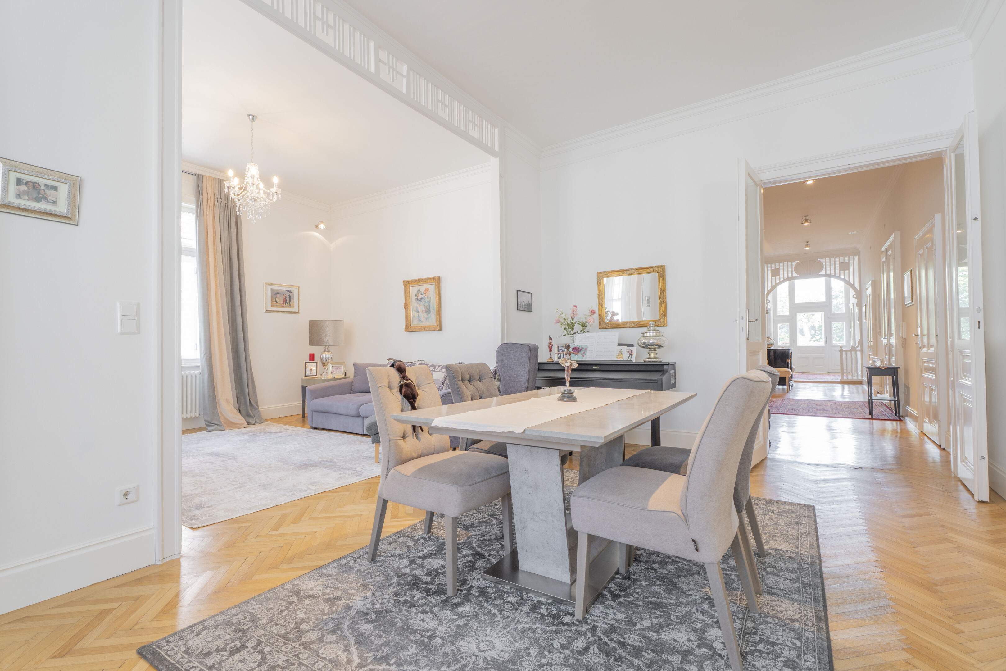 In der 3. Etage einer gepflegten Jahrhundertwende-Zinsvilla erstreckt sich diese exklusive Immobilie über beeindruckende 239,27 m² und bietet mit großzügigen 7 Zimmern genügend Platz für die Gestaltung Ihrer individuellen Bedürfnisse. Die lichtdurchfluteten Räume bestechen durch ihre hochwertige stilgerechte Ausstattung mit Fischgrät-Parkettböden, Flügeltüren und Holzkastenfenster sowie einer stimmigen Raumaufteilung mit großzügigem Wohn-Essbereich mit angeschlossener Küche, welche den perfekten Rahmen für gesellige Abende mit Familie und Freunden schaffen.