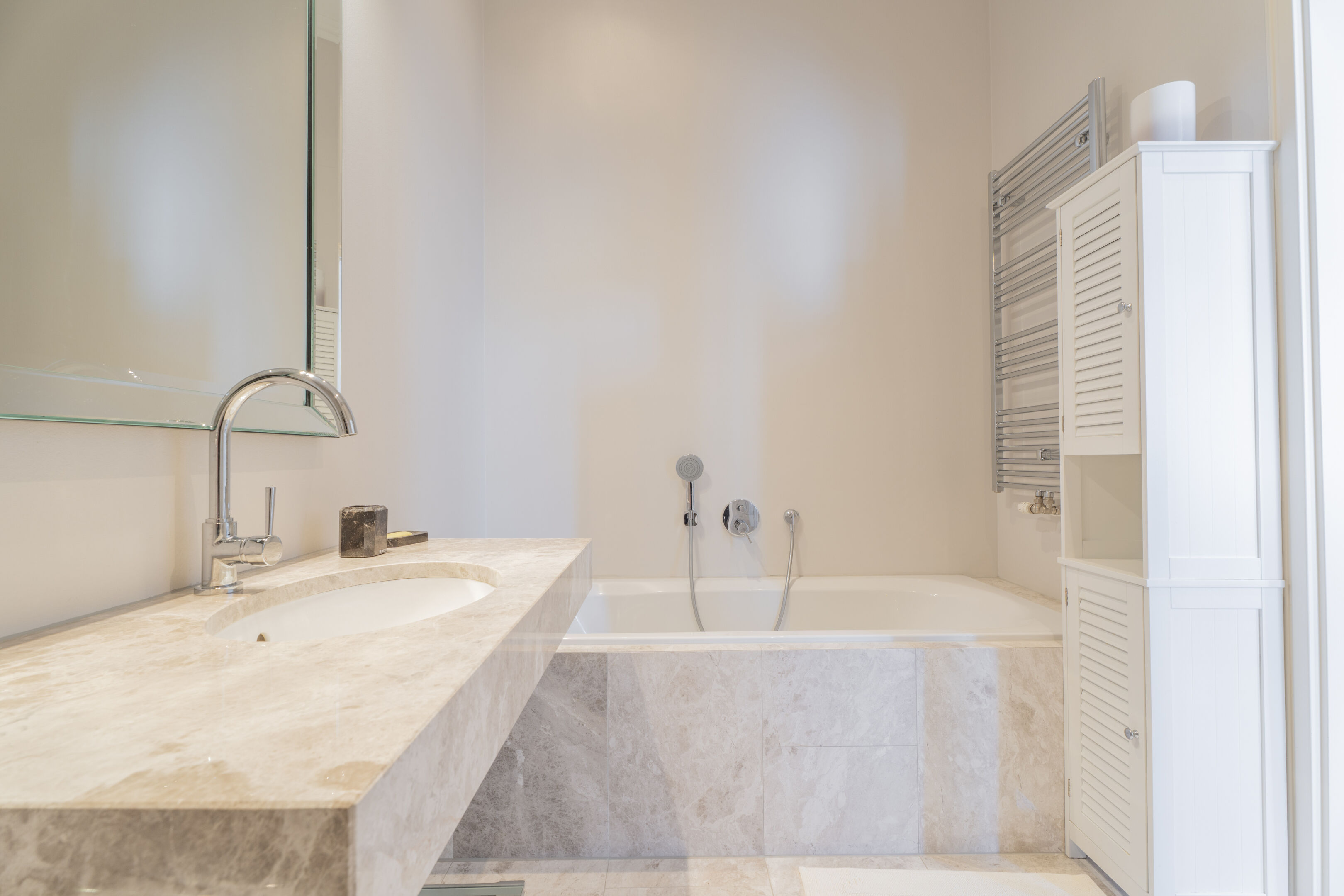 Die Wohnung verfügt über 4 elegante Badezimmer, die mit modernen Annehmlichkeiten ausgestattet sind, darunter Fenster und Badewannen, die Ihnen die Möglichkeit geben, sich nach einem langen Tag zu entspannen.