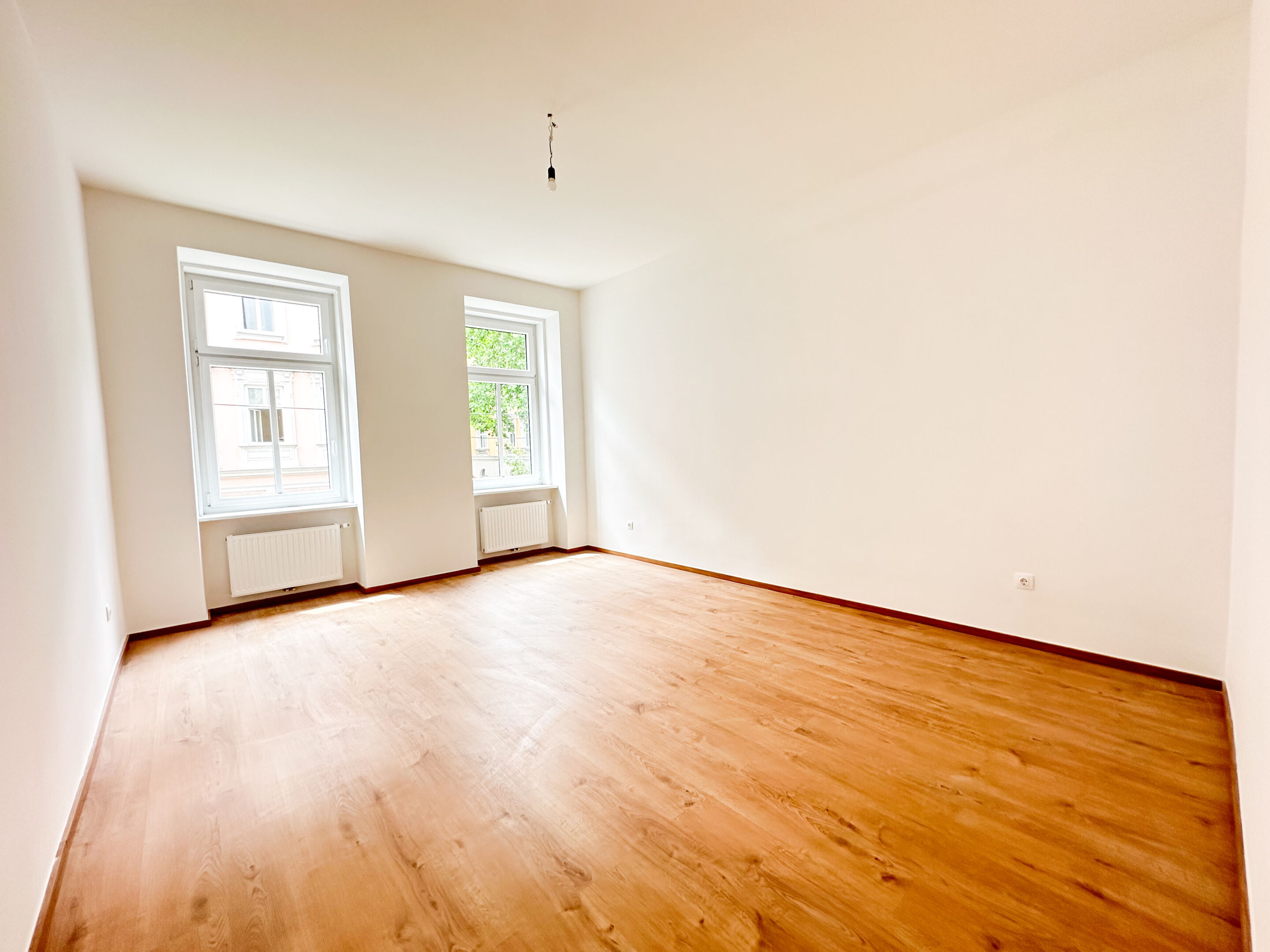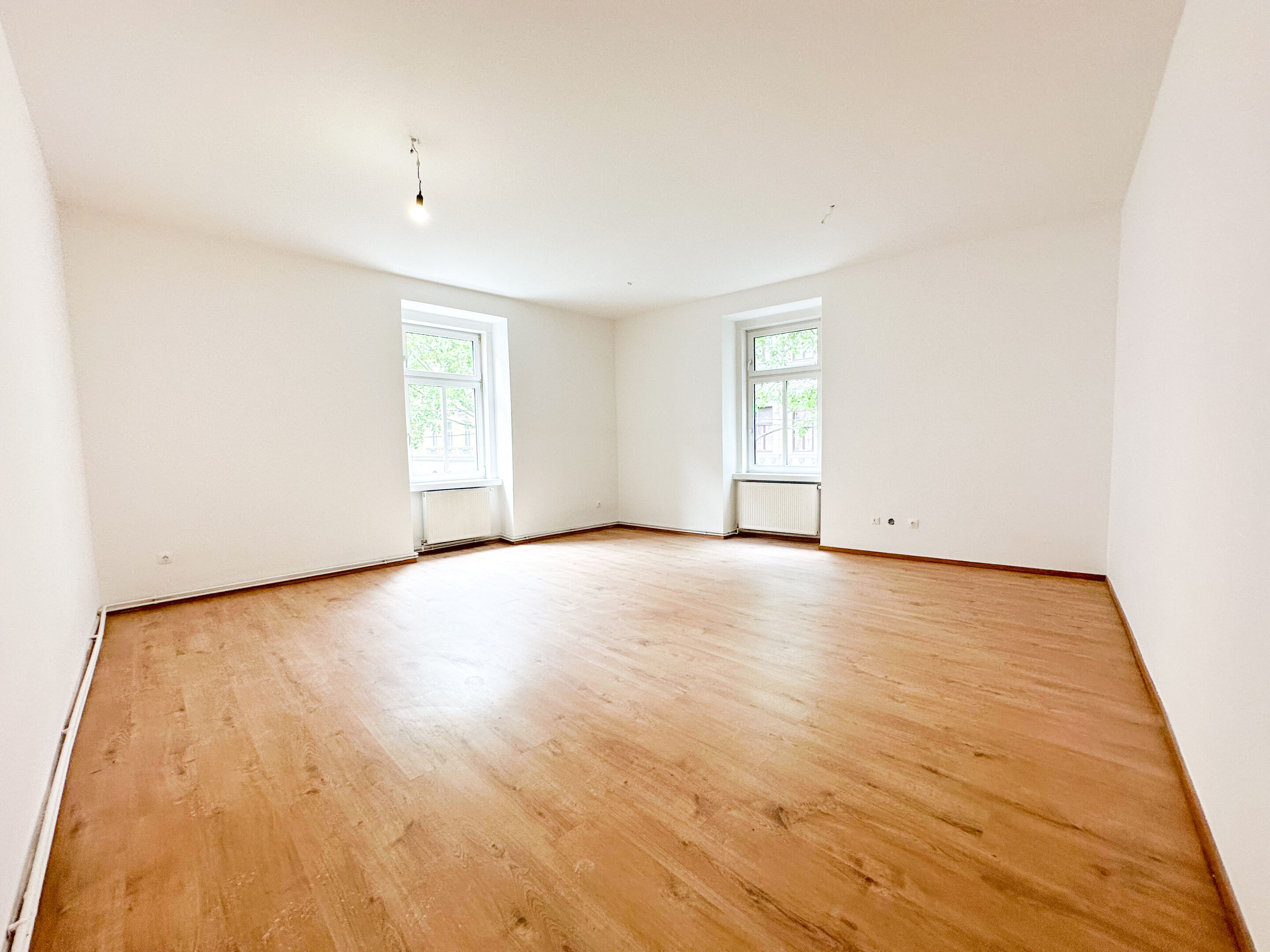 Nach einer liebevollen Auffrischung präsentiert sich diese Wohnung in einem frischen, einladenden Zustand. Das Herzstück der Wohnung bildet eine beeindruckend große Küche, die sowohl funktional als auch einladend gestaltet ist – ideal für kulinarische Kreationen und gesellige Zusammenkünfte. Das lichtdurchflutete Wohnzimmer bietet eine elegante Oase der Entspannung, während das komfortable Schlafzimmer Ruhe und Privatsphäre garantiert. Das Badezimmer ist schön ausgestattet und lädt zu entspannenden Momenten ein, ergänzt durch ein separates Gäste-WC für zusätzlichen Komfort. Diese gepflegte Wohnung verbindet zeitlosen Stil mit praktischem Wohnkomfort und bietet Ihnen ein Zuhause, das keine Wünsche offenlässt.