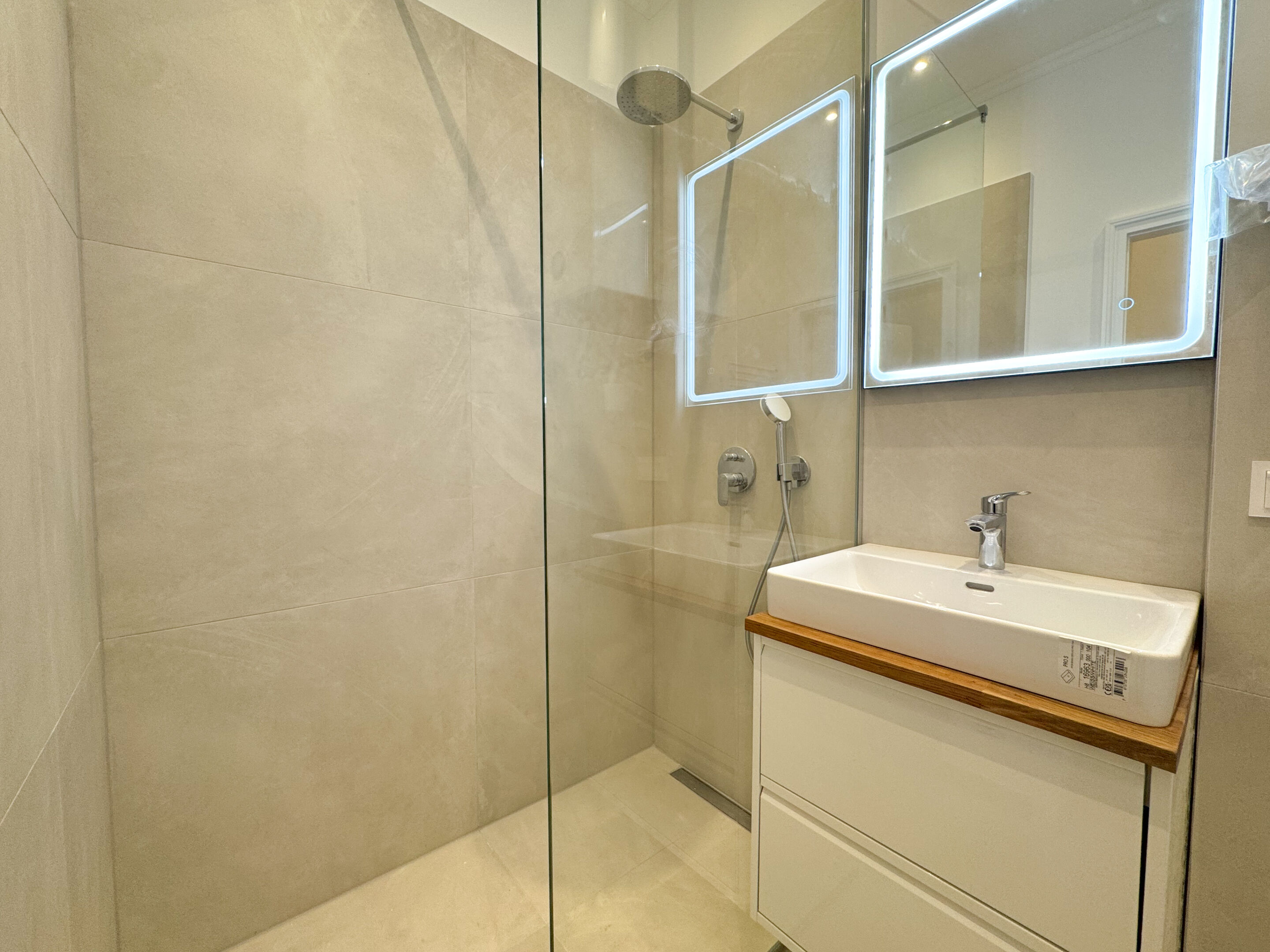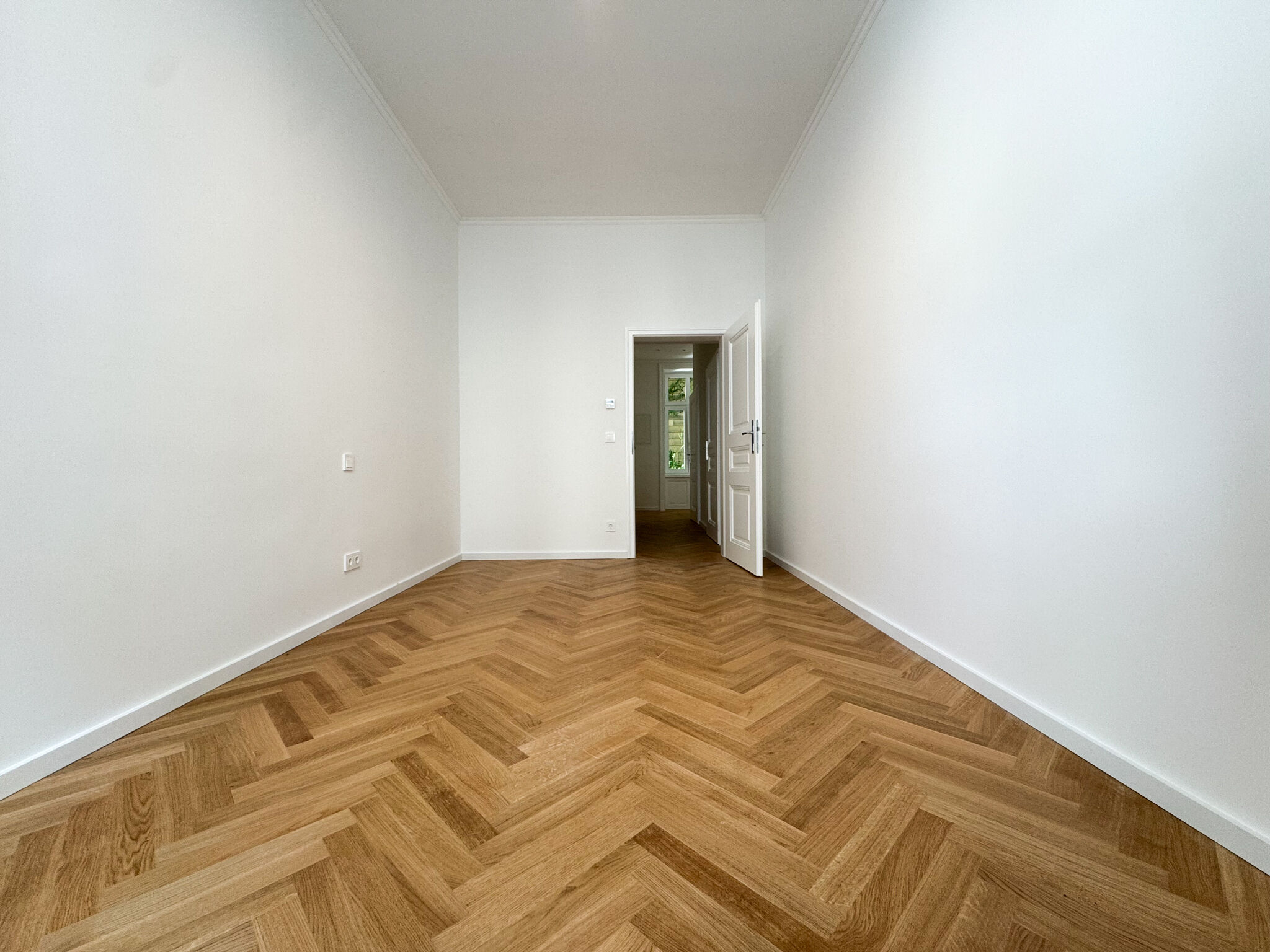 Die Wohnung wurde mit viel Liebe zum Detail renoviert und überzeugt durch einen edlen Eichenparkettboden im Fischgrät-Muster sowie Fußbodenheizung für höchsten Komfort. Das Badezimmer ist mit Marken-Sanitärprodukten ausgestattet, und die neue Verfliesung von Villeroy & Boch setzt elegante Akzente. Auch die Fenster wurden erneuert und sorgen für optimale Lichtverhältnisse und Energieeffizienz. Modernes Design trifft hier auf erstklassige Materialien.