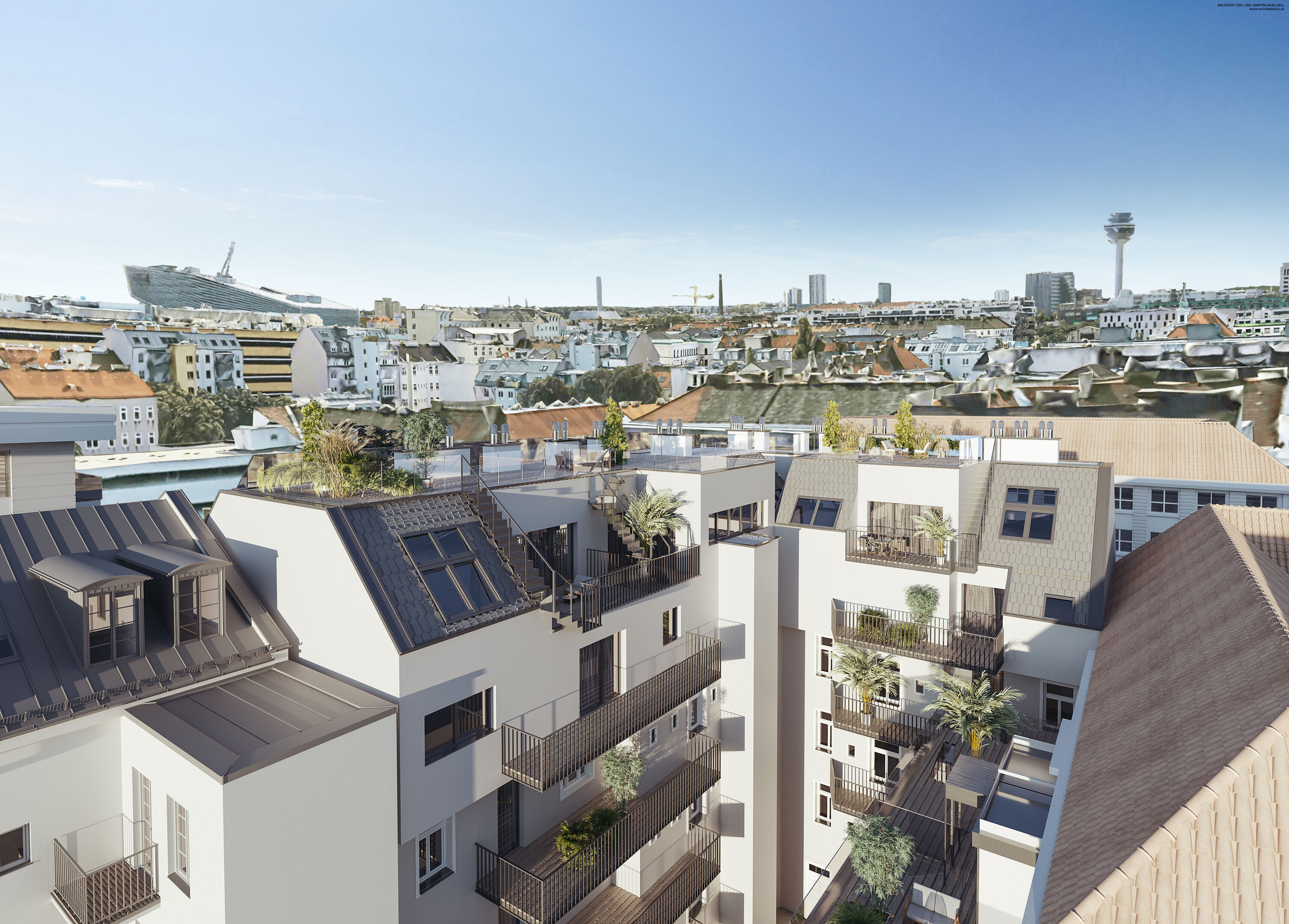• 6 Dachgeschoßwohnungen ca. 621 m² Wohnfläche zzgl. ca. 200 m² Freiflächen