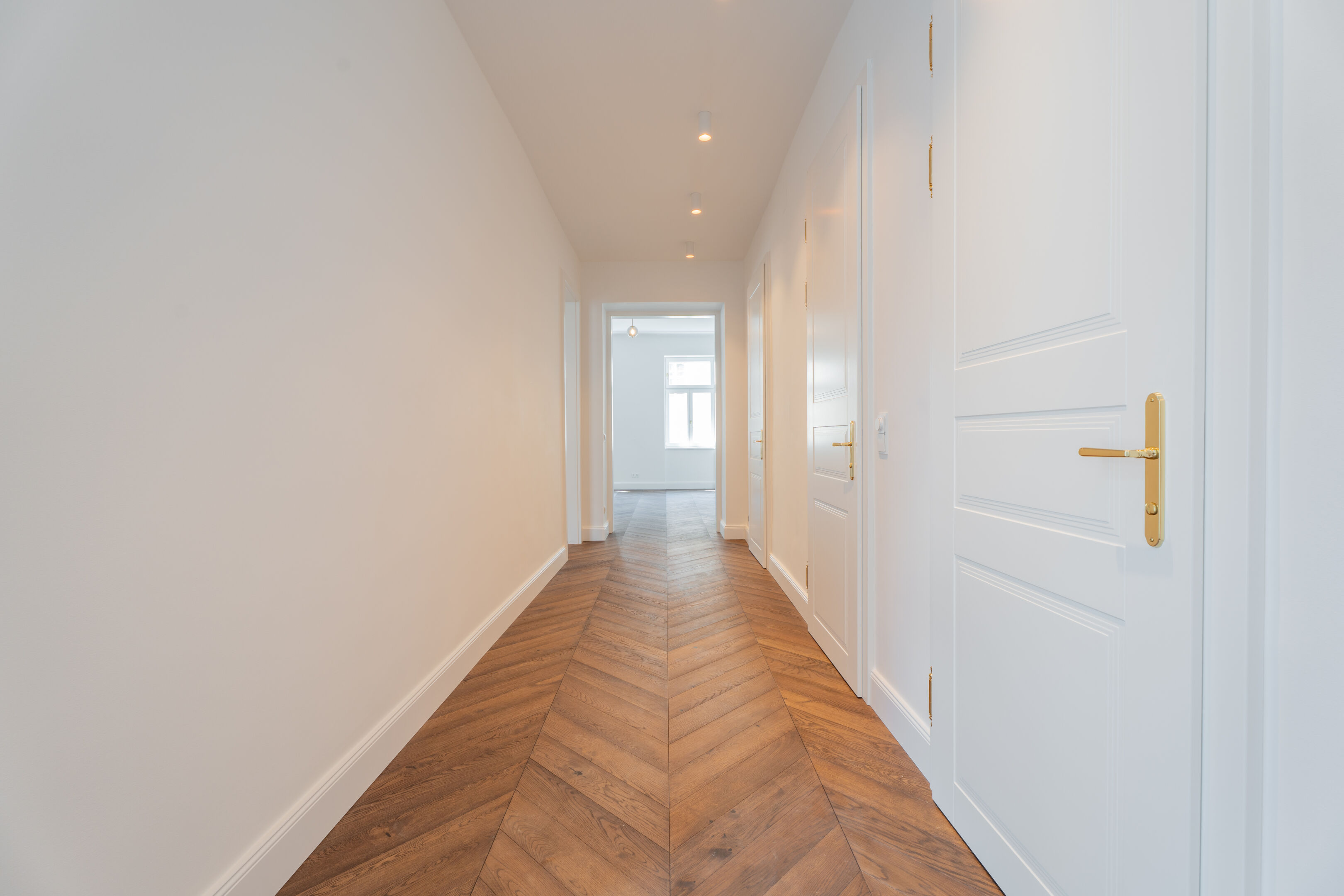 - Innentüren in „Alt-Wien“-Optik mit Kassetten und Holzumfassungszarge, Höhe 2,50 m