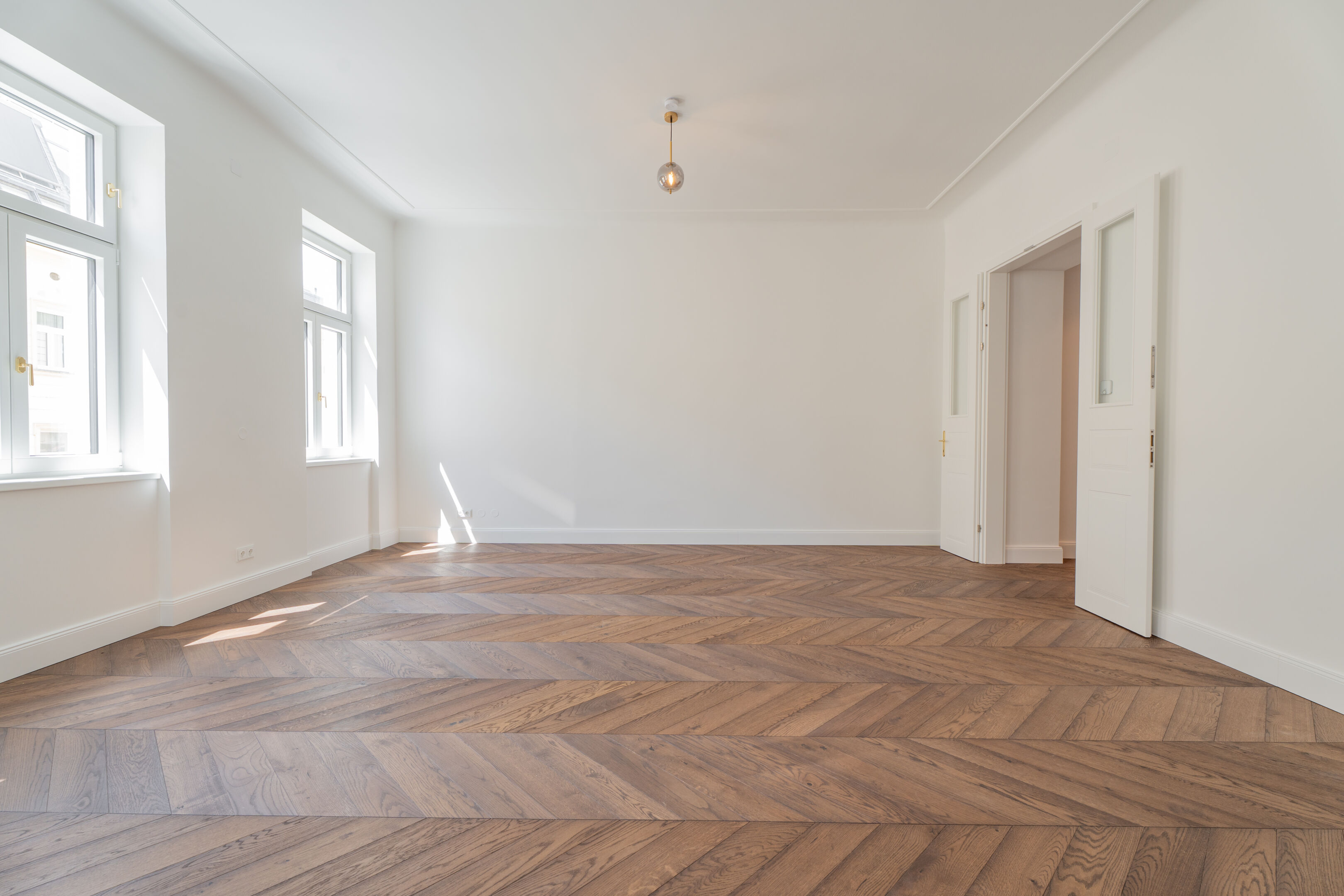 - Fischgrätparkett, Eiche geölt, Berliner Leisten