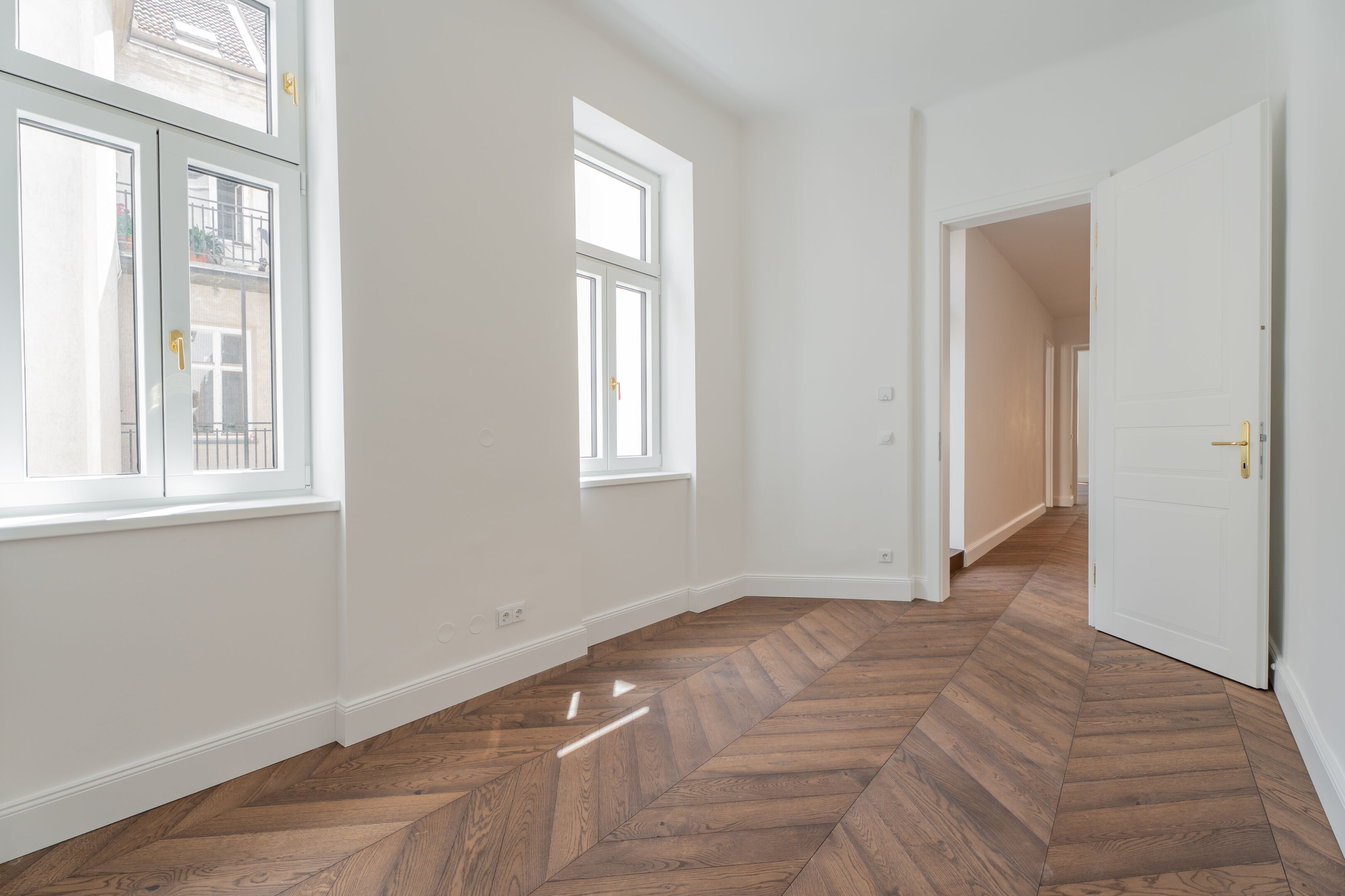 Diese hochwertig sanierte 3-Zimmer-Wohnung bietet ca. 88 m² Wohnfläche sowie eine hofseitig gelegene Loggia mit rund 1,5 m². Sie befindet sich im 2.Obergeschoß eines repräsentativen Altbaus und überzeugt durch ihre ideale Ausrichtung sowohl zur ruhigen Hofseite als auch zur Straße – eine perfekte Balance aus Helligkeit und Rückzug.