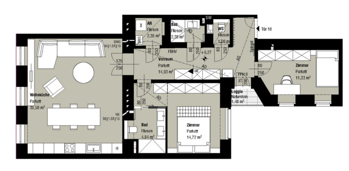 Mit ihrem klar strukturierten Grundriss eignet sich die Wohnung hervorragend für Paare oder kleine Familien, die großzügiges Wohnen mit hoher Lebensqualität verbinden möchten.