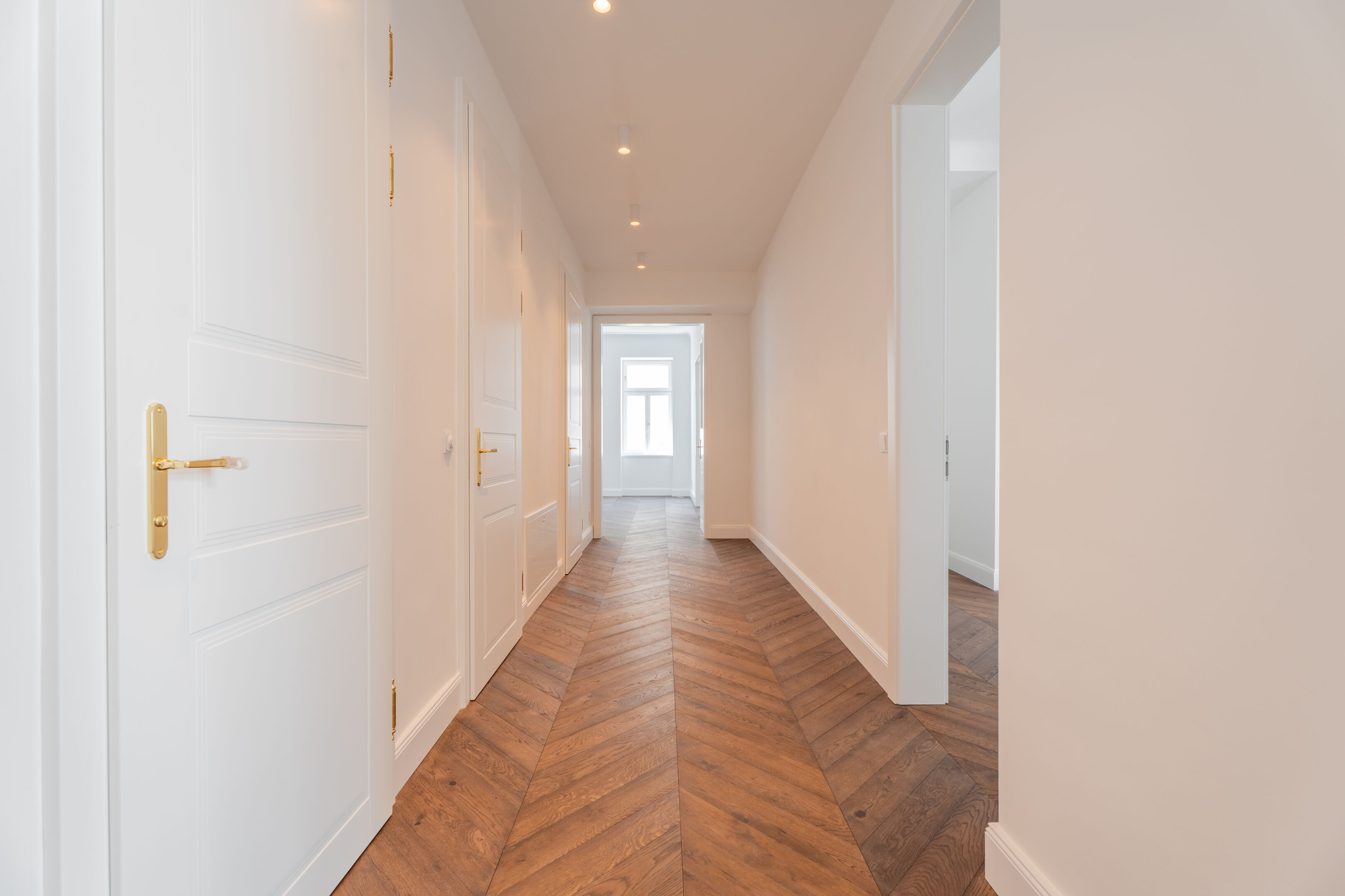 Diese hochwertig sanierte 3-Zimmer-Wohnung mit einer Wohnfläche von ca. 101,5 m² befindet sich im 1. Obergeschoß eines repräsentativen Altbaus und überzeugt durch ihre durchdachte Ausrichtung sowohl zur ruhigen Hofseite als auch zur Straße – eine perfekte Kombination aus Helligkeit und Rückzug.