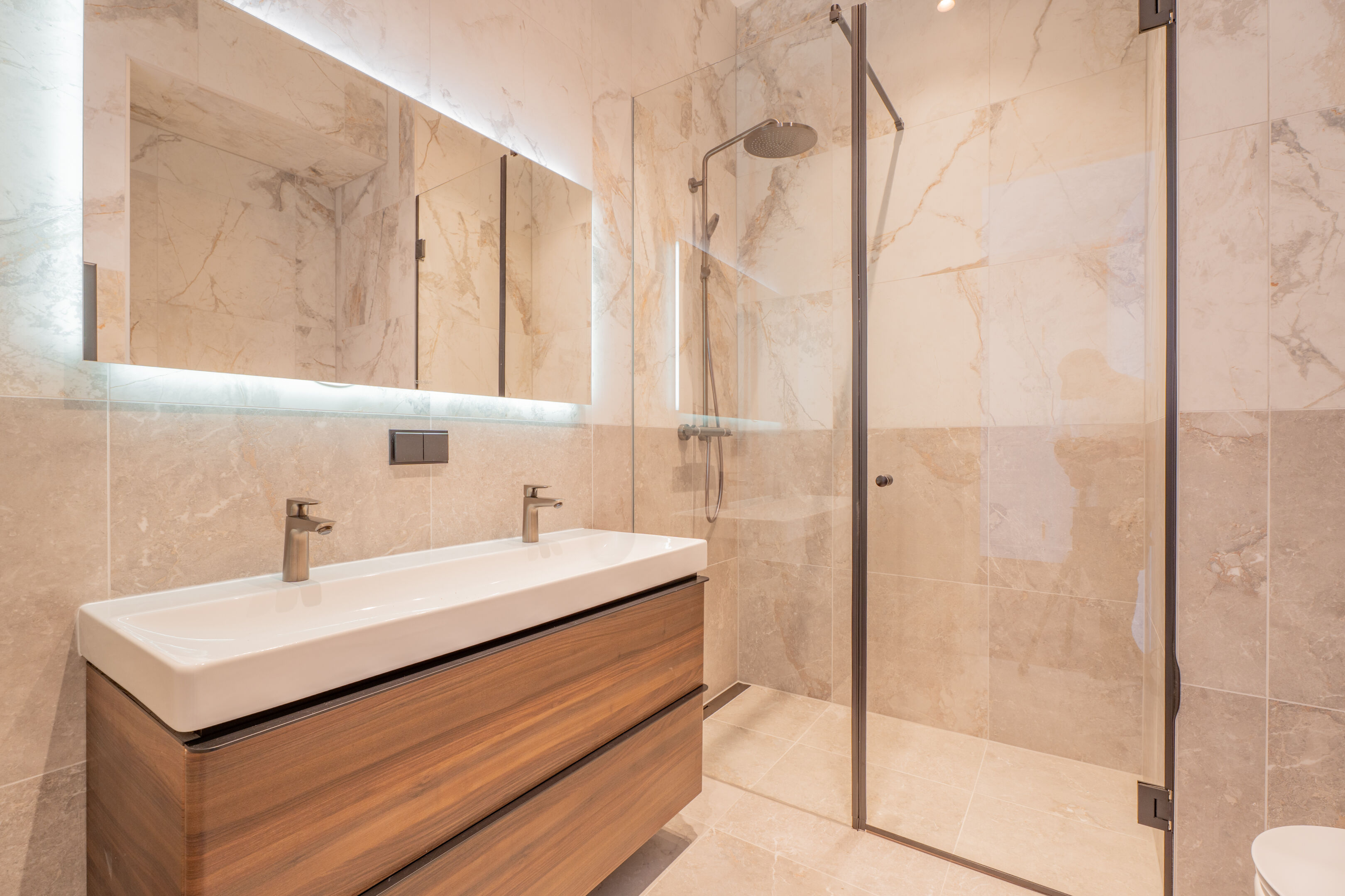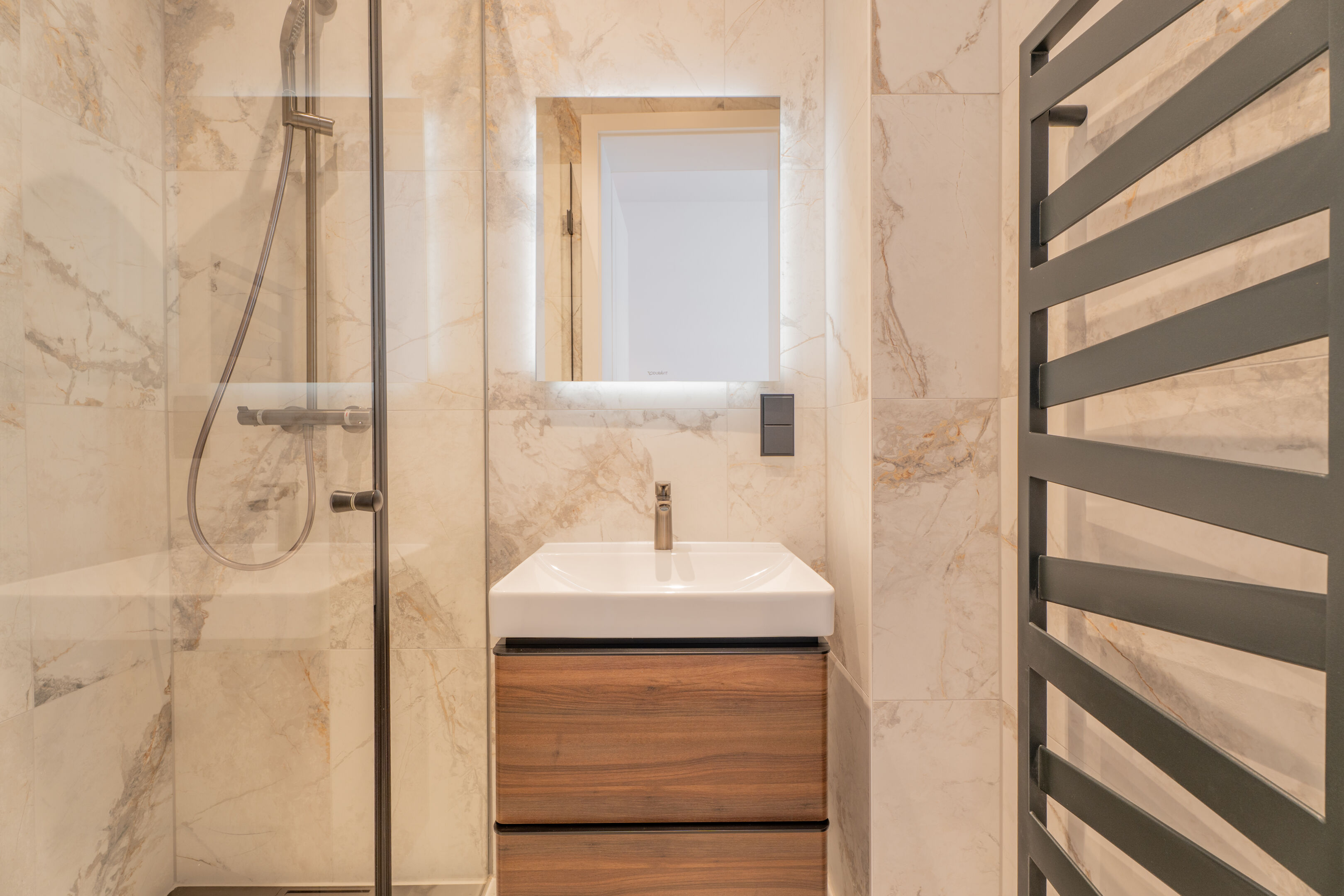 - Zweites Badezimmer mit Walk-In-Dusche und Waschtisch