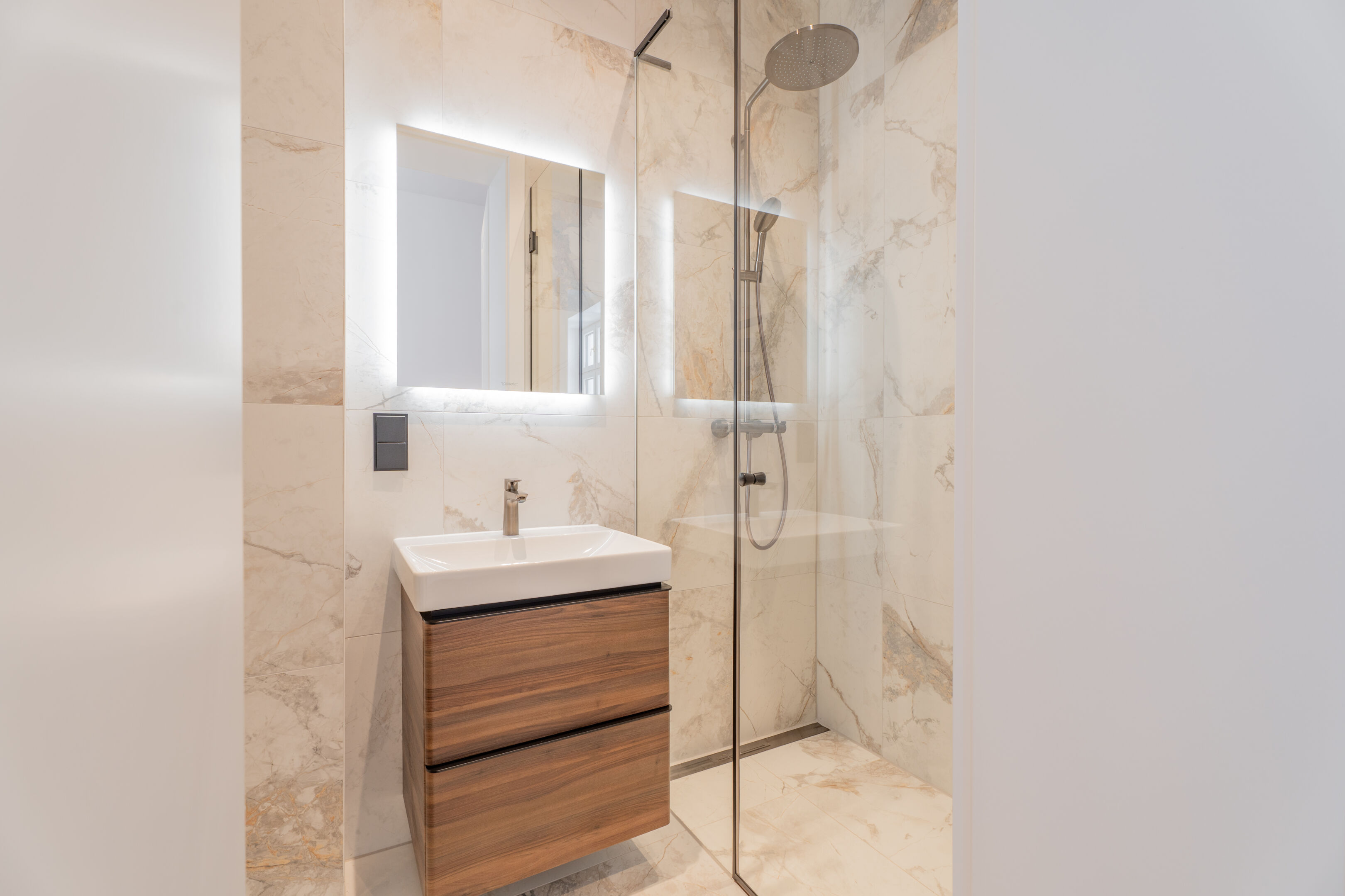 - Zweites Badezimmer mit Walk-In-Dusche und Waschtisch