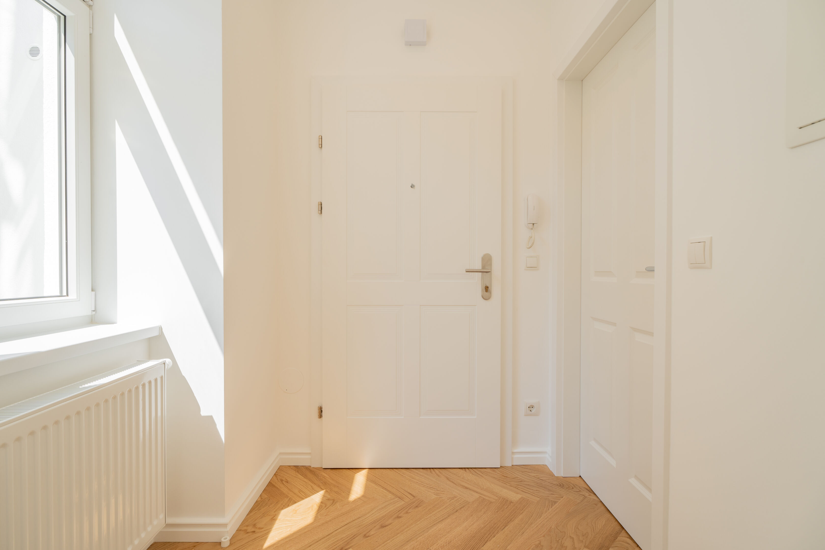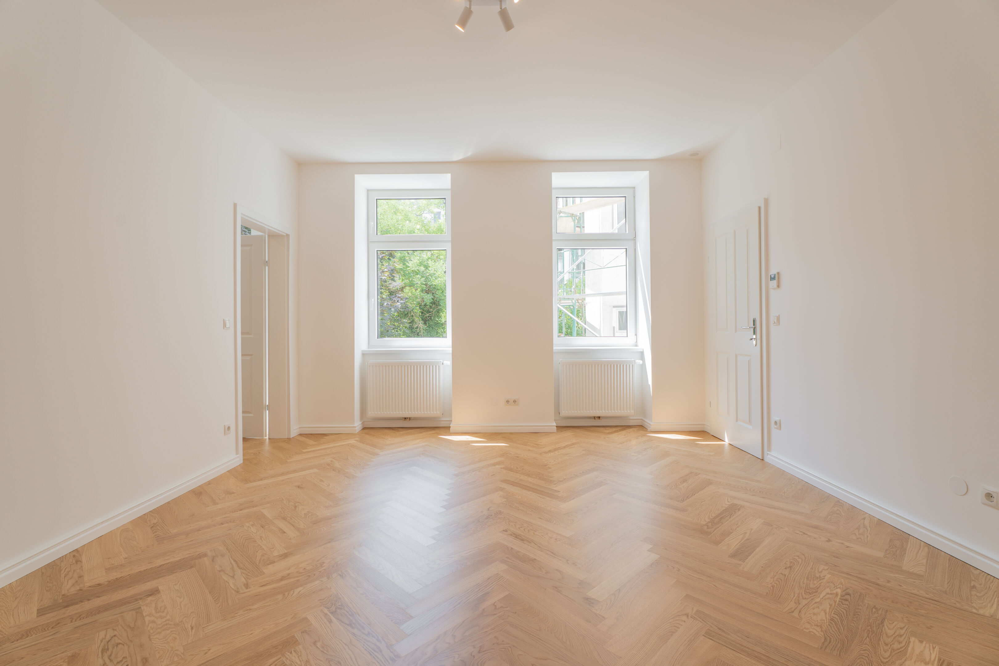 - Edle Eichenparkettböden in zeitlosem Fischgrät verlegt