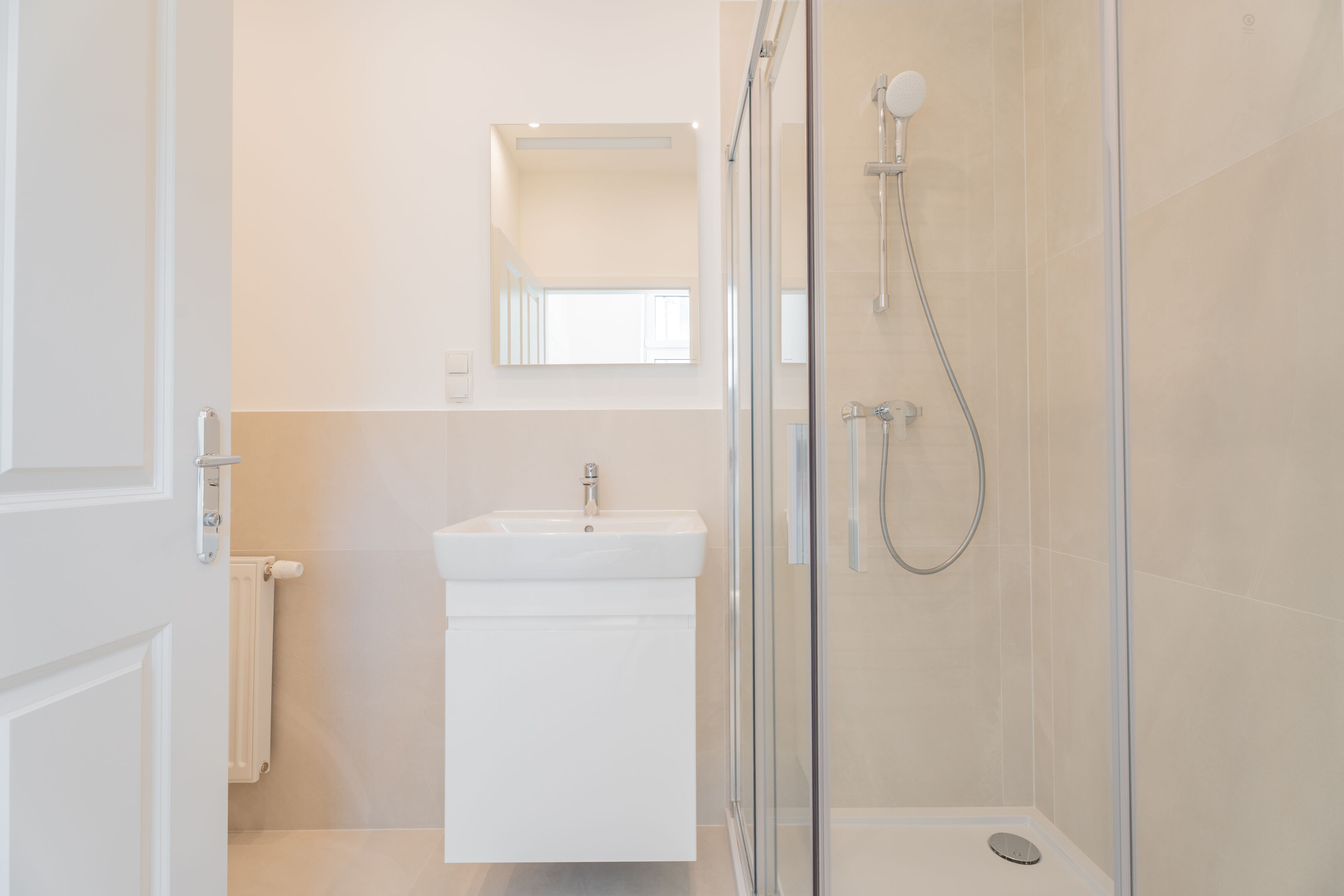 - Fein abgestimmte Materialwahl bei Fliesen, Armaturen und Beleuchtung