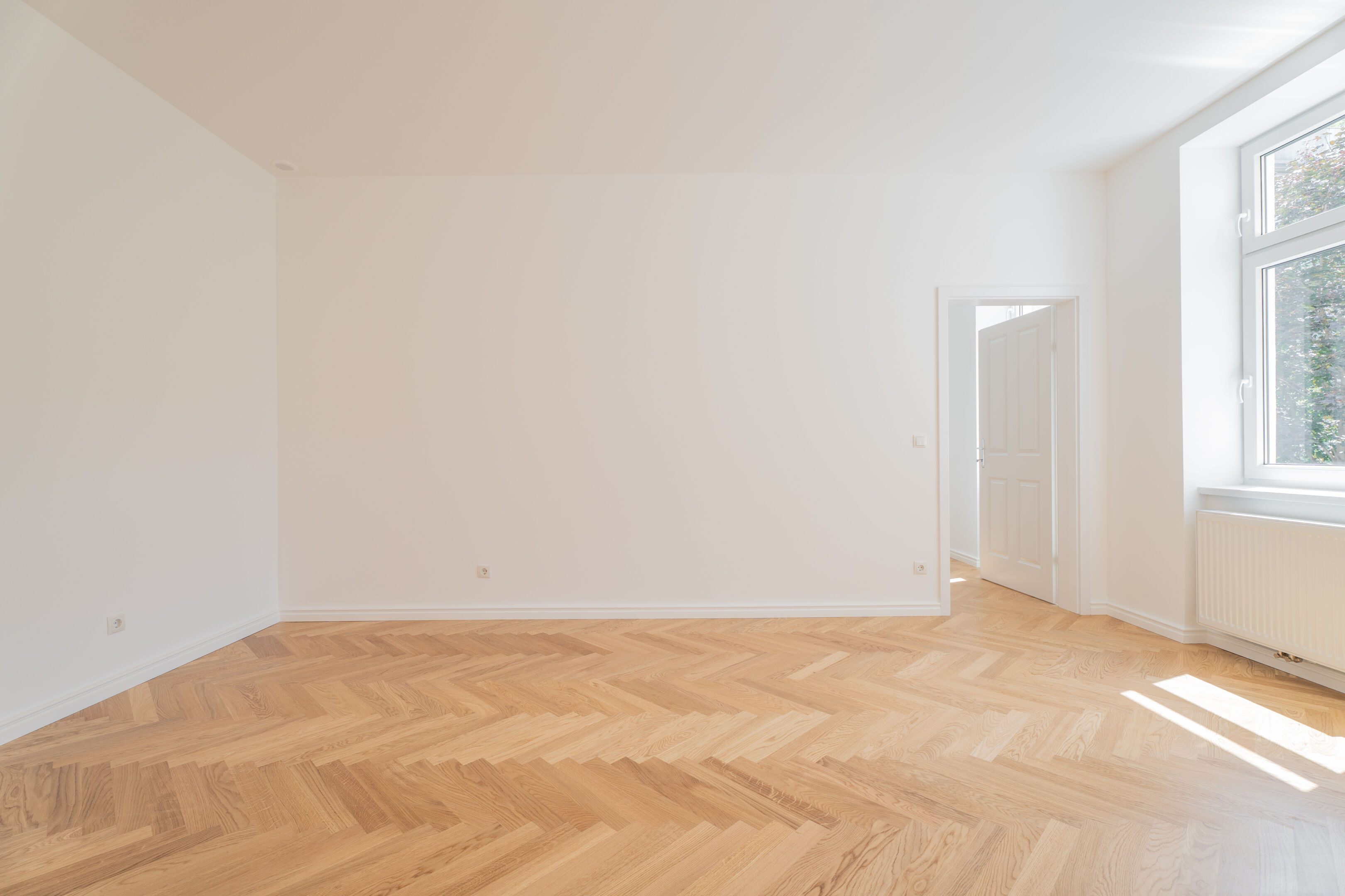 - Edle Eichenparkettböden in zeitlosem Fischgrät verlegt