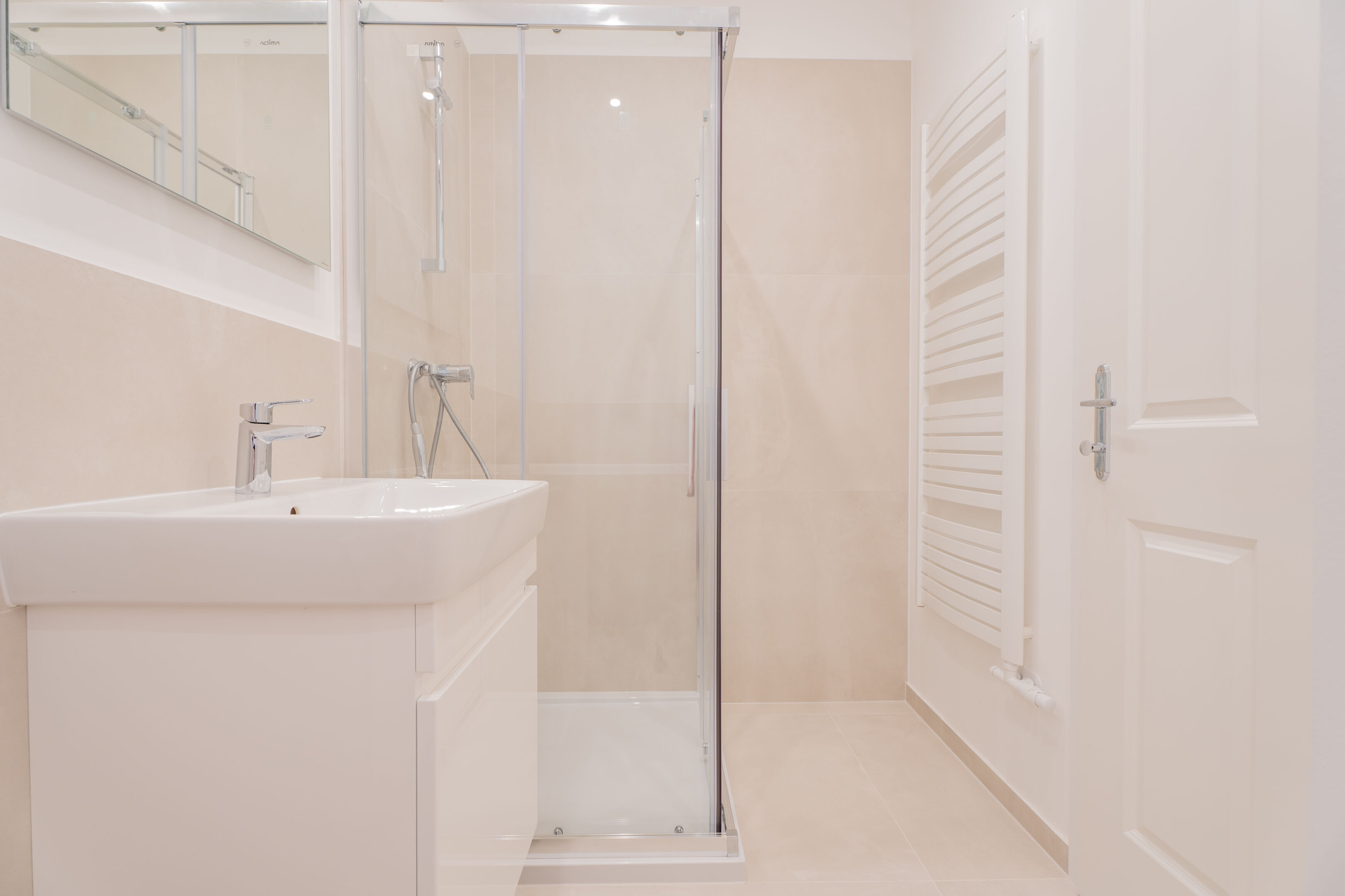 - Fein abgestimmte Materialwahl bei Fliesen, Armaturen und Beleuchtung