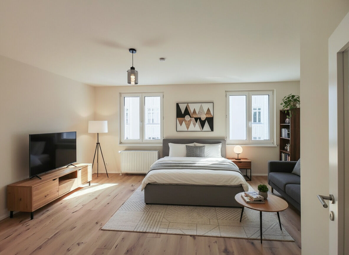 geräumig geschnittene Neubau-Garçonnière mit knapp 32m² im 3.OG: