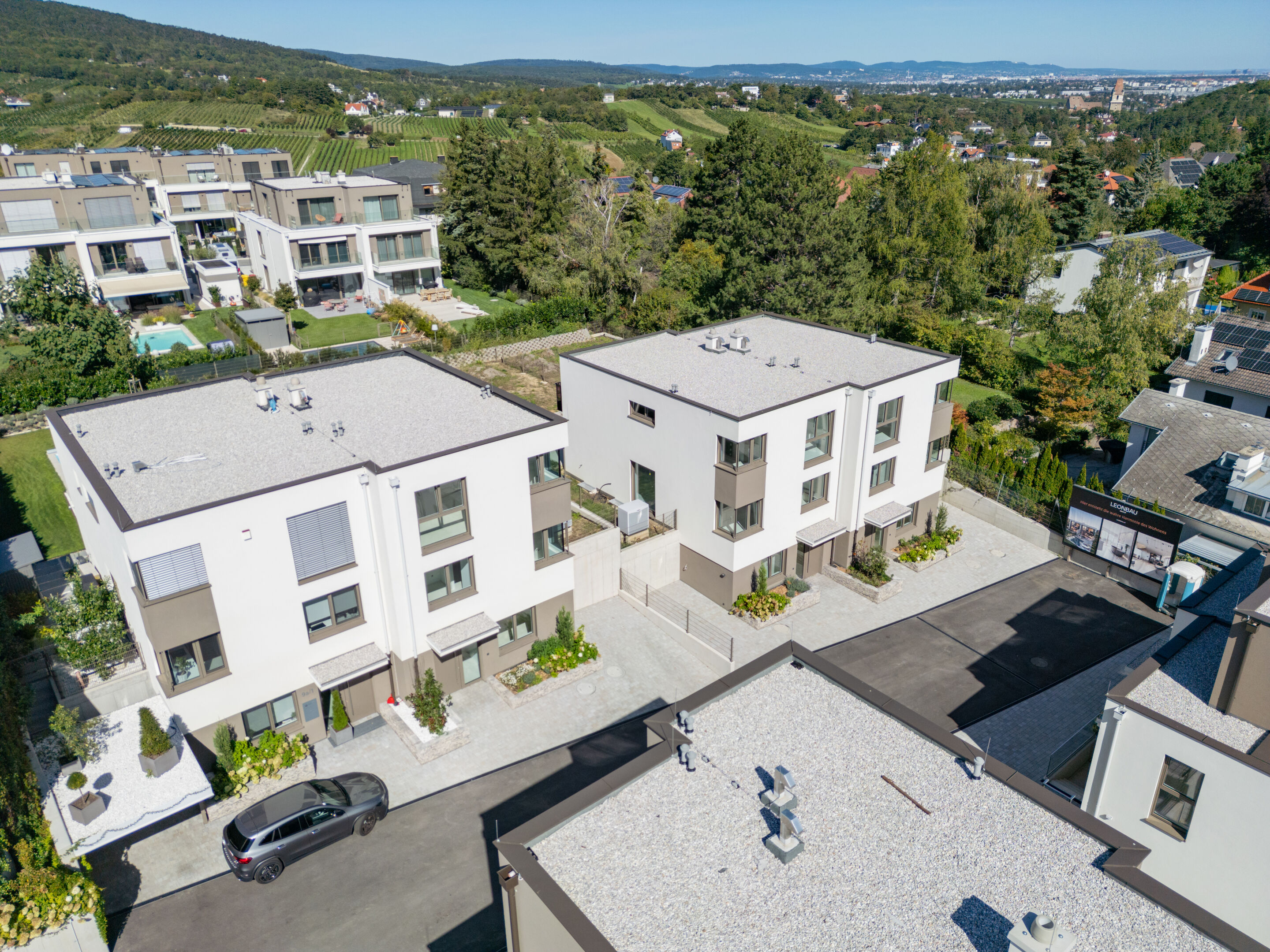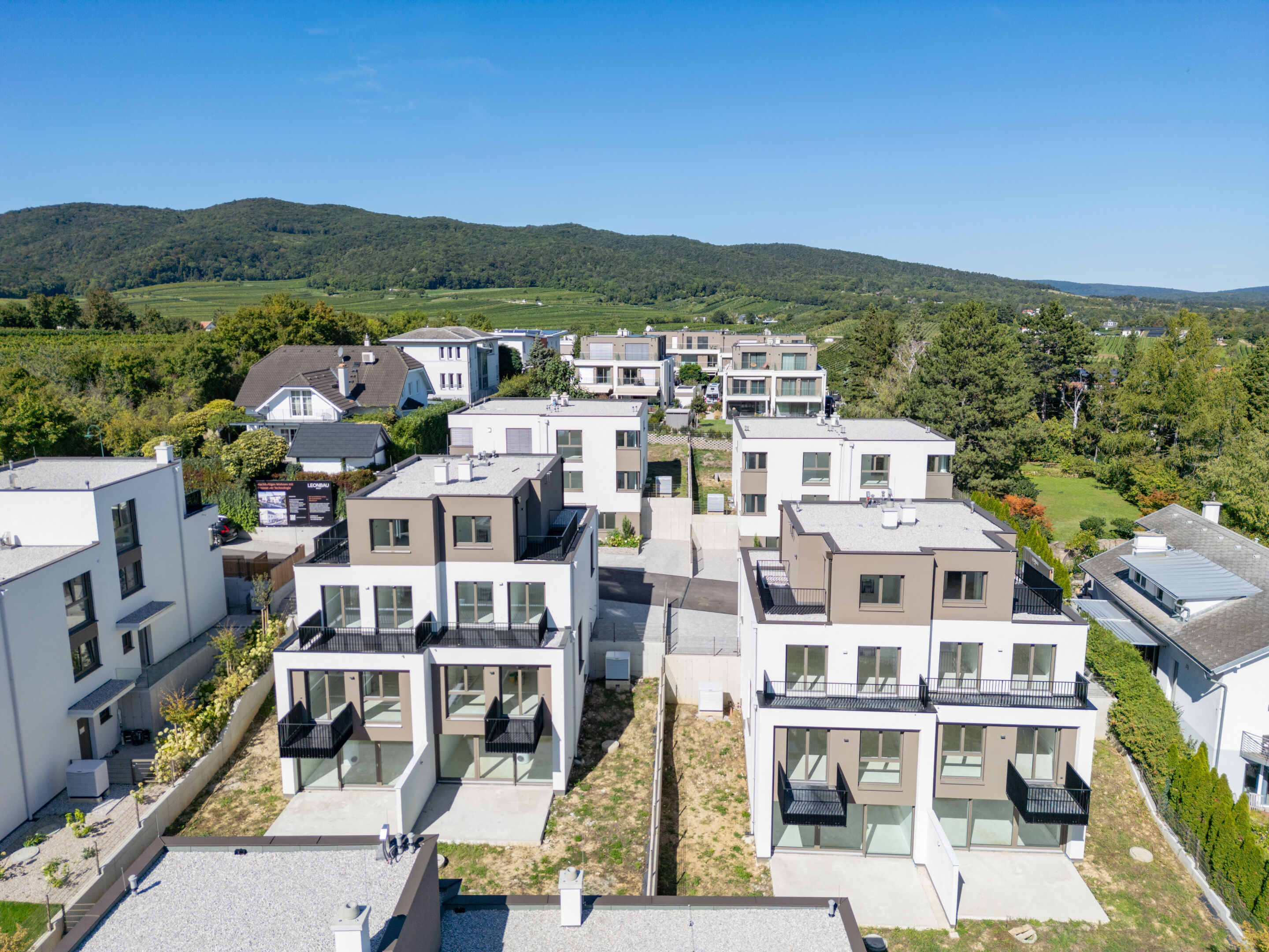 Jedes Doppelhaus verfügt über großzügige Privatbereiche im Freien: Ein Eigengarten mit Rollrasen und Terrasse lädt zum Entspannen ein, während die Dachterrassen mit ihrem spektakulären Panoramablick über den Wienerwald zum persönlichen Refugium werden. Die Option zur Installation eines eigenen Outdoor-Pools macht das Wohnerlebnis komplett. Perchtoldsdorf verbindet das Beste zweier Welten: Die Ruhe und Naturverbundenheit des Wienerwalds mit der urbanen Infrastruktur einer erstklassigen Wohnlage und ein atemberaubender Ausblick auf Wien, die umliegenden Weinberge und den Wienerwald. Kindergärten, Schulen – darunter die International Highschool Herzog – sowie Nahversorger und die historische Burg Perchtoldsdorf befinden sich in unmittelbarer Nähe. Die ausgezeichnete öffentliche Anbindung gewährleistet schnelle Erreichbarkeit der Wiener Innenstadt.