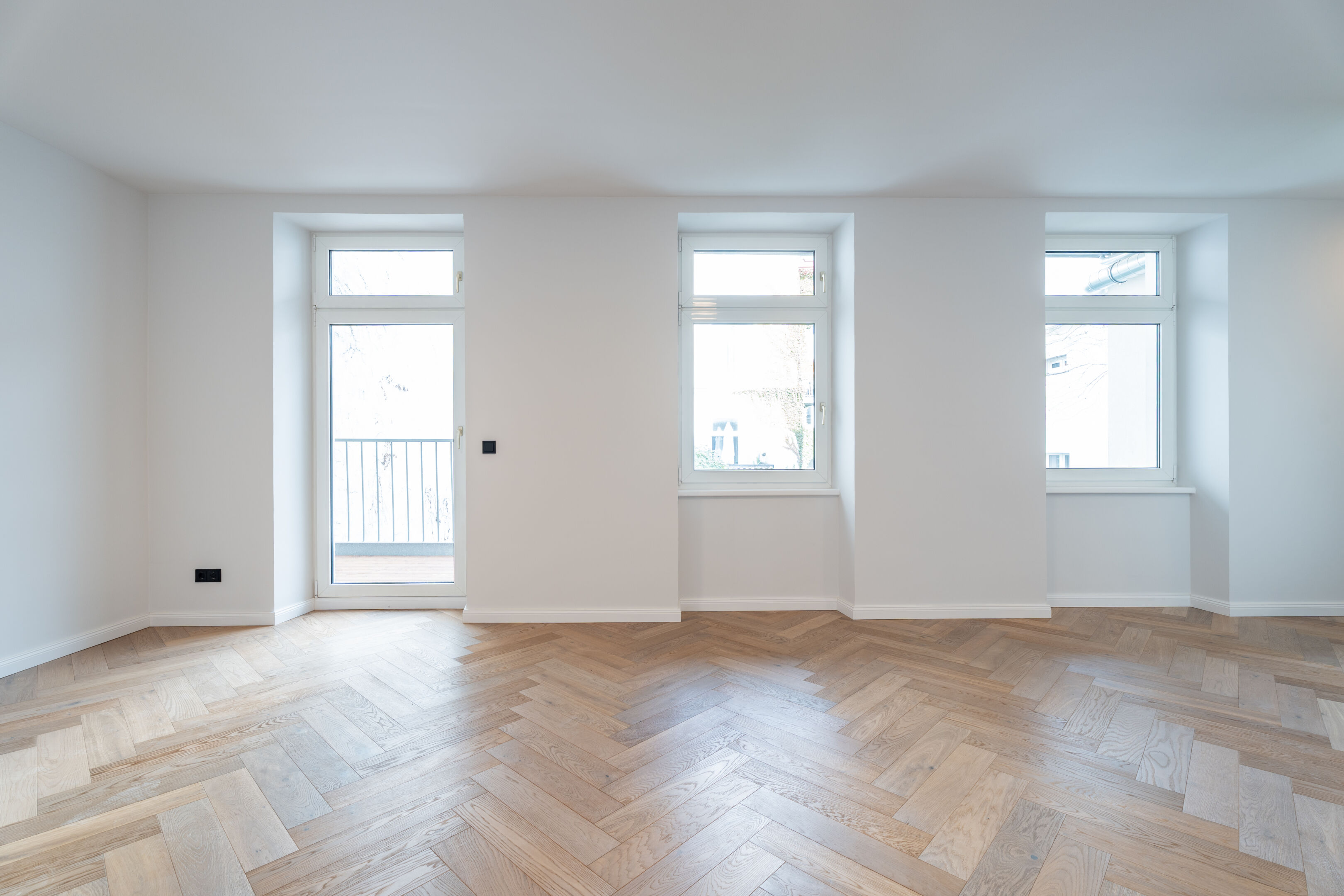 Die Wohnung ist sowohl hof- als auch straßenseitig ausgerichtet und vereint klassische Altbauatmosphäre mit modernem Wohnkomfort.