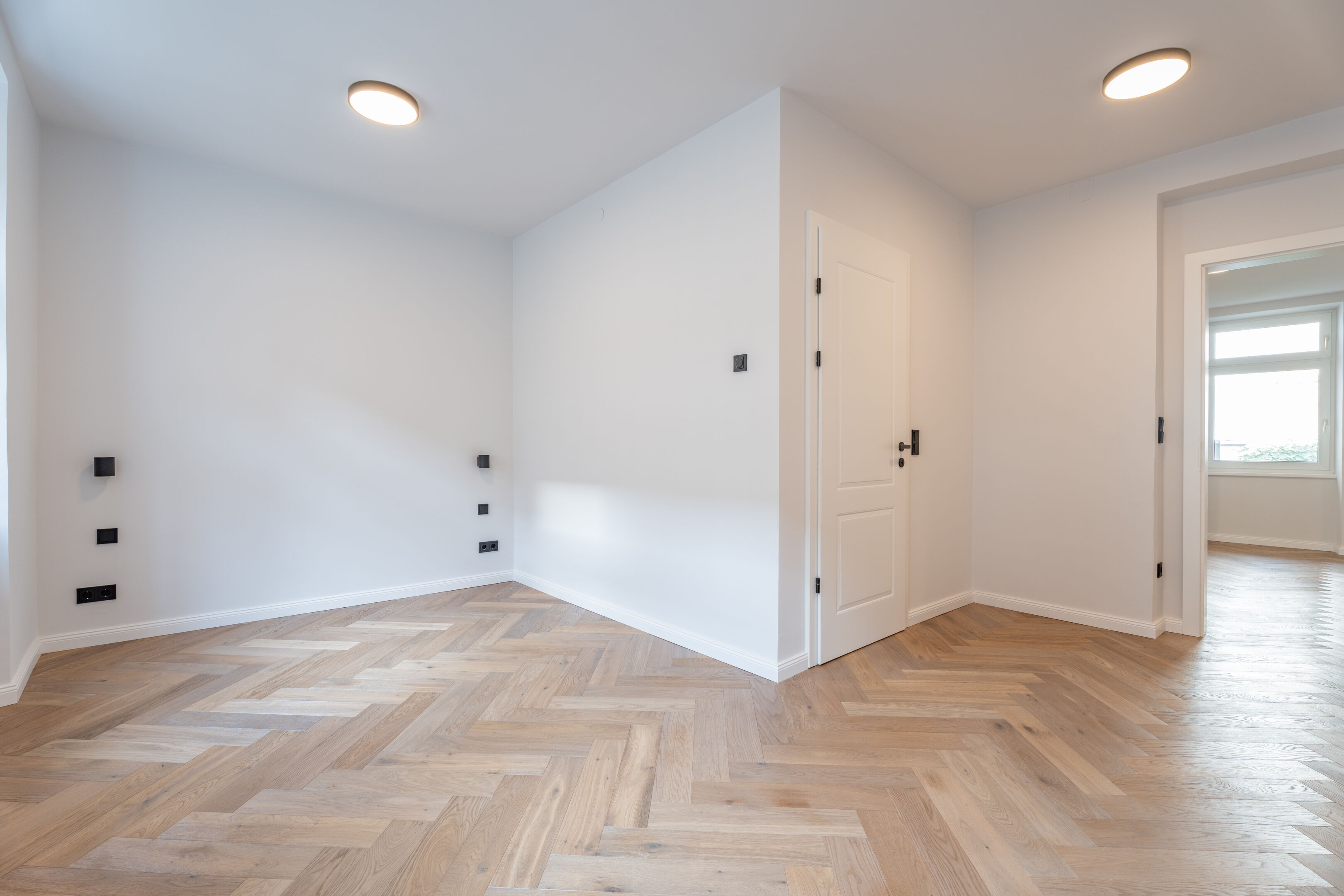 - Hochwertiger Eichenparkettboden im Fischgrätmuster (gebürstet)