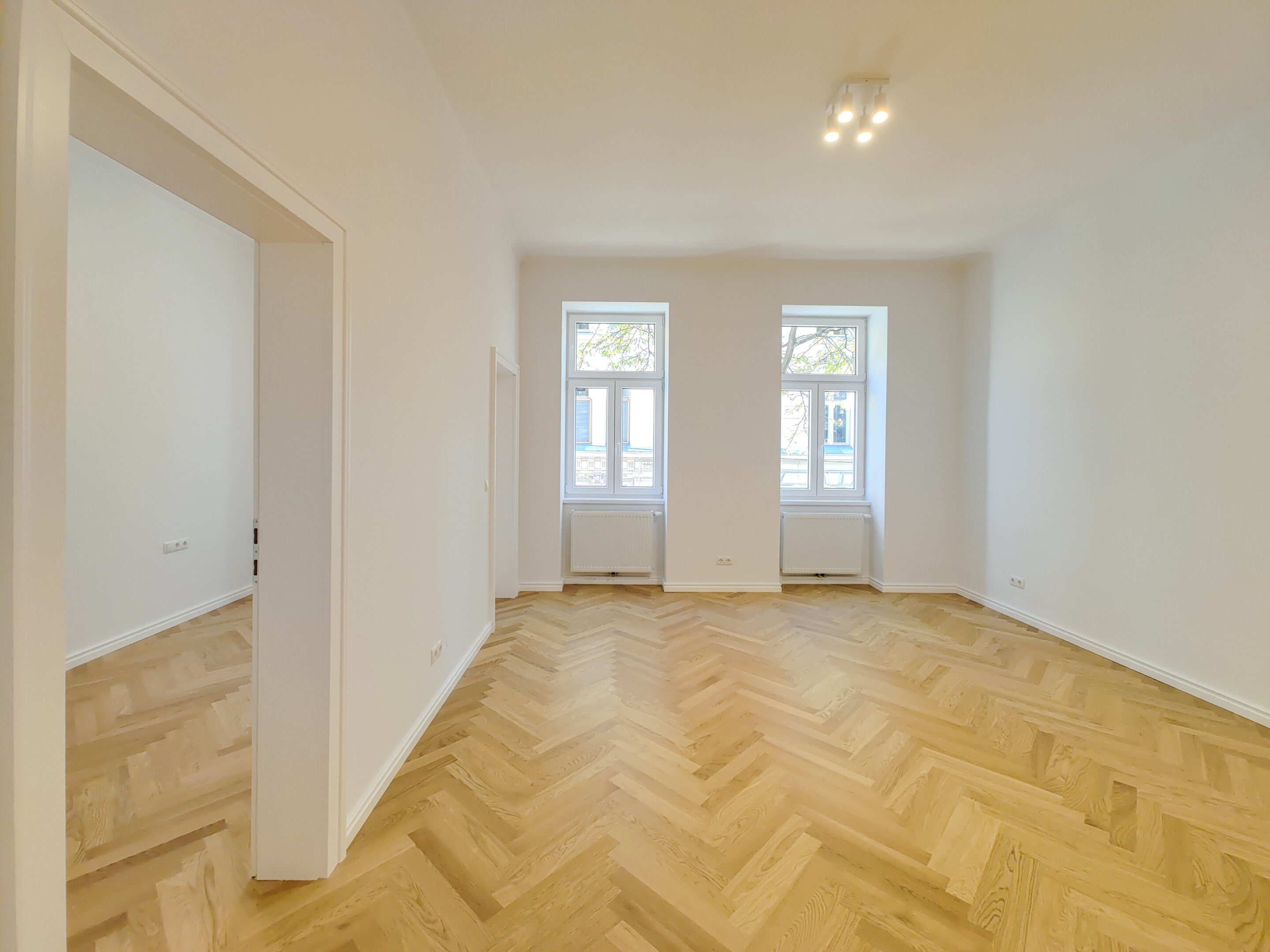 Zum Verkauf gelangt eine stilvoll sanierte 2-Zimmer-Altbauwohnung mit einer Wohnfläche von ca. 55m² im 1.Obergeschoss.