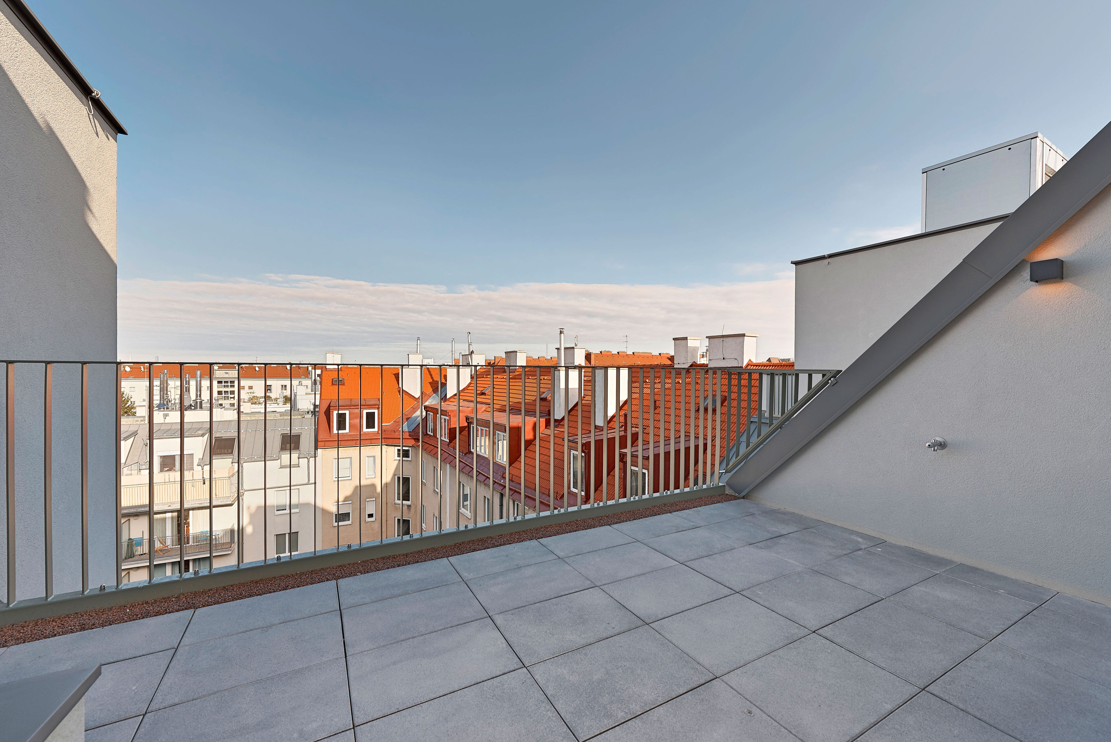 Fast alle 78 Eigentumsobjekte verfügen über attraktive Freiflächen wie Balkone, Loggia, Terrassen oder Eigengärten. Über den Wohnungen im Erdgeschoss mit schönen Eigengärten entstehen auf 5 Obergeschoßen klug angelegte Wohneinheiten mit je 2 bis 3 Zimmern und Größen von ca. 40 bis 68 qm. Die Wohnungen bieten entweder einen straßenseitigen- oder hofseitigen Blick und einen Freibereich in Form von Balkon, Loggia oder Terrasse. Den krönenden Abschluss bilden attraktive Dachgeschosswohnungen, verteilt auf 2 Dachgeschossebenen, mit Terrassen bzw. auch privaten Dachterrassen und einem schönen Ausblick.