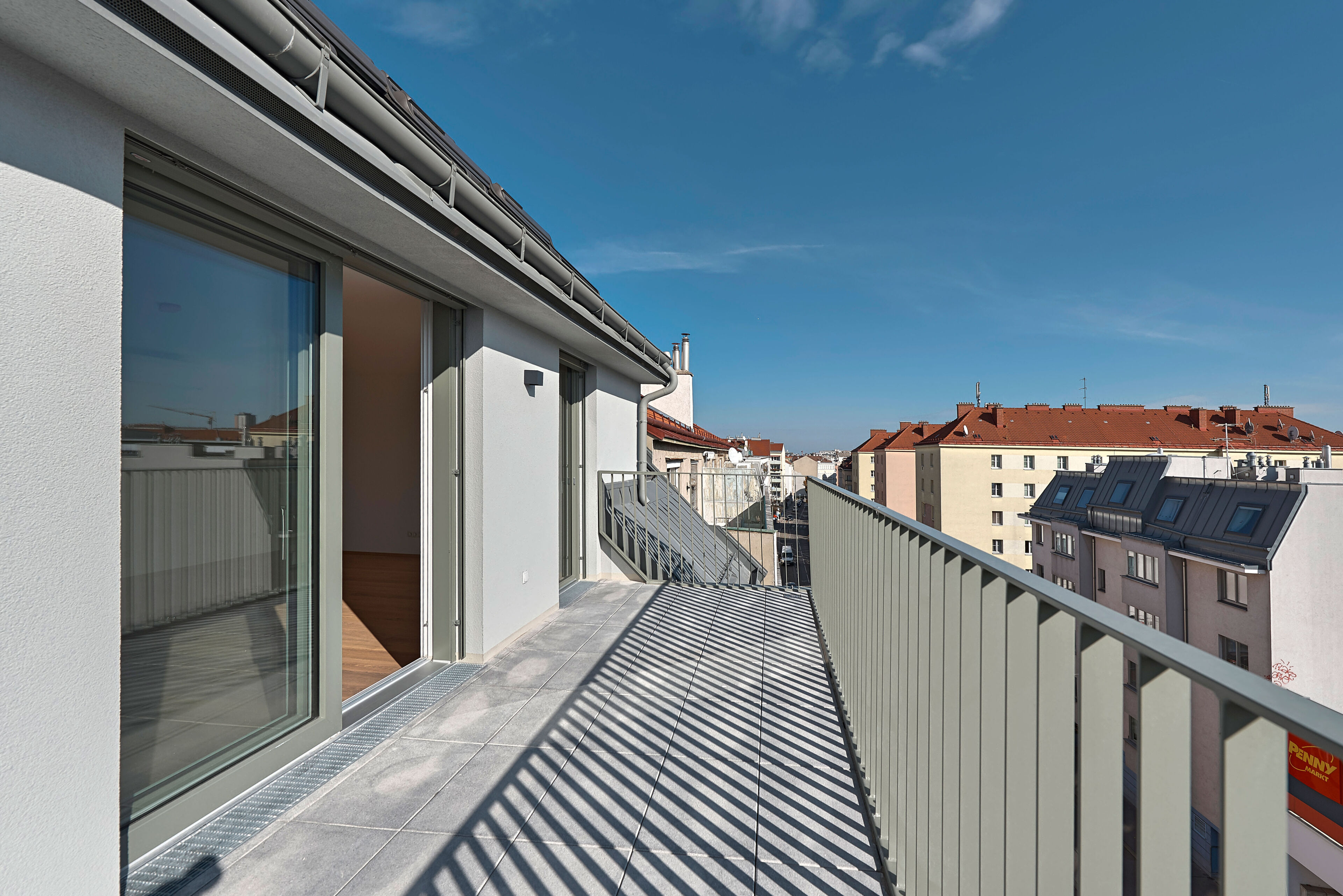 Fast alle 78 Eigentumsobjekte verfügen über attraktive Freiflächen wie Balkone, Loggia, Terrassen oder Eigengärten. Über den Wohnungen im Erdgeschoss mit schönen Eigengärten entstehen auf 5 Obergeschoßen klug angelegte Wohneinheiten mit je 2 bis 3 Zimmern und Größen von ca. 40 bis 68 qm. Die Wohnungen bieten entweder einen straßenseitigen- oder hofseitigen Blick und einen Freibereich in Form von Balkon, Loggia oder Terrasse. Den krönenden Abschluss bilden attraktive Dachgeschosswohnungen, verteilt auf 2 Dachgeschossebenen, mit Terrassen bzw. auch privaten Dachterrassen und einem schönen Ausblick.