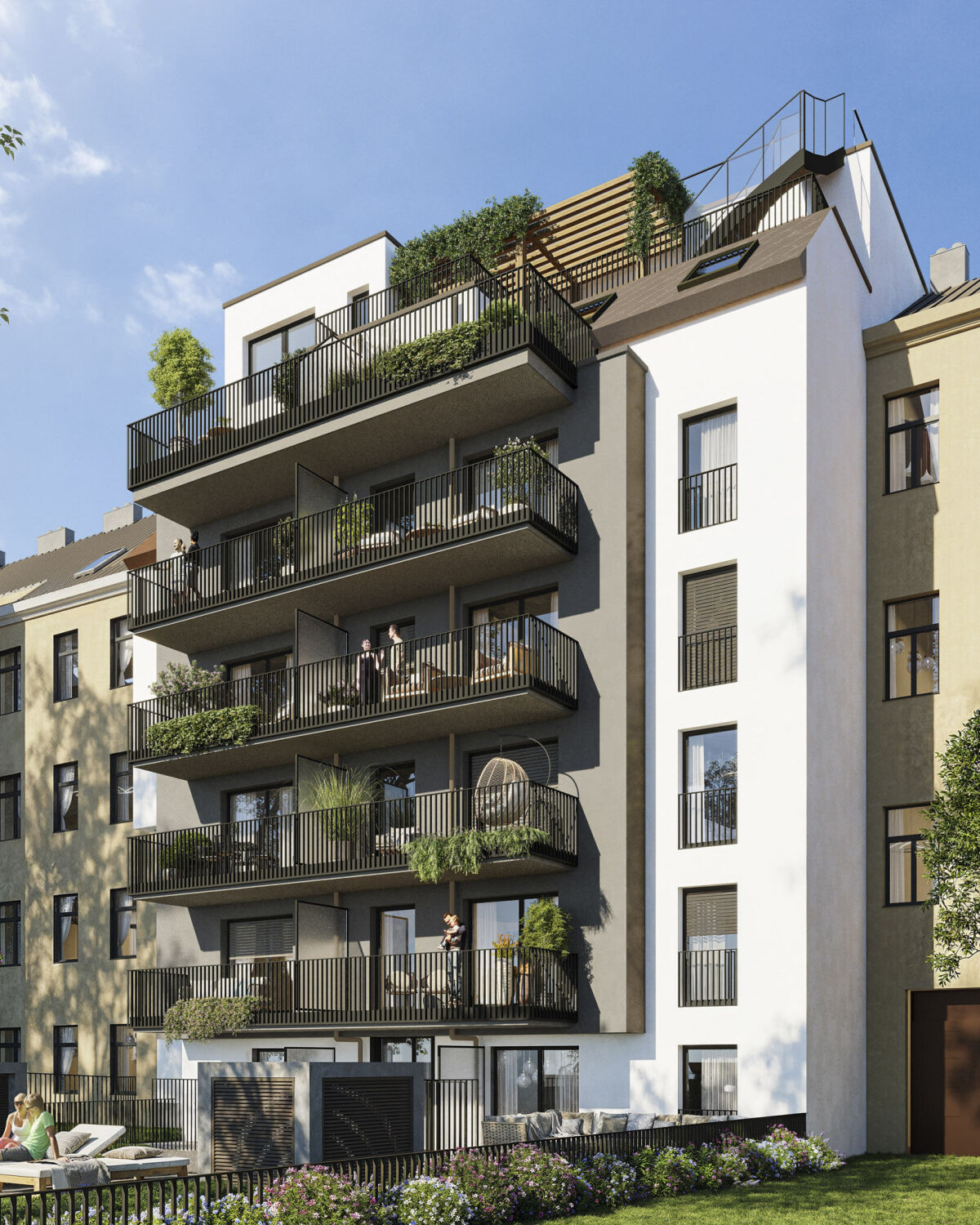 1170 WienWohnungen gesamt: 10Anfang 2021 erworben, erfolgte im Frühling desselben Jahres die umfassende Sanierung des Zinshauses in der Hernalser Hauptstraße 49/Bergsteiggasse 26A, 1170 Wien durch die 3SI Immogroup. Neben der Revitalisierung der Allgemeinbereiche wurde die vormals schmucklose rechte Außenfassade des Eckzinshauses mit handgefertigtem Stuck versehen. Nun gelangen die Eigentumswohnungen – darunter Dachgeschoßwohnungen mit attraktiven Freiflächen – in den Verkauf. -