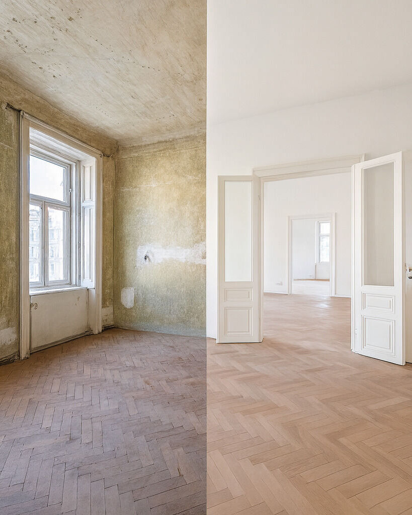 1160 WienDas charmante Eckzinshaus in der Herbststraße 32, 1160 Wien, wurde 2020 durch die 3SI Immogroup umfangreich revitalisiert. Neben der Sanierung der Außenfassade wurde auch das Innenleben des Stilaltbaus umfassend generalüberholt. Im Zuge der Stiegenhaussanierung wurden die Wände neu verputzt und – ebenso wie sämtliche Türen – gestrichen, Handlauf & Treppengeländer restauriert und neue Leuchten angebracht. -