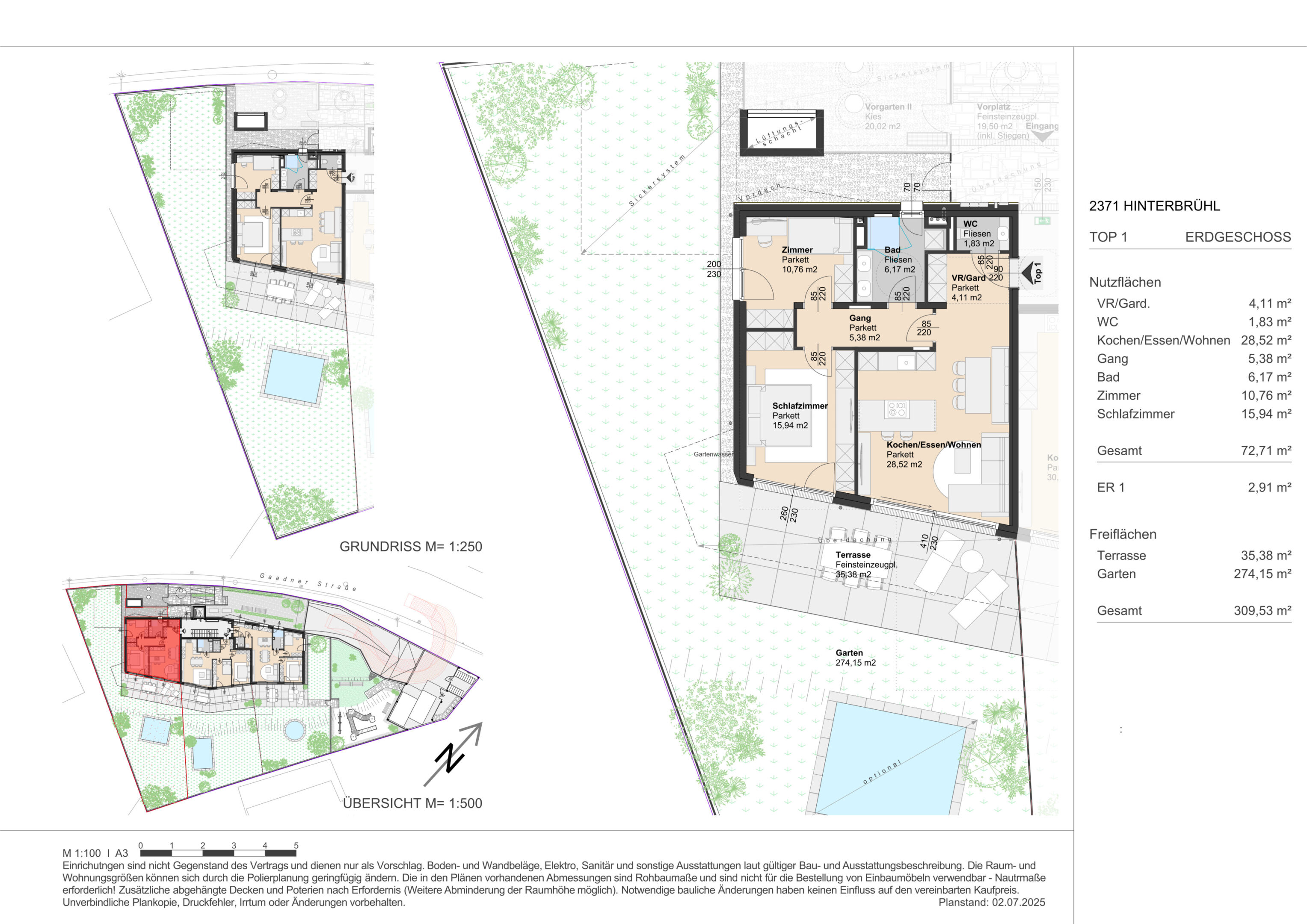 | 1 | Ground floor | 3 | 72.71 m² | 309.53 m² | 274.15 m² | 35.38 m² | € 732,440 | Available | |||