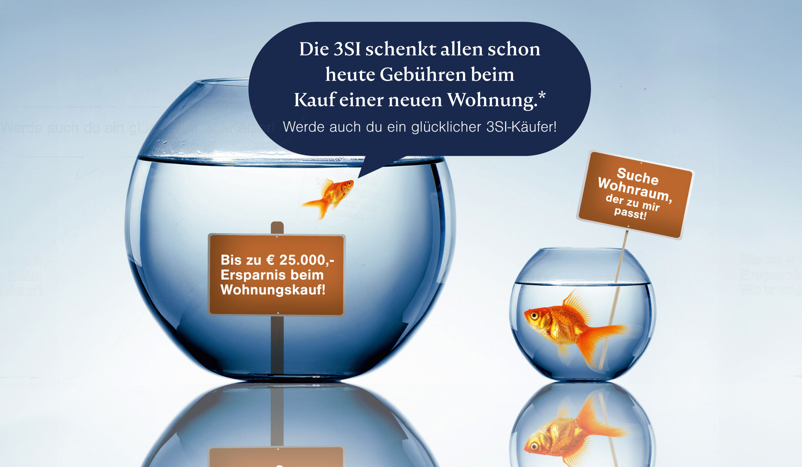 - Die 3SI Eigentums-Aktion gilt nur für gekennzeichnete Wohnungseigentumsobjekte der 3SI-Gesellschaften und ist bis zu einem Gesamtbetrag von € 25.000,00 pro Eigentumswohnung begrenzt.