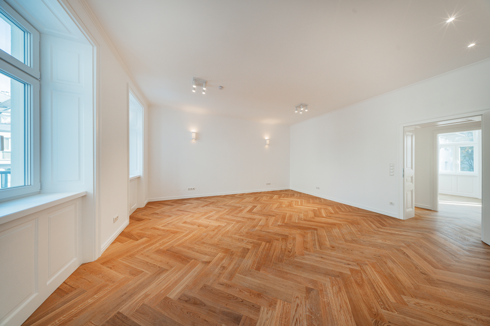 The flats impress with their generous room heights, well thought-out floor plans and original old building elements such as double doors, box-type windows and classic floor coverings. Some residential units also have small balconies that offer additional open space. Whether on the street side with a view of the historic Schüttelstraße or quietly situated on the courtyard side - each unit has its very own charm.
