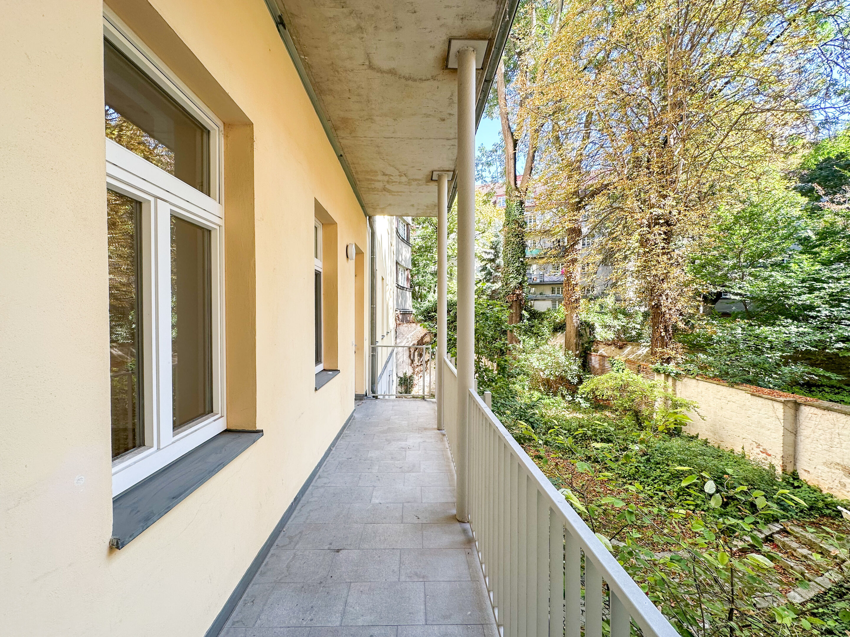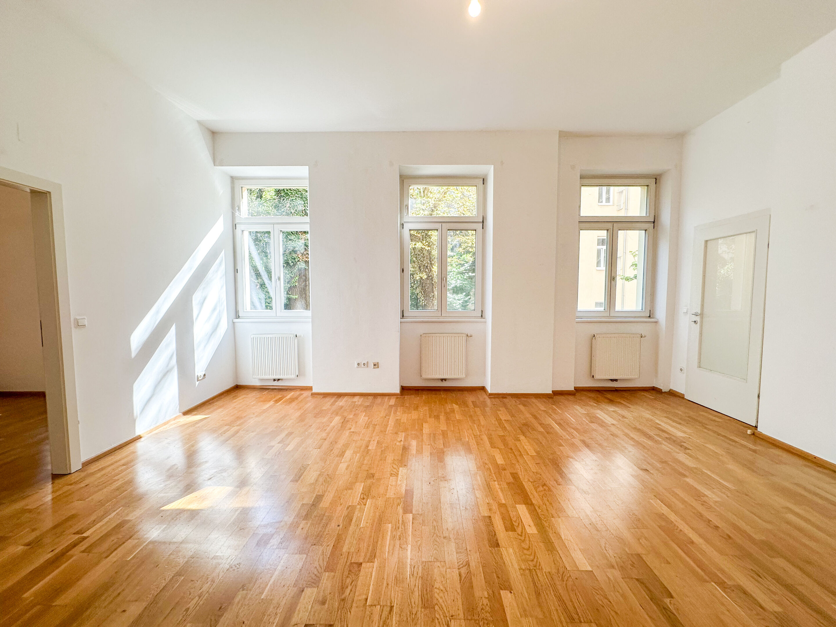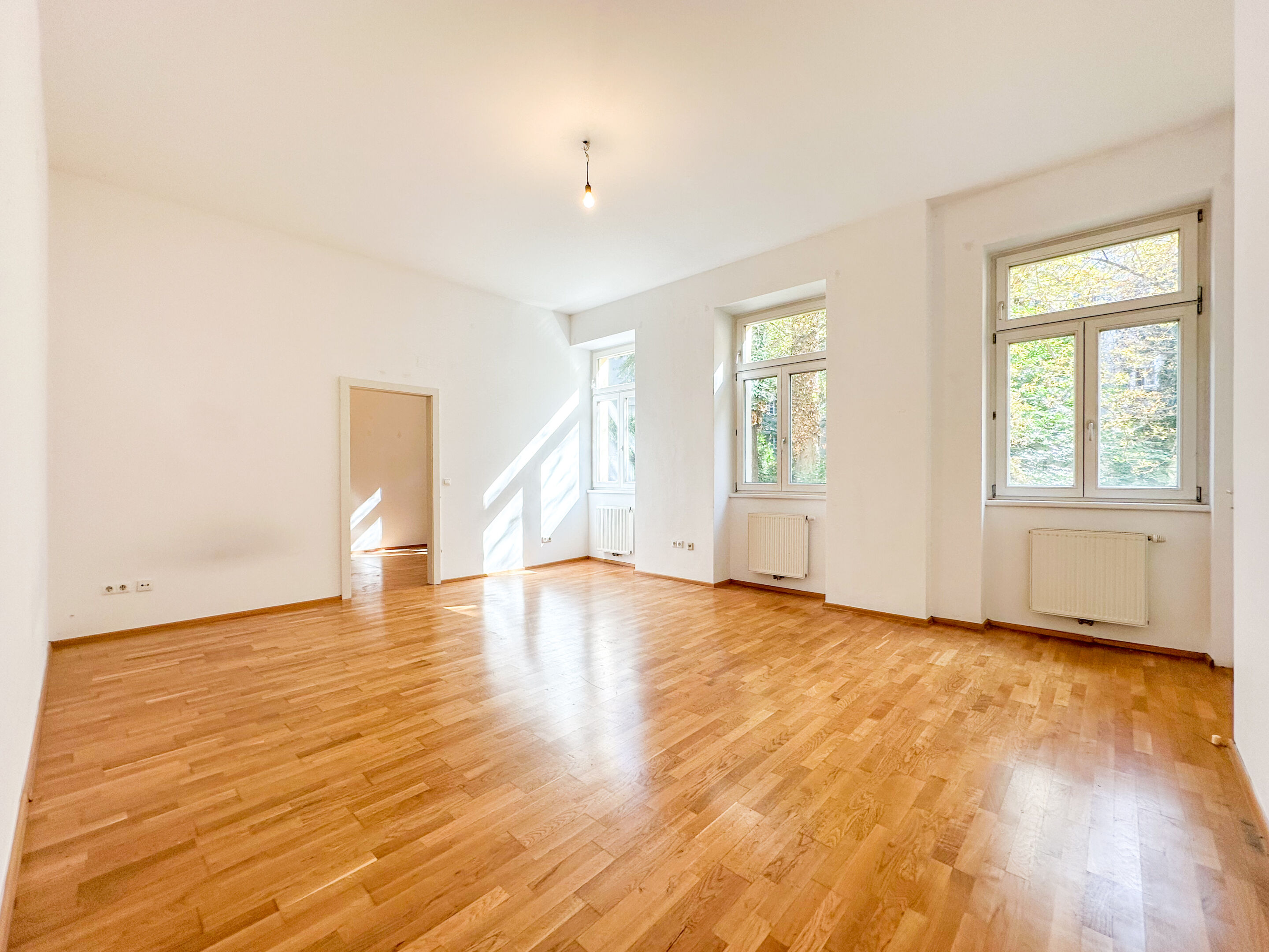 Ready-to-occupy, almost 82 m², 3-room flat in a well-maintained period property right next to the Kardinal-Nagl-Platz underground station. The apartment is south-facing towards the courtyard and is divided as follows: