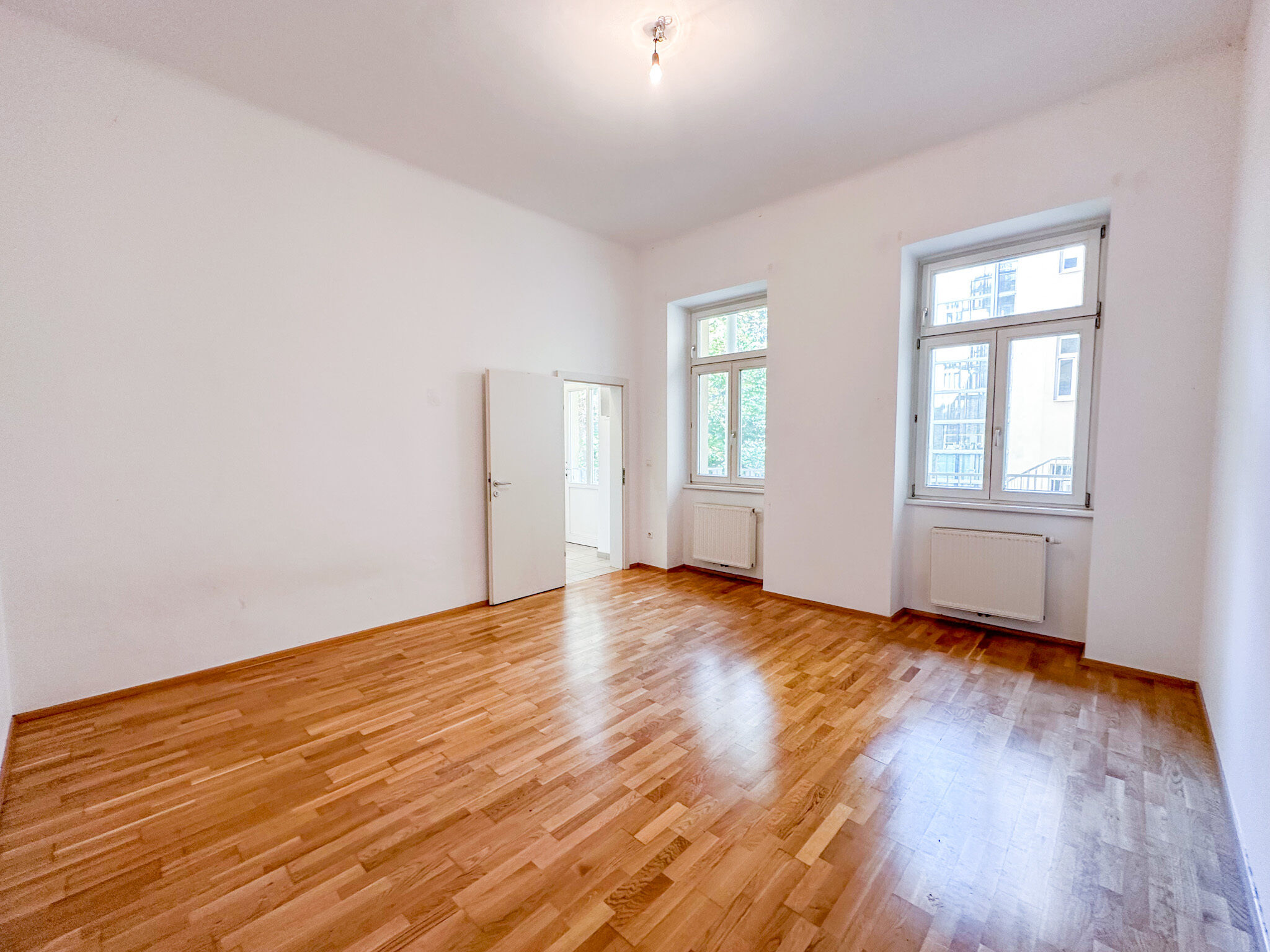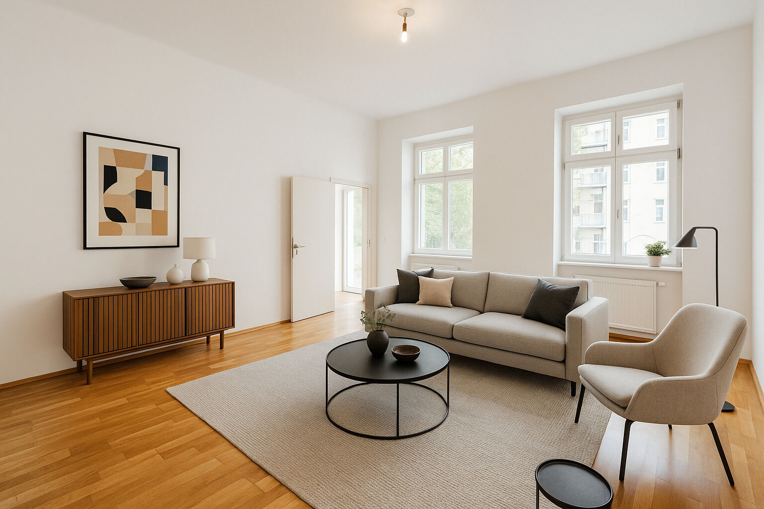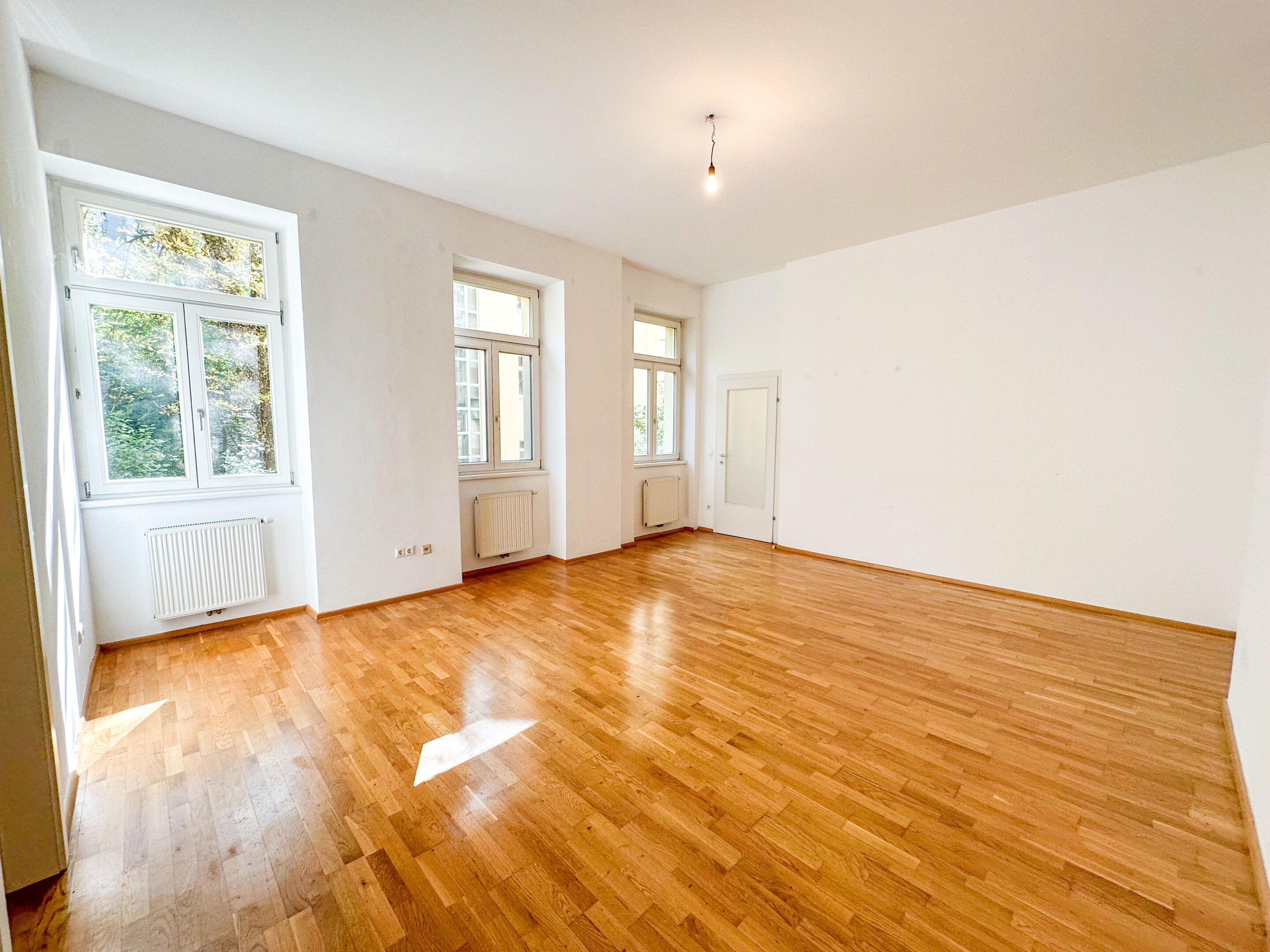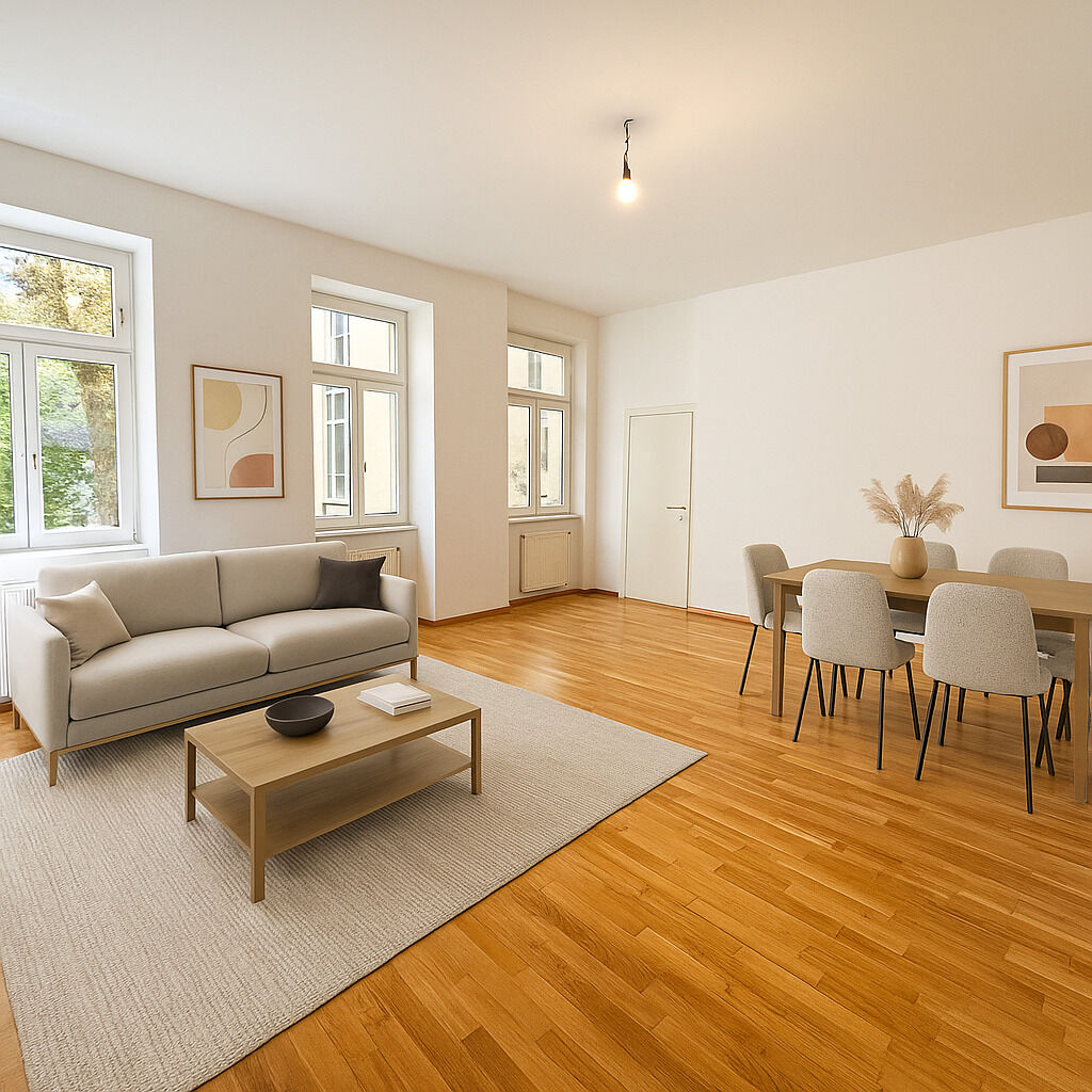 Ready-to-occupy, almost 82 m², 3-room flat in a well-maintained period property right next to the Kardinal-Nagl-Platz underground station. The apartment is south-facing towards the courtyard and is divided as follows: