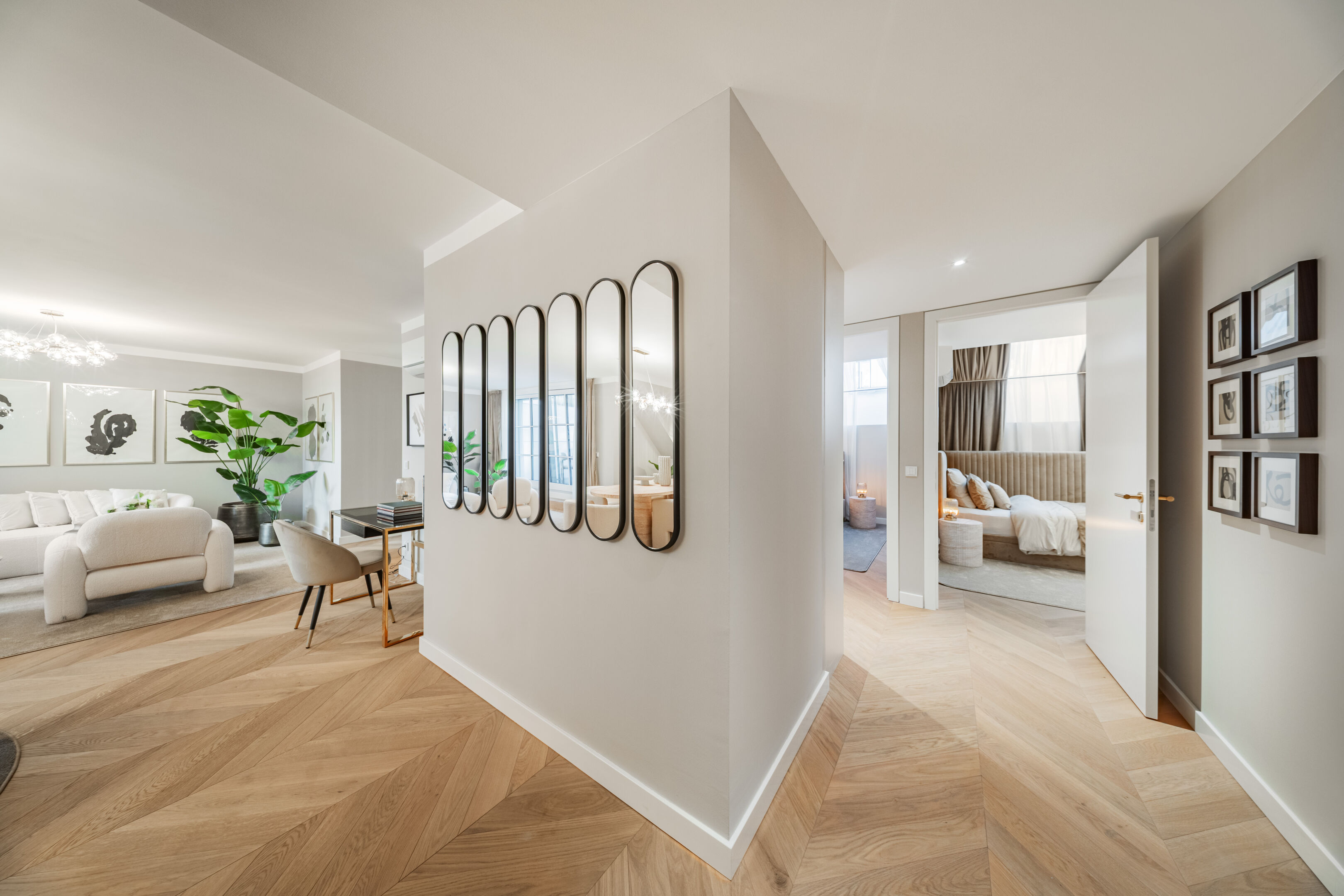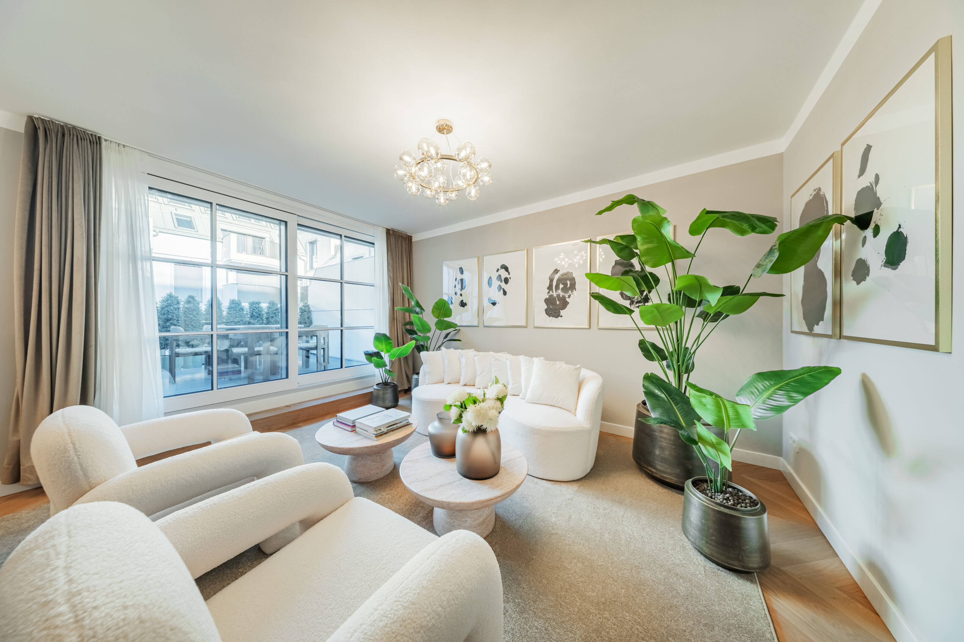 A total of 46 exclusive freehold flats and 2 street-side commercial properties with vaulted ceilings ranging from 50 to 170 square metres are being built. The units are planned as 2- to 4-room flats, and can be combined if desired. The room heights are between 2.52 m and 3.35 m. THE FUSION surprises with a green inner courtyard that opens out into the depths of this urban environment. Almost all the properties have open spaces such as balconies, terraces, roof terraces and garden terraces. The two top floor levels and the last standard floor are air-conditioned. All residential units have luxurious and well thought-out fixtures and fittings.