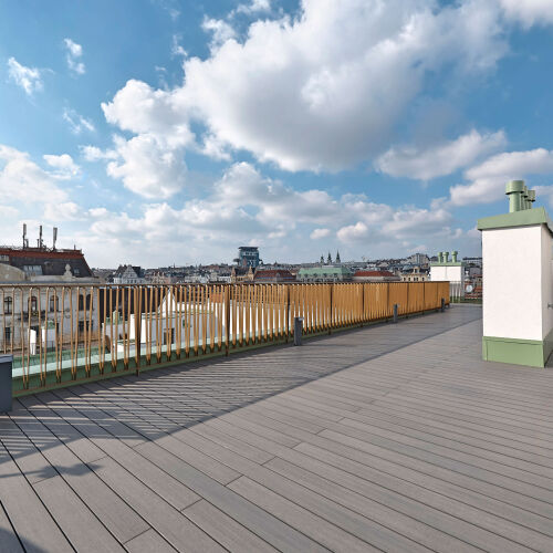 This unique penthouse with privacy is located on one level and has approx. 171 square metres of living space and 3 terraces totalling approx. 178 square metres - two of them on the living level and a magnificent roof terrace with a view over the Naschmarkt.
