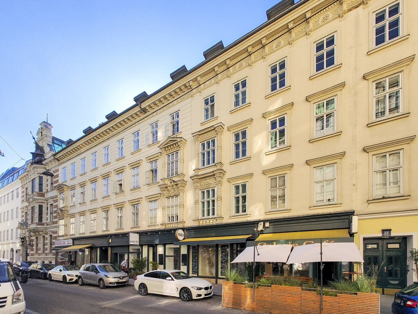 Vienna's 5th district of Margareten is one of the most sought-after residential areas in the city, especially in this location. The immediate proximity to the Naschmarkt and the Schlossquadrat guarantees a first-class infrastructure, a wide range of restaurants and cafés as well as numerous designer boutiques and trendy bars that invite you to stroll and linger. It is not without reason that this neighbourhood is one of Vienna's most popular addresses.